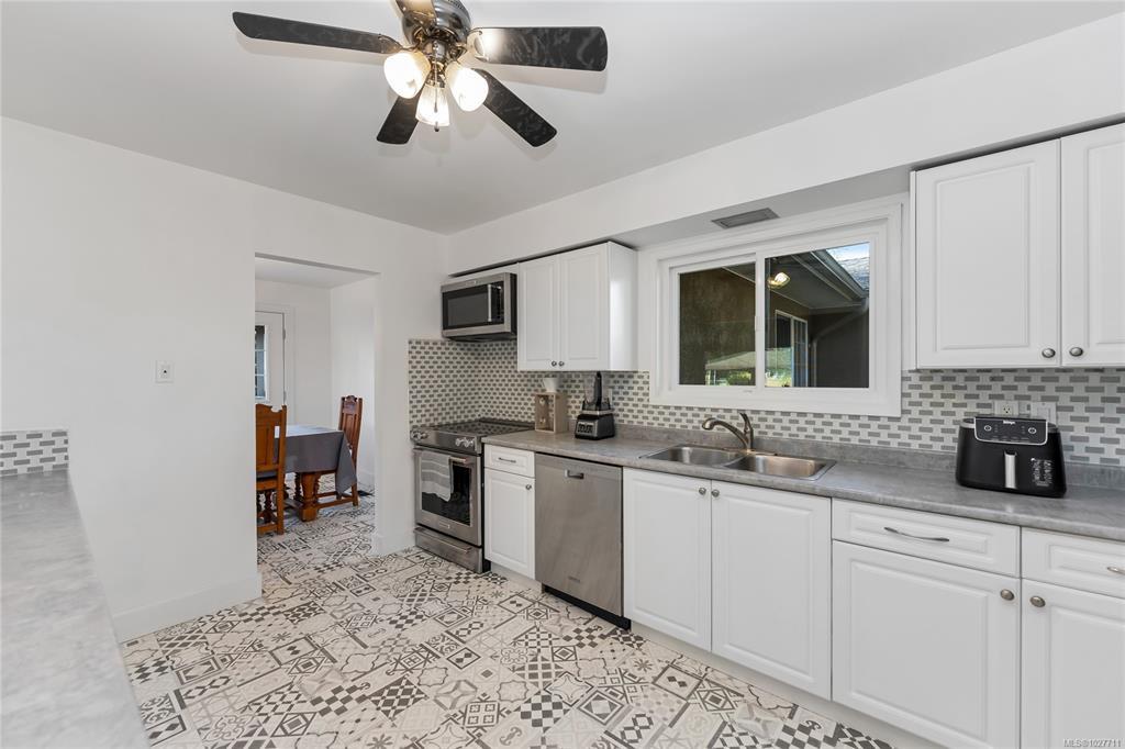 RARE: Affordable, well-situated half-duplex in a quiet, destination neighbourhood with a 2-bd, 1 ba rental suite below. Easy walk to schools, shopping, marinas, beaches and parks. Recently remodelled 1,150 SF 3-bd, 1 ba upstairs unit includes original oak hardwood floors, private laundry, and a generous kitchen with KitchenAid SS glass-top stove, microwave, DW, & Frigidaire fridge. Accommodating living room and dining area opens to expansive and private upper deck, perfect for outdoor entertaining. All upstairs unit bedrooms are bright, spacious and have hardwood floors. Outside, a private, fully fenced front yard includes garden beds, lawn, storage shed and a deck for lounging. Downstairs, a 972 SF 2-bed, 1 ba non-conforming suite with private entrance and laundry provides welcome rental income. An exceptional opportunity for a growing family or others seeking a peaceful lifestyle, warm home and mortgage helper, all amid beautiful Sidney's prime attractions.
