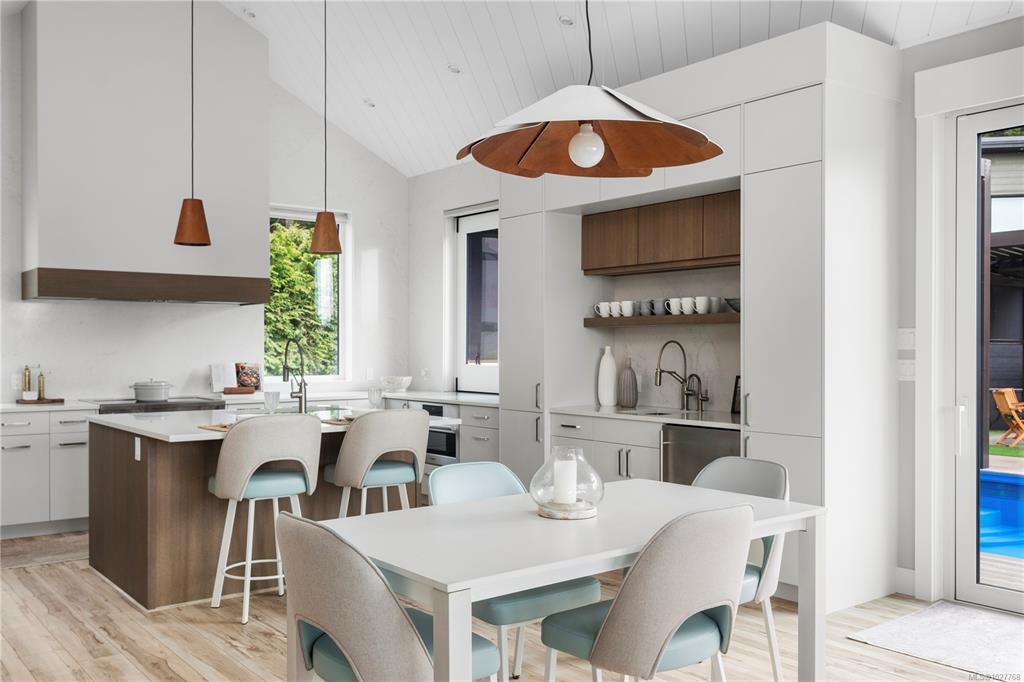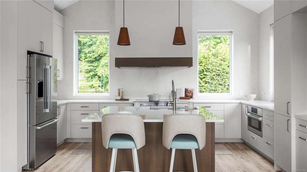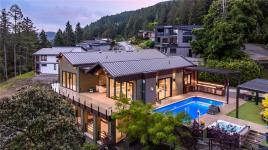 Rare find in Maple Bay! This double-lot gated estate offers a $3.95M main home (0.27 acre) and $1.95M carriage house (0.3 acre), ideal for multi-generational living. The award-winning 2024 main home features 4 bedrooms, a 2-vehicle garage, Scandinavian design, and ocean views. The 2-bedroom carriage house includes a 6-vehicle garage and deck space. Resort-style amenities: sports pool, pool house, outdoor kitchen, cabana, waterfall, and pickleball court. High-end finishes include lift-and-slide doors ($250K+), premium windows ($30K+), vaulted ceilings, 4 fireplaces, and smart automation. The gourmet kitchen boasts custom cabinetry, high-end appliances, and a bi-fold window to the outdoor kitchen. Perfect for boaters (Marina & floatplane nearby), car enthusiasts (VI Motorsport Circuit 20 min away), and professionals (new hospital 10 min away).