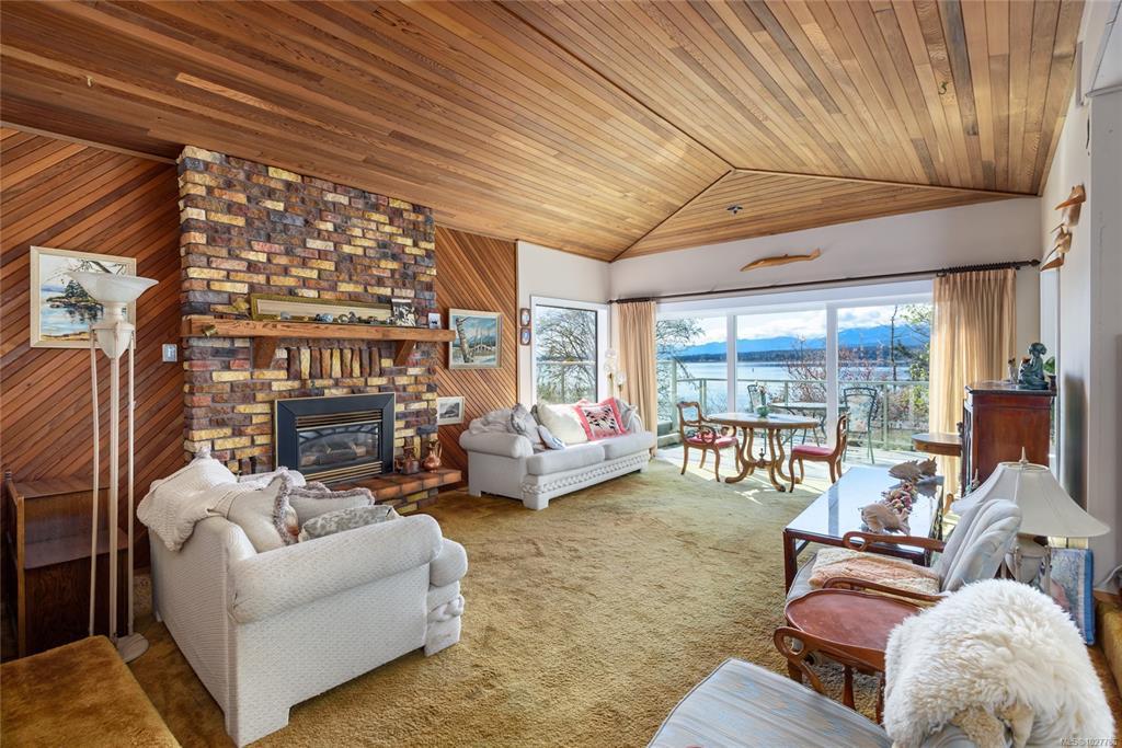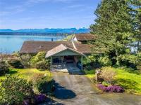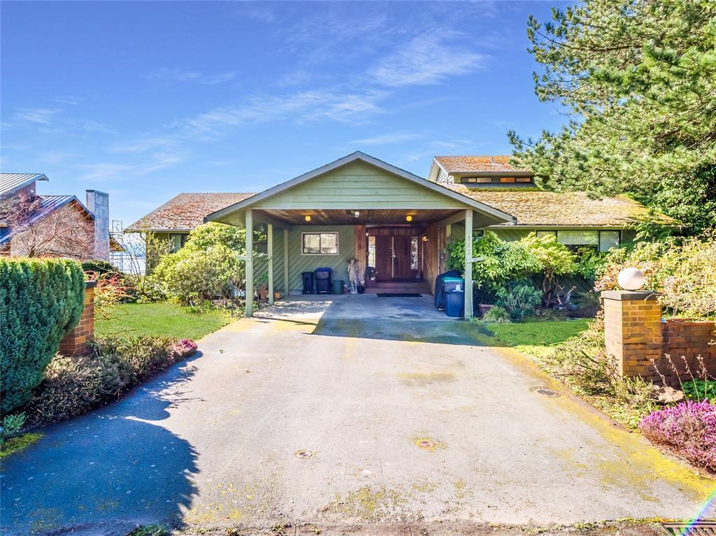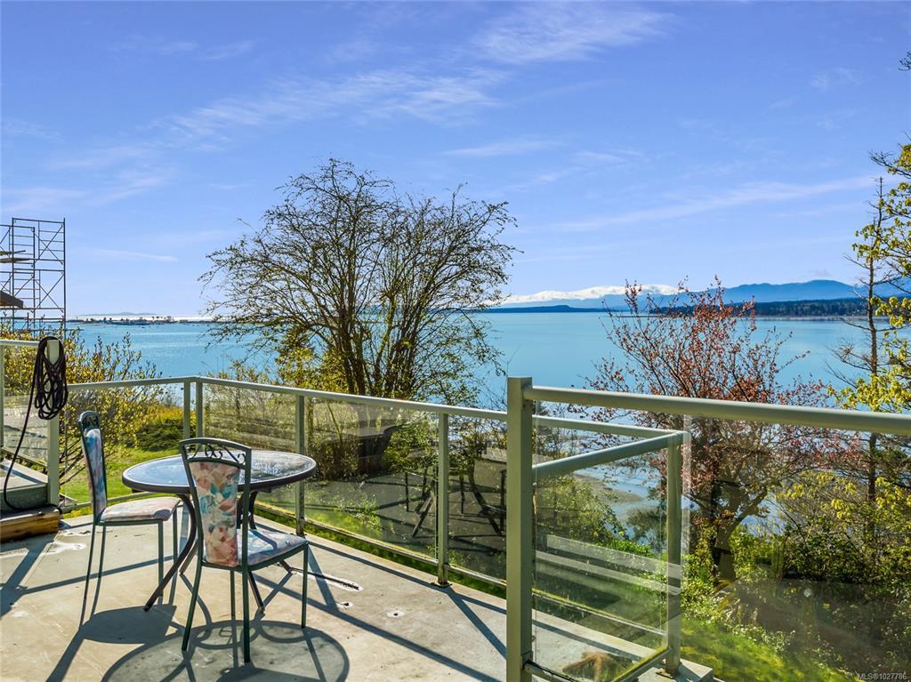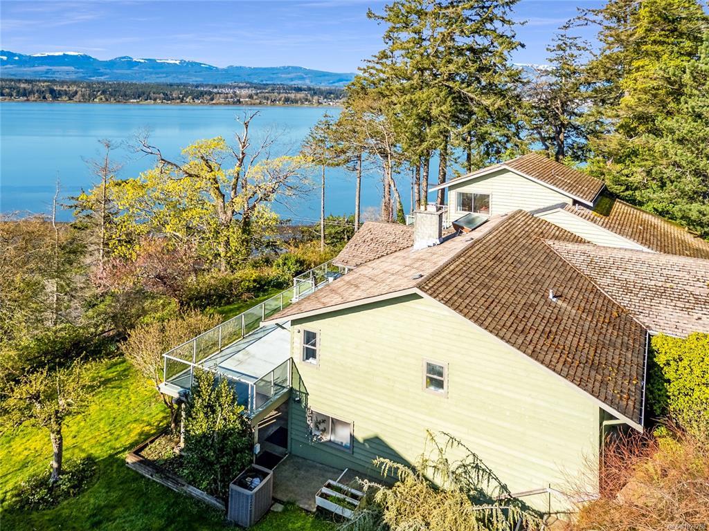 High-bank waterfront, 0.43 ac inside Town of Comox. Rare combo of sq ft, lot, waterfront & in-town location. 1-owner executive home (1979), end of cul-de-sac, no thru traffic, flanked by 2 waterfront properties. Elevated above Comox Bay w/ wide views of marina, Beaufort Mtns & Comox Glacier. Walk-on waterfront via trail, overgrown but intact & could be reopened. Uncommon for in-town high-bank. 4,777 sq ft, 3 levels. 5 bed/5 bath/2 kitchen. Main: 3 bed/3 bath. Upper: primary w/ ensuite & balcony over bay. Lower: 1-bed non-conforming suite w/ kitchen. Multi-gen ready. NG HWT on demand, forced-air w/ heat pump, HVAC. NG fireplace w/ Union Bay brick. South-facing. Double carport, paved drive. Interior original. Restoration opportunity to bring this home back to executive-caliber potential. Kitchens, baths, flooring & lighting ready for update. 2 decks w/ waterfront outlook. Garry oaks, private grounds. Size, land, waterfront & in-town position are the value drivers. Irreplaceable in Comox.