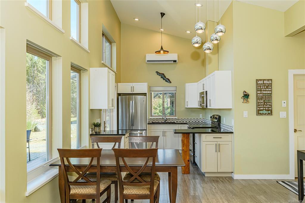 Welcome to Stin-Qua, a private, gated 16 lot community in Honeymoon Bay on Lake Cowichan. Built in 2015, this contemporary 2-3 bedroom light-filled rancher has an open-concept plan with a kitchen, dining area and a living room that open to a massive 45’ sun-filled deck looking into Lake Cowichan. Notable features include 14’ vaulted ceilings, crawlspace storage, a/c, quartz counters and a cozy woodstove that can heat the entire home. Hobby enthusiasts will appreciate the 34’ x 26’ detached garage with extra high ceilings and a loft. Set on a private, half acre low-maintenance lot surrounded by green space, a treehouse, an outdoor shower, and a fire pit, its ideal as a getaway from the city or a home to grow your roots. No Vacancy and Speculation tax here! Located steps to the lake, minutes to Honeymoon Bay and March Meadows Golf Course, 15 minutes to the town of Lake Cowichan, and an easy commute to Victoria or Nanaimo. Call Karl for an appointment to view.