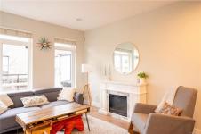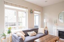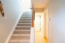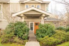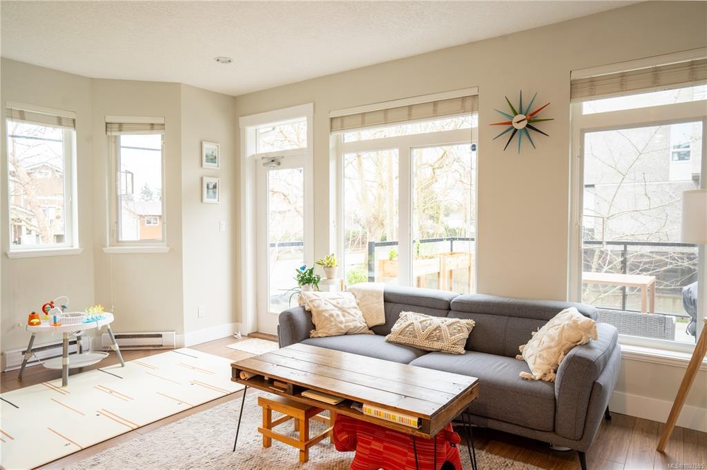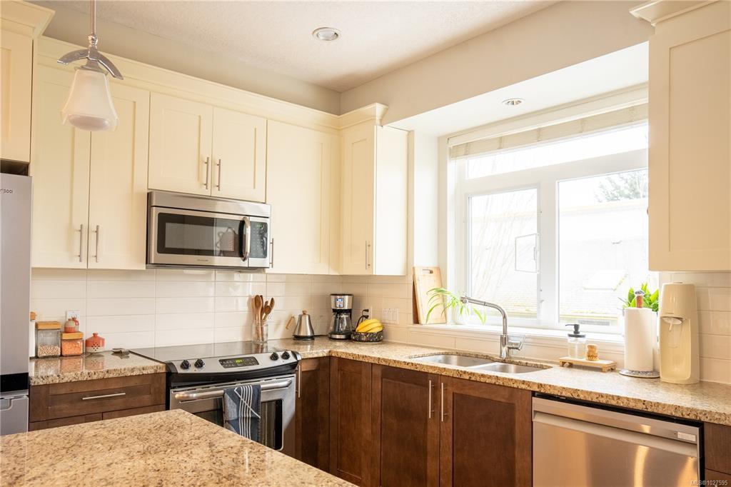 Lansdowne Walk is a boutique collection of 7 Arts & Crafts style townhomes set among mature landscaping & tree lined streets. This desirable end unit enjoys extra surrounding green space, a feature unique to this home. Impeccably maintained, the 3-bed, 3-bath home offers a bright open main floor with 9-ft ceilings, while a bay window & a full wall of extra height windows fill the home with natural light from top to bottom. The kitchen features granite countertops, stainless steel appliances & an eating bar, while the living area opens to a south facing sundeck. Private stairs link the sundeck to the patio below, creating inviting outdoor spaces for relaxing or entertaining. Upstairs, the primary & 2nd bedroom share a full bathroom. The entry level includes a 3rd bed rec room, 4-peice bathroom & access to a covered patio. Ideally located near shopping, schools, Camosun College, UVic, golf and on a bus route, this home offers comfort and convenience in a sought after neighbourhood.