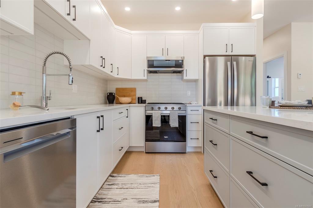 This stunning property is main-level living with lake views offering both luxury & convenience. Inside, you'll be impressed by the high-end finishings, including engineered hardwood floors, quartz countertops, & ceramic tile in the bathrooms & laundry. The open-concept design, 9 ft ceilings, & plenty of windows make this space feel bright & spacious. Attention to detail is evident throughout, with extensive sound insulation to ensure peace & quiet. Equipped with a heat pump, ensuring not only energy efficiency but also year-round comfort. The spacious backyard is ideal for entertaining guests while the private front courtyard is available for coffee when the sun is right. This location is unbeatable, close to popular hiking/biking trails on Mount Tzouhalem and Maple Bay Beach. You'll love the convenience of being close to all amenities while still feeling like you're in your own private oasis. Price plus GST.