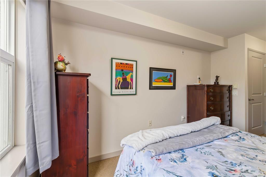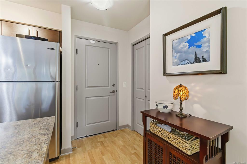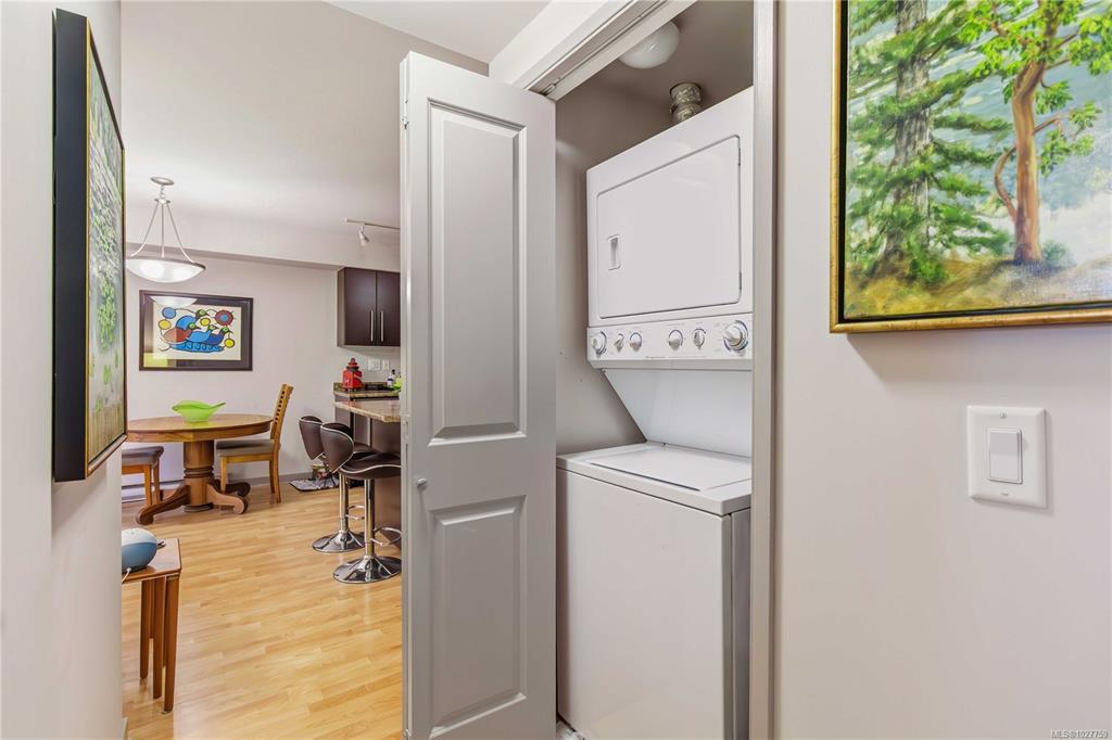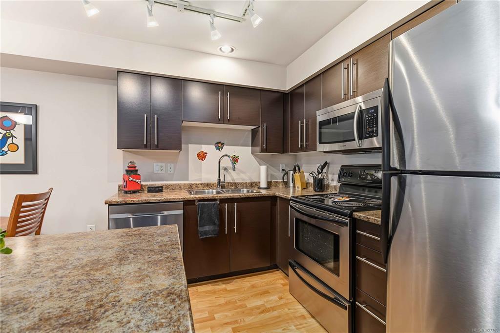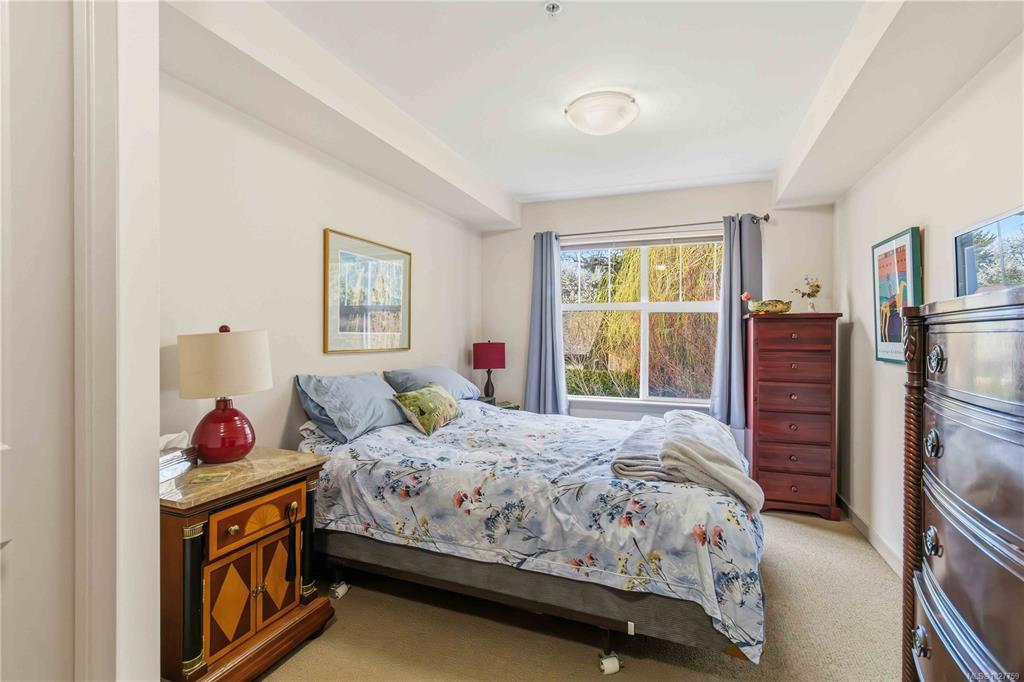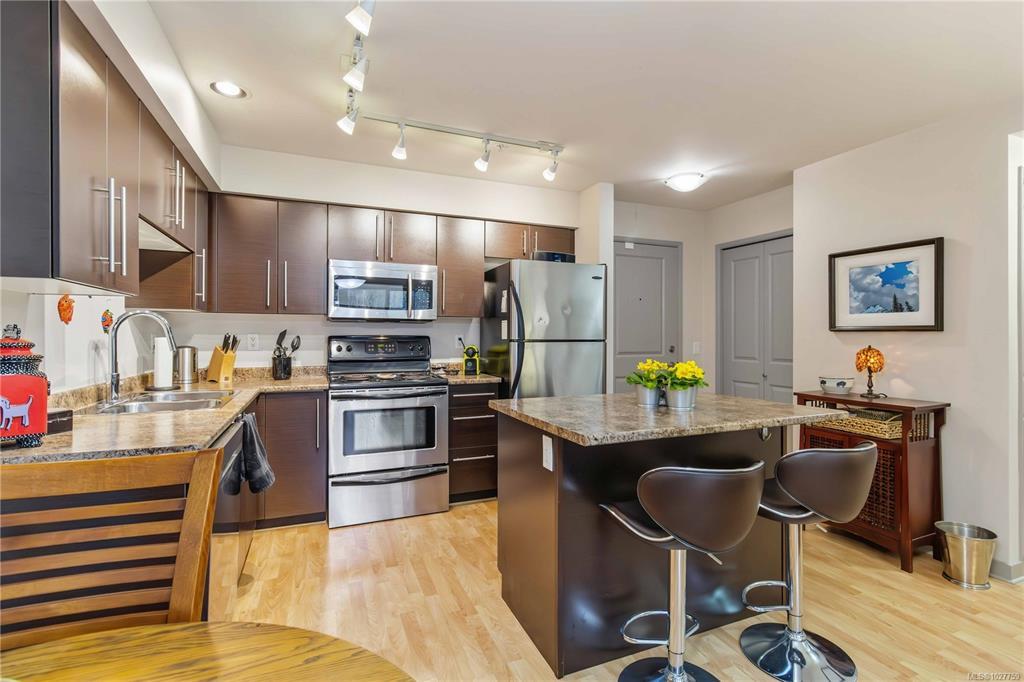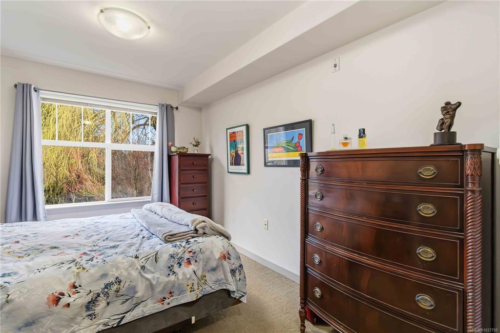 **NEWS FLASH** This building allows large-breed dogs! This bright, north-facing 2 bedroom, 2-bathroom unit offers a lovely treed outlook from the open living room- kitchen layout and across the balcony. The kitchen has ample cupboards and a central island for extra counter space. The living room allows you several furniture placement options, a lovely fireplace and a lot of wall space for your precious artwork. The primary bedroom offers large closet, 3-piece ensuite (with walk-in shower) and good closet space while the second bedroom is large enough for guests, office space or den. The Amara, built in 2007, is professionally managed with no rental restrictions, features modern comforts in an ultra-convenient location near transit, Camosun College, St. Michael’s University, UVIC, Cedar Hill Golf Course, and all major amenities. One secure underground parking, separate storage, no pet size restrictions and ensuite laundry up-level the value. Don’t wait—book your showing today!