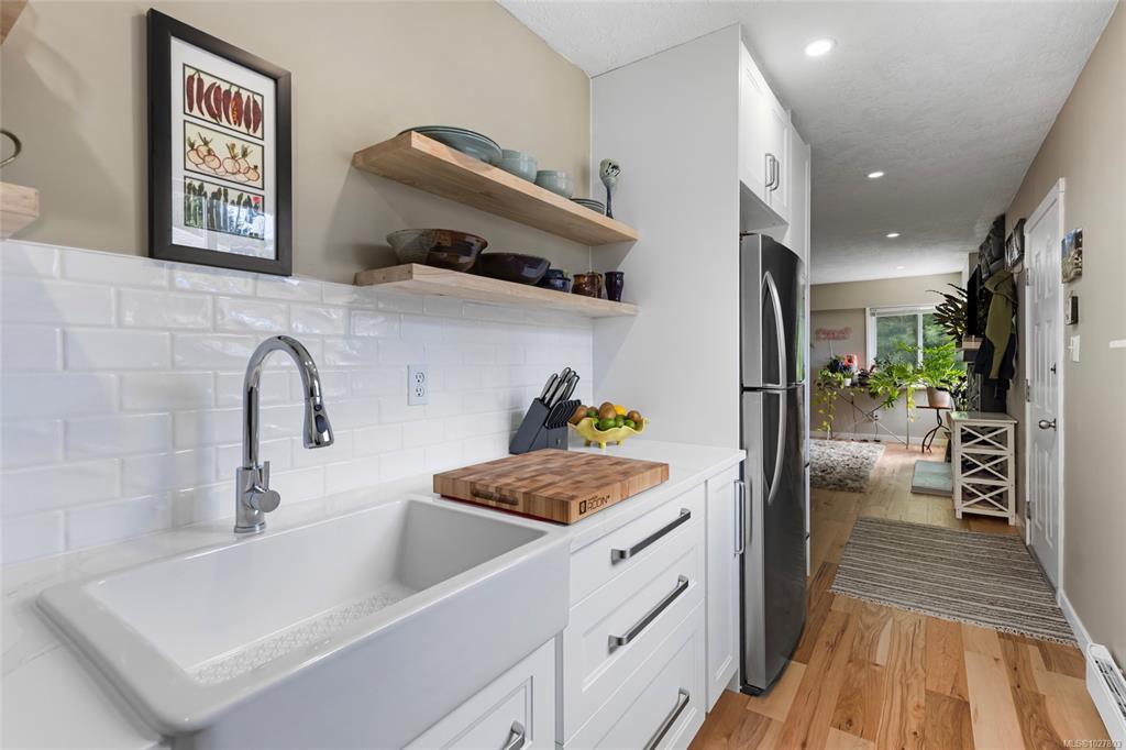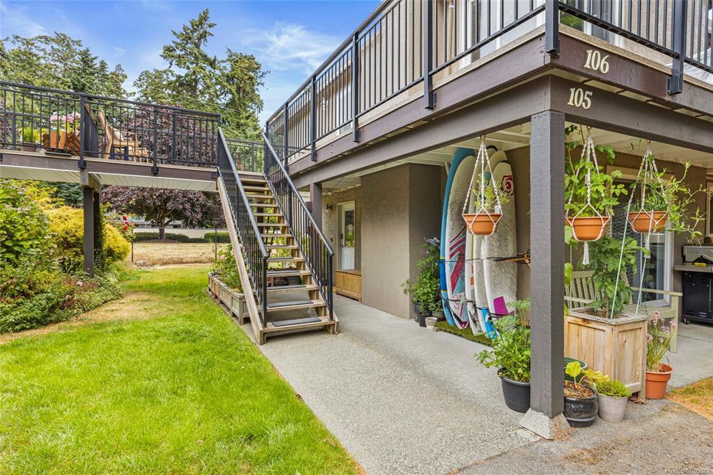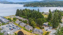 Enjoy sunrises over the water and peaceful evenings by the firepit in this charming coastal retreat, just before the busy stretch of Sooke traffic begins. With private beach access steps away, launch your kayak or paddleboard and embrace West Coast living. Relax in your fully updated condo after nearby hikes, sipping morning coffee in bed with ocean views. Both bedrooms offer ample closet space and more ocean glimpses from the windows. Kitchen fully updated with new appliances and quartz countertops. The fireplace is fitted with electric heat but can easily convert back to wood-burning. Includes shared laundry (with easy in-unit potential) and two parking spots, 51 & 52 for condo, 2 parking spots, which is quite rare. No restrictions on rentals, pets, or children make this a flexible option for homeowners or investors. As peaceful as it gets, with a large wrap around deck to soak in the sun. Just 15 mins to Langford and 30 mins to Victoria, your ocean paradise awaits! Flexible closing!