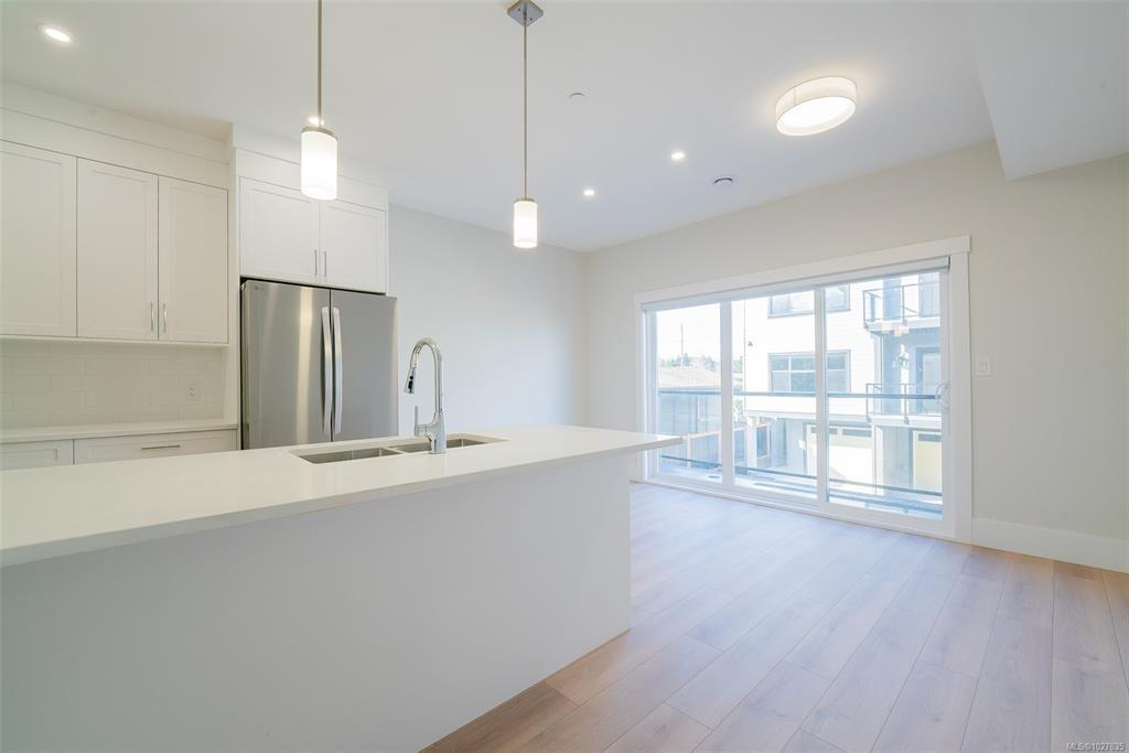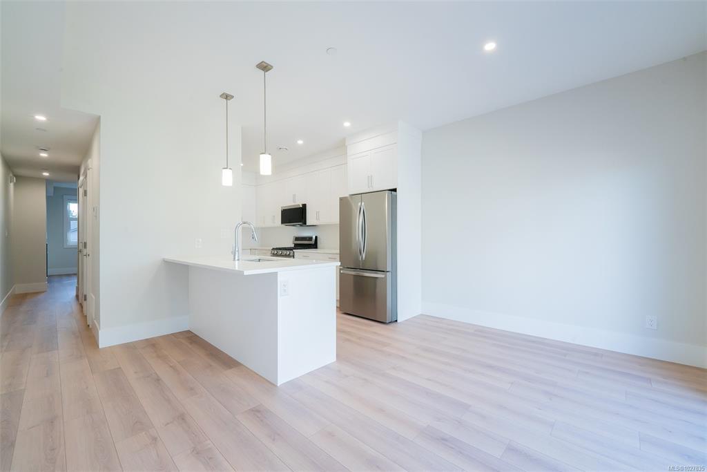 We are excited to showcase The 1615 Residences, an exciting eleven town home development in Central Nanaimo. These thoughtfully designed, quality constructed homes offer modern comforts in an easy-to-maintain setting: lock the door and go! Close to Departure Bay beach, Nanaimo Hospital, parks, and ferry terminal. Your modern living includes 1900+ sf, 3 bedrooms & 4 baths, vinyl flooring, contemporary colours and finishes, ductless heat pumps, decks, gardens, a single car garage (with EV rough-in plus driveway. Features on the main level include a large, deep peninsula kitchens, adjoining family/dining room, and living room with gas fireplace. The upper level features vaulted ceilings for optimal natural light, two spacious bedrooms with ensuite and 2nd full bathroom. The lower level is designed in a lock-off style with the 3rd bedroom, 3 piece ensuite, room for a undercounter fridge/bar, and slider onto the rear patio. All measurements approx. and should be verified if important.