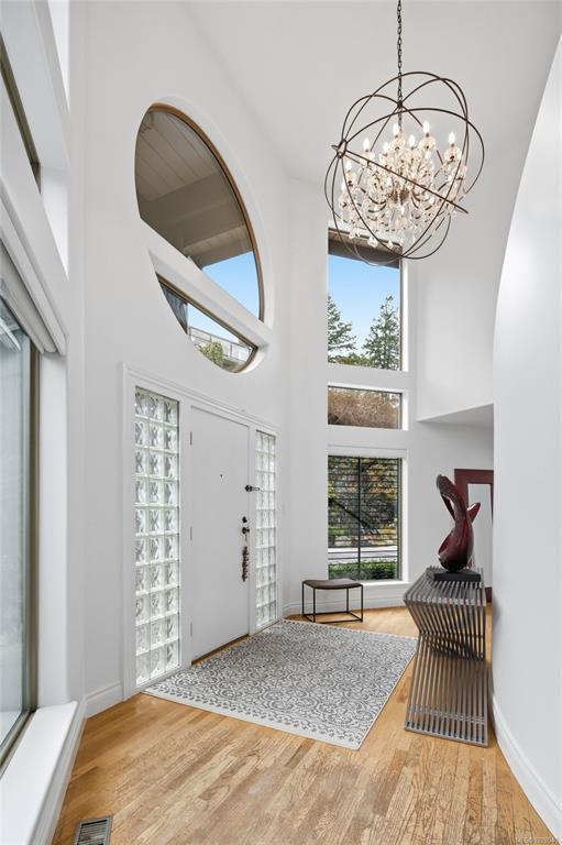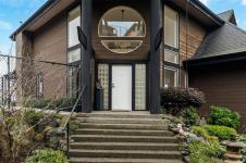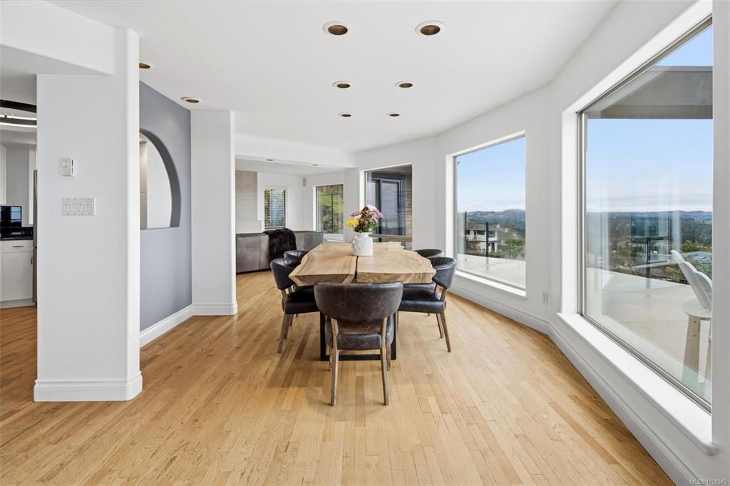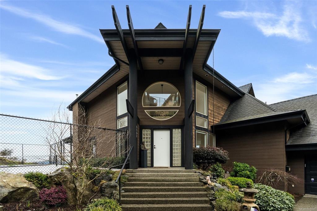 Perched on a private lot, this exceptional 5-bed, 5-bath home offers some of the most breathtaking panoramic views in Greater Victoria, capturing Mount Baker, the Olympic Mountains, the Salish Sea, and the entire city skyline. The bright open-concept main floor features a spacious family room, dining area, and living room designed to maximize natural light and stunning vistas, plus a flexible bedroom or office. Upstairs offers a beautiful primary retreat with a 5-piece ensuite, walk-in closet, and large deck, along with another bedroom and full bath. The lower level provides outstanding flexibility with two self-contained living spaces: a 1-bedroom in-law suite integrated with the main home and a separate 1-bedroom suite, both with their own entrances and laundry, ideal for extended family or rental income. The outdoor space is equally impressive with a pickleball court, landscaped grounds, and a tranquil pond with waterfall, creating a private retreat just minutes from all amenities.