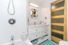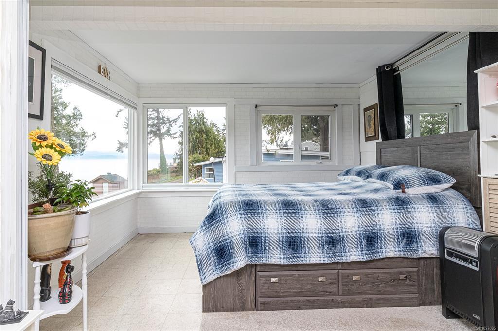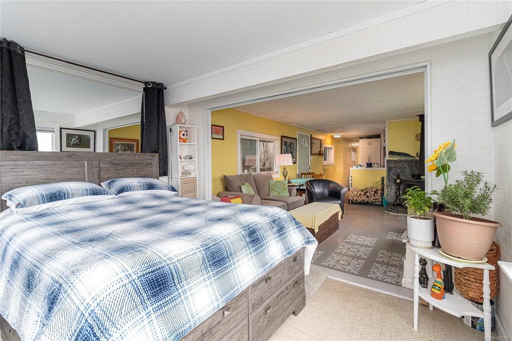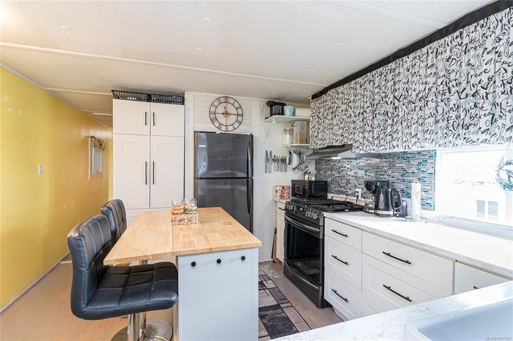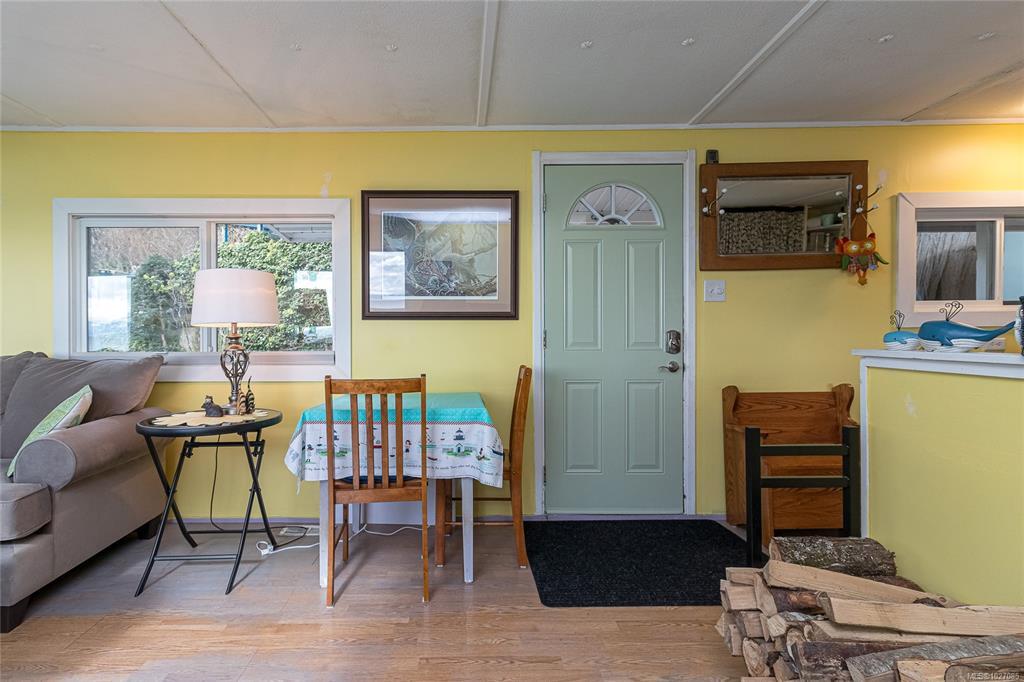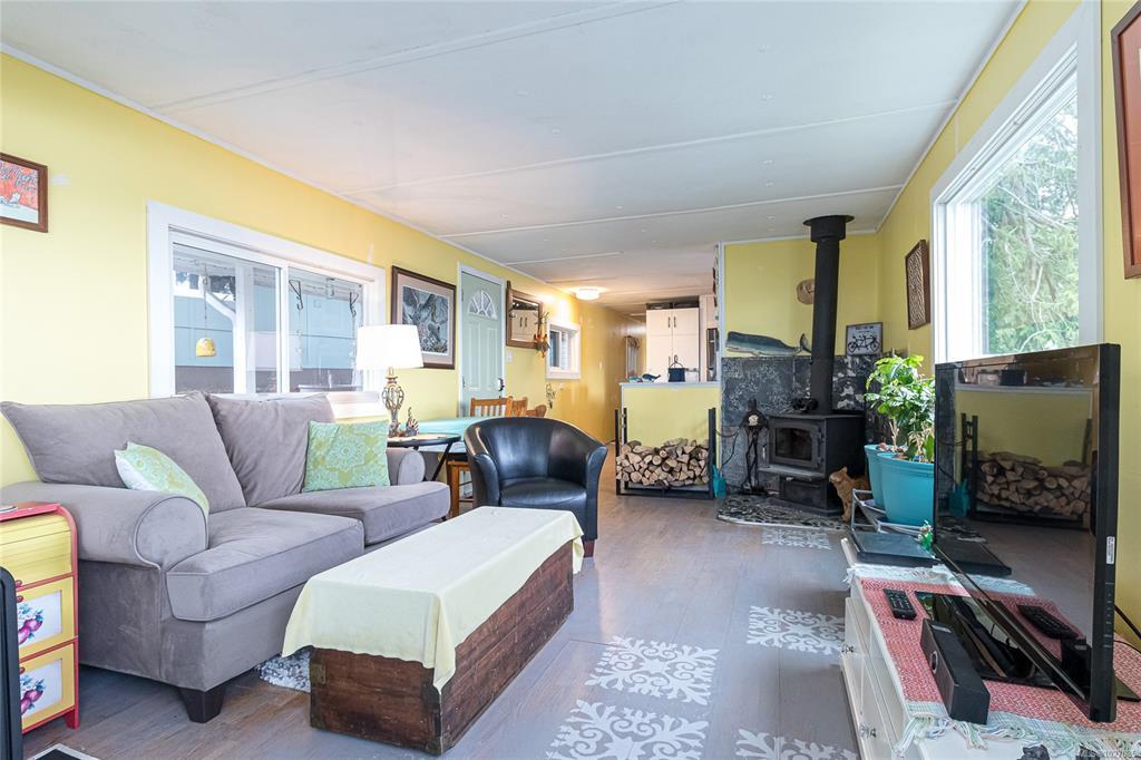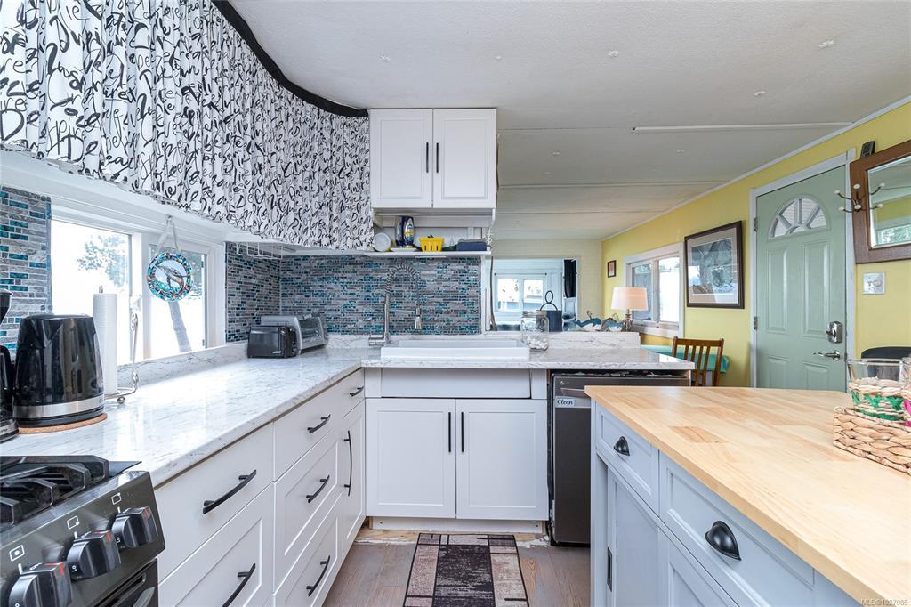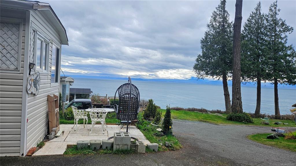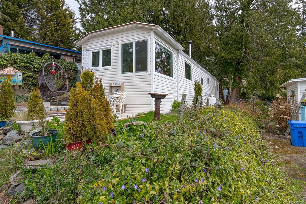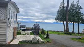 Wake up to breathtaking ocean and mountain views from this vibrant oceanfront park. Offering 3 bedrooms and 1 bathroom, this 920 sqft single-wide mobile home is full of character and coastal charm. Situated just steps from the beach, in Wells O' Weary Park, 10 minutes from downtown Sooke. Spectacular coastal views from the picturesque wall of windows in the Sunroom. It's like a live painting, capturing the colorful sunsets! Bright living room with a cozy woodstove. Spacious kitchen featuring stainless kitchen appliances, some shaker white cabinets, and an island with an eating bar. Three comfortable bedrooms and a 4-piece bathroom complete the interior, along with convenient in-unit stacker laundry. Outside leads to a sunny backyard with a seasonal creek, enjoyable sitting areas and a handy shed. Parking for two, plus nearby visitor parking. No age restrictions and pets welcome (1 dog & 1 cat, or 2 cats under 20lbs). Experience West Coast waterfront living at an affordable price.