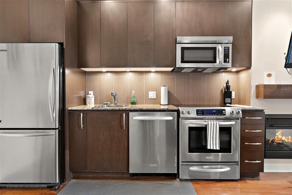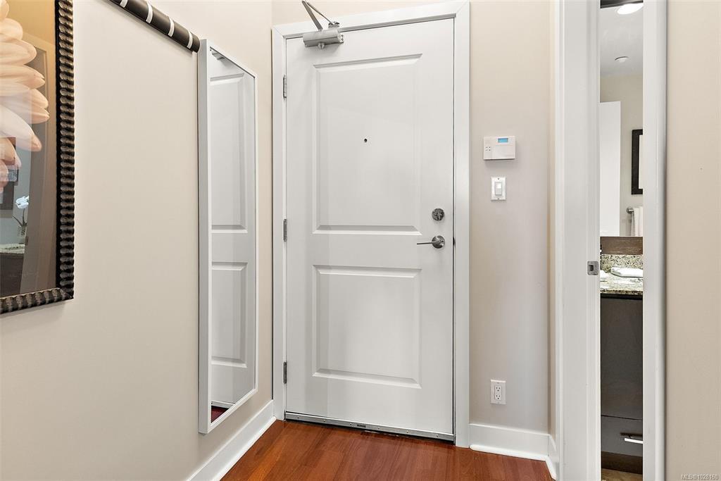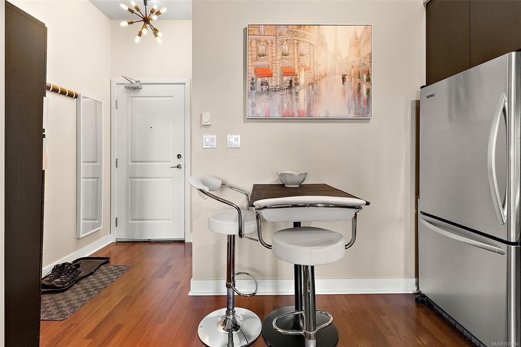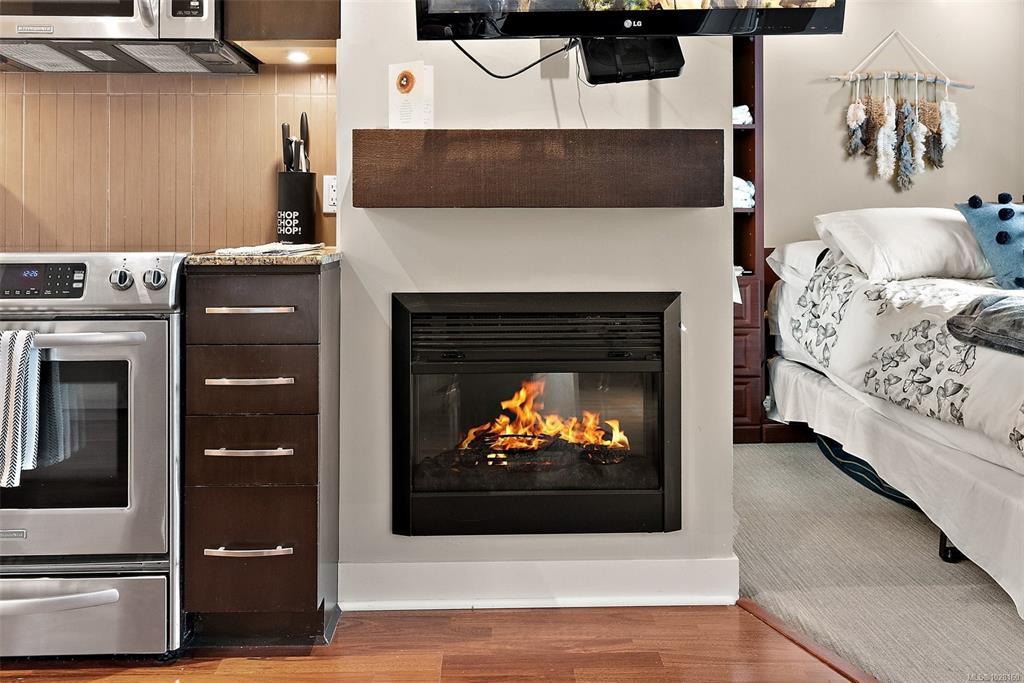 Come pay a visit to this stylish, top-floor condo in the top-rated Bear Mountain Resort Community. The scenic location puts you steps away from an 18-hole golf course, tennis courts, county club, spa, salon, physio clinic, playground, as well as boutique shops and services. This one-bed unit in the pet-friendly, recently updated St. Andrew’s building makes the most of its small space. Features include hardwood floors; over-height ceilings; discrete, in-suite laundry; electric fireplace; and covered patio with treed views. A comfortable wallbed lets your bedroom double as an exercise area or office. The unit comes with secure, underground parking and standalone storage locker. Nearby, you’ll find hiking trails for all skill levels. Goldstream Provincial Park, Sooke Foothills, and the Finlayson Arm await land-or-sea adventurers and boast spectacular scenery. When errands call, you’re just a ten-minute drive from Westshore Town Centre or twenty-five minutes from downtown Victoria.