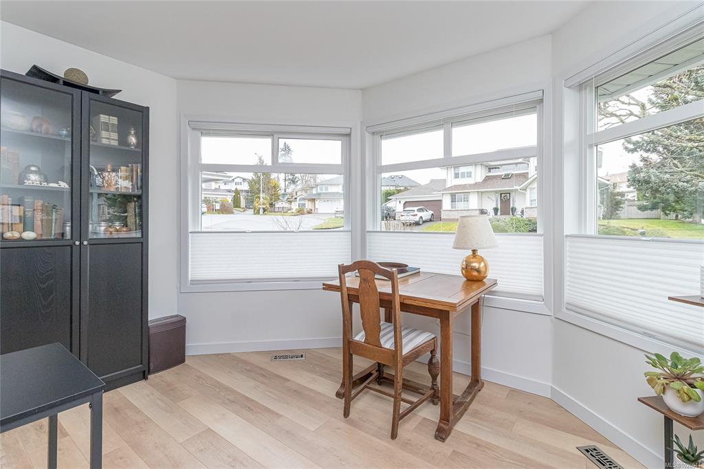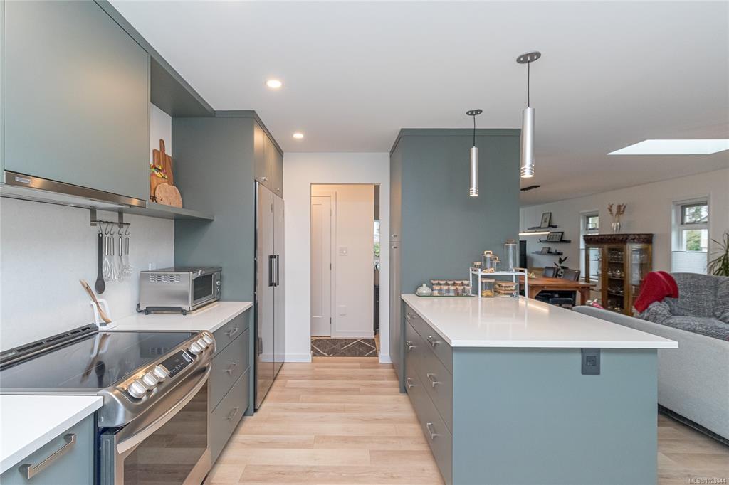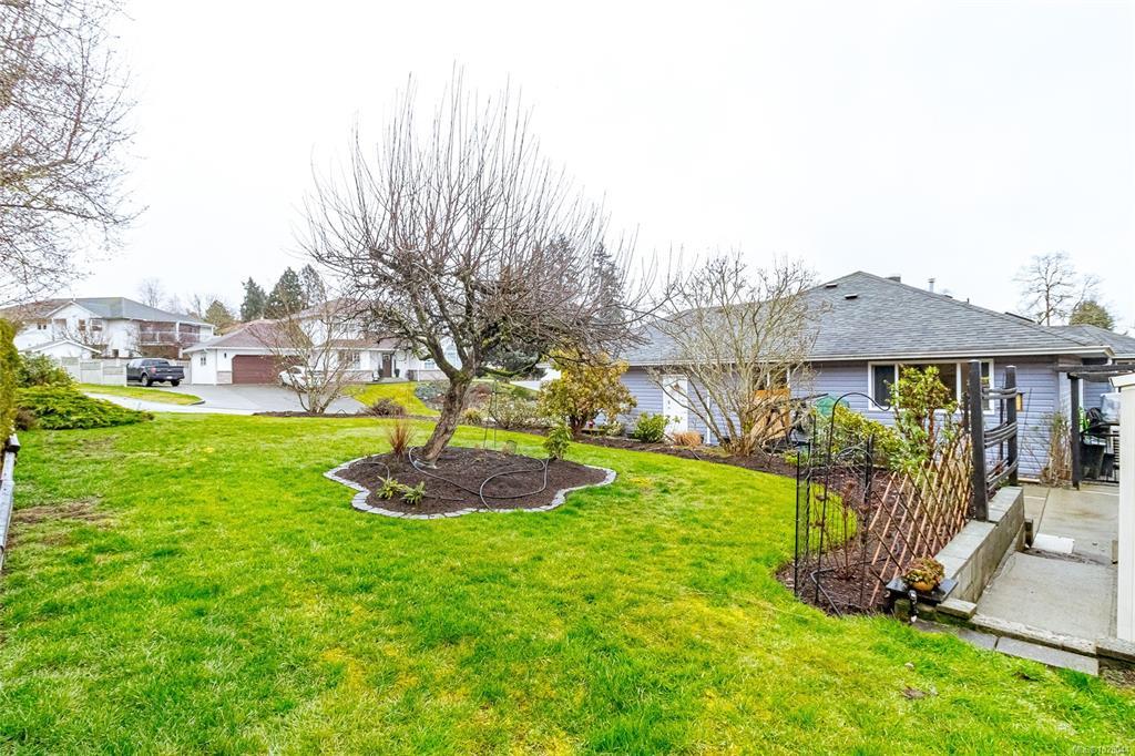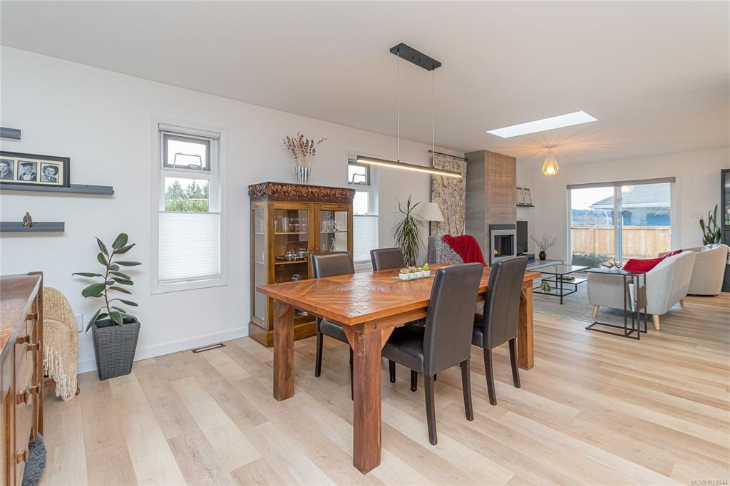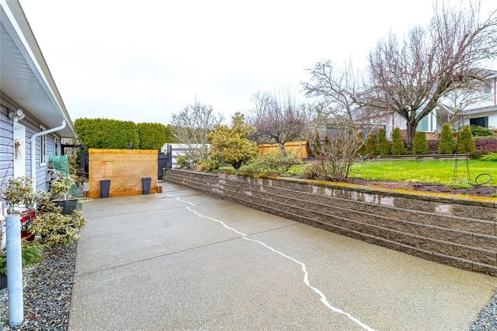 Beautifully updated 3 bed, 2 bath rancher offering 1716sqft of comfortable one-level living on a 9688sqft corner lot in a desirable Duncan neighbourhood. The bright open-concept layout seamlessly connects the living, dining, family room & kitchen. The family room opens onto a sunny south-facing deck, perfect for relaxing or hosting summer BBQs. The spacious primary bedroom features a walk-in closet & ensuite, while 2 additional bedrooms, a bathroom & a convenient laundry room complete the functional floor plan. Extensive updates throughout include newer flooring, plumbing, gutters, deck, blown-in insulation, heat pump, furnace & hot water tank, along with fully renovated bathrooms & kitchen. A cozy NG fireplace adds warmth & style to the family room. Outside, the property offers an attached double garage, plus additional parking with full RV hookups —a rare & practical feature. A move-in ready home with thoughtful updates & excellent parking options, all set on a spacious corner lot.