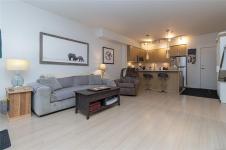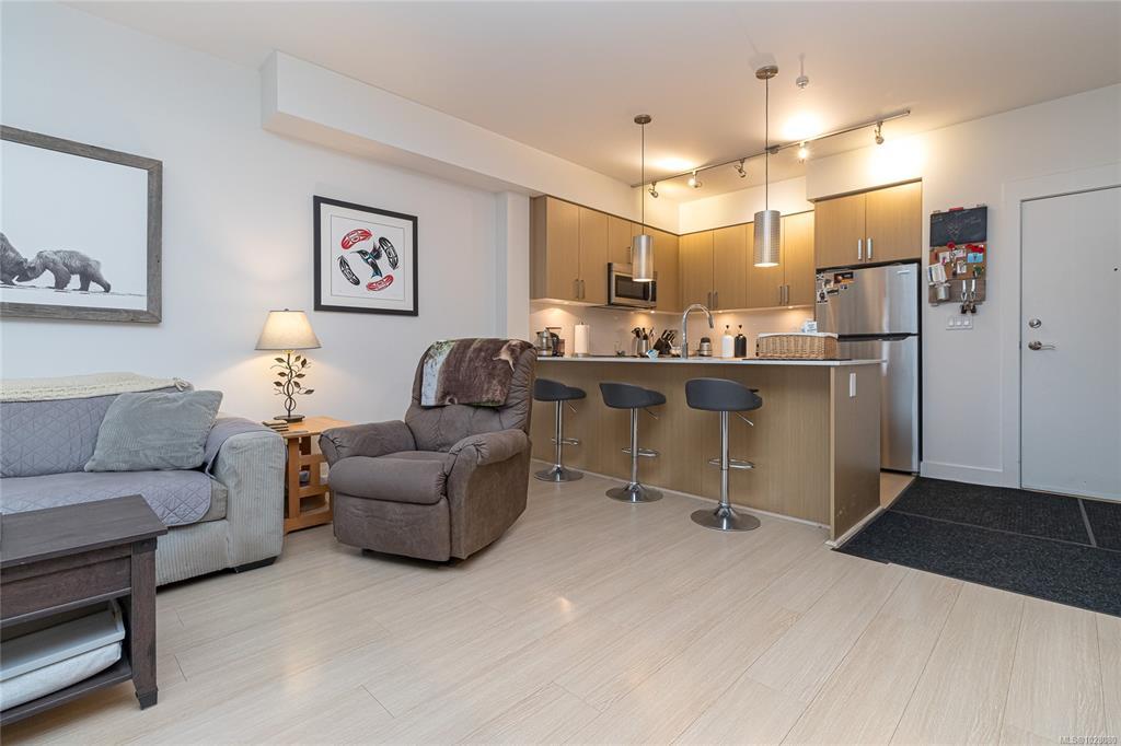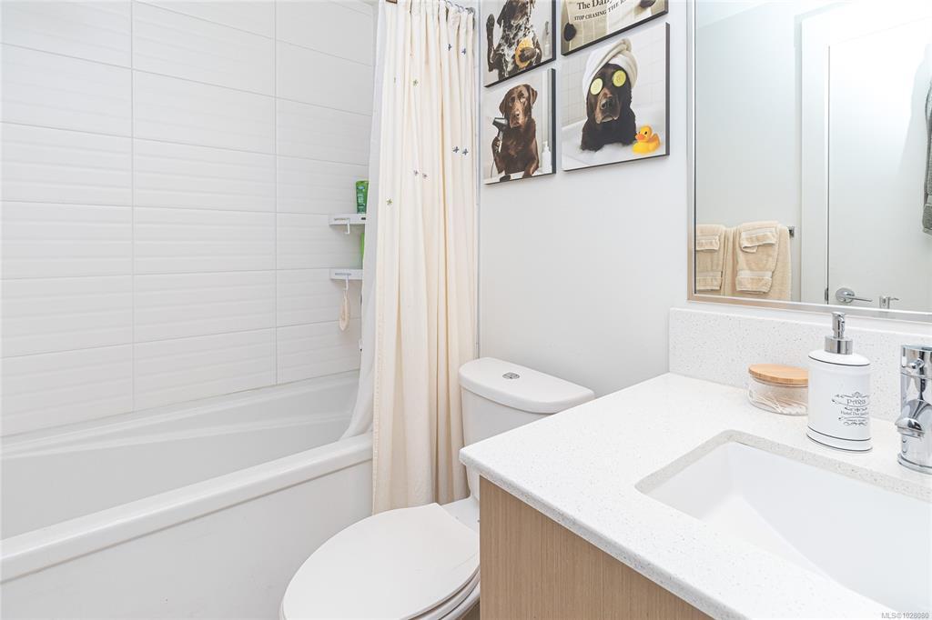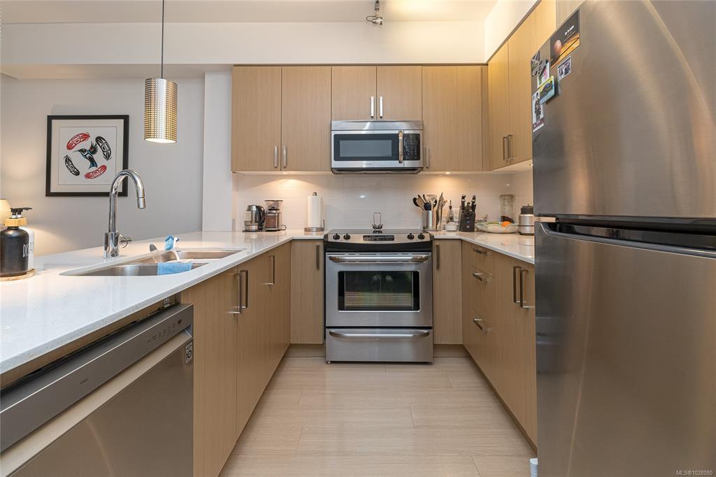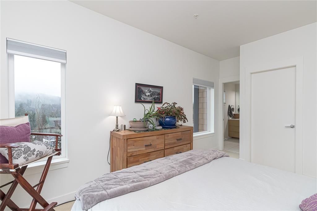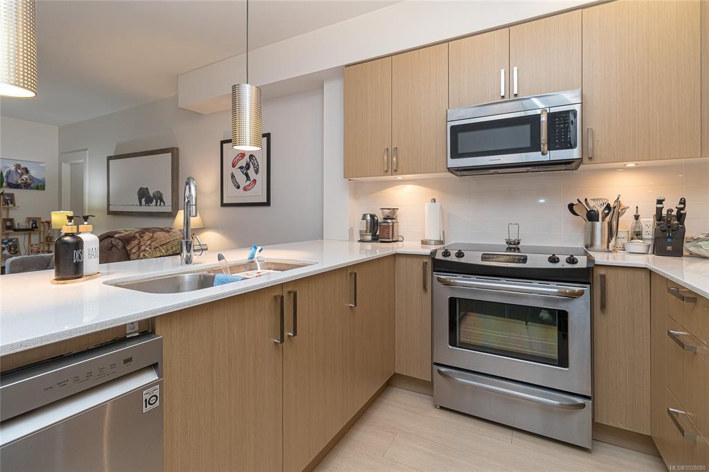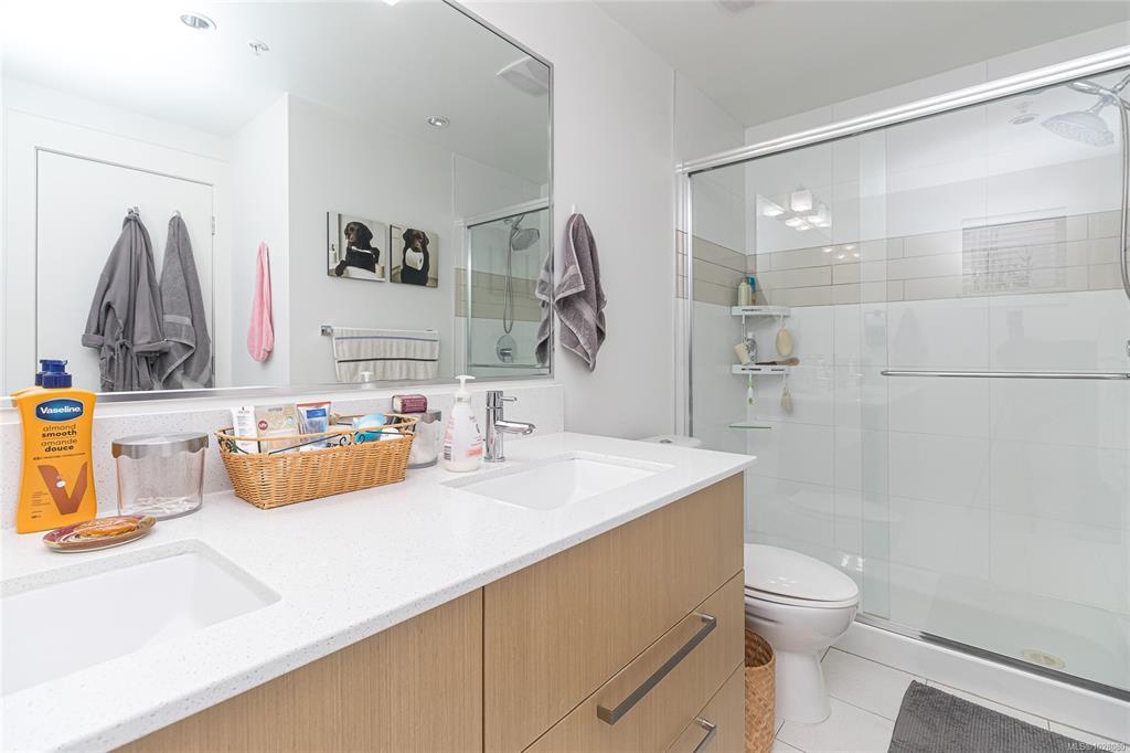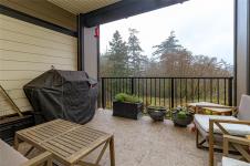 Welcome to this bright and private 2 bed, 2 bath end-unit condo at The Coho, offering one of the building’s larger floor plans with nearly 1,100 sq ft of living space. Enjoy a peaceful view from the 138 sq ft covered deck with no neighbouring units looking in—perfect for relaxing or BBQing year-round. The open layout features bedrooms separated by the kitchen, dining, and living areas for privacy. The kitchen offers stainless steel appliances, quartz countertops, and a sit-up eating bar, with the sink overlooking the living space and trees beyond. Both bedrooms feature corner windows for great natural light. The spacious primary bedroom includes a walk-in closet and spa-inspired ensuite with quartz counters, double sinks, and a walk-in shower. A second full bathroom, linen closet, and laundry complete the home. Secure underground parking and storage included, plus visitor parking. Rentals and pets allowed. Ideally located in View Royal close to parks, shopping, and amenities. Call Now!