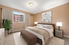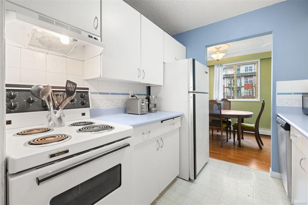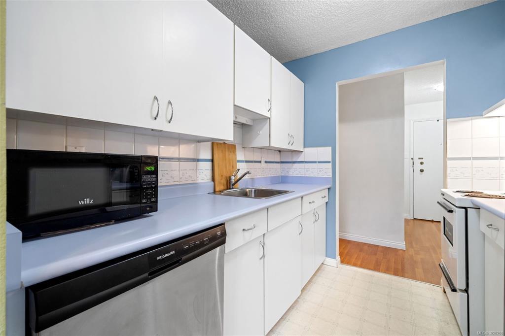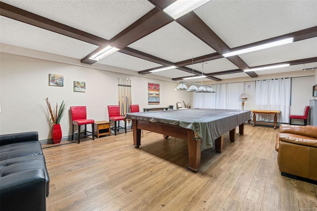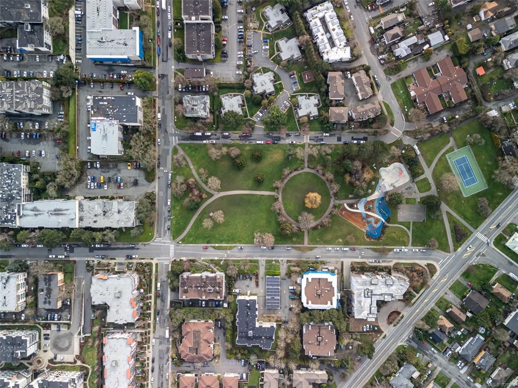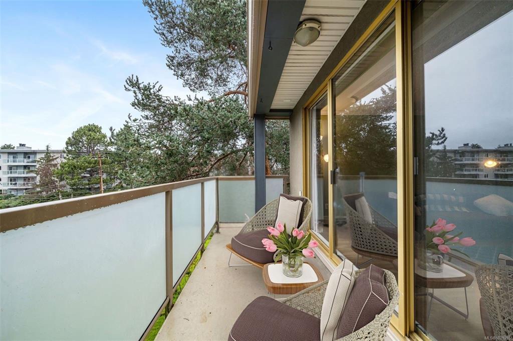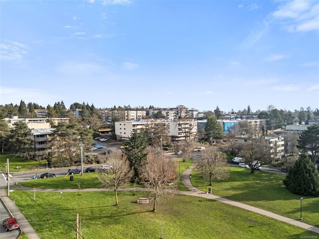 Bright and spacious 2-bed, 2-bath corner unit offering exceptional value in a prime central location. This west-facing home is filled with natural light and enjoys peaceful views overlooking Rutledge Park. The well-designed layout includes a dedicated dining area, comfortable living space, thoughtful separation of bedrooms and a private balcony. Elegant crown mouldings and ceiling details add warmth and character to the space. This professionally managed complex offers outstanding amenities, including a resident caretaker, sauna, gym, woodworking room, large common workshop, community lounge with billiards table -- and heat and hot water included in the strata fee! Located steps from Rutledge Park, walking distance to Mayfair Mall, close to schools, shopping, coffee shops, Uptown and major bus routes. Downtown Victoria is only five minutes away, with UVic and Camosun College just ten minutes by car — an ideal home for lifestyle and convenience.