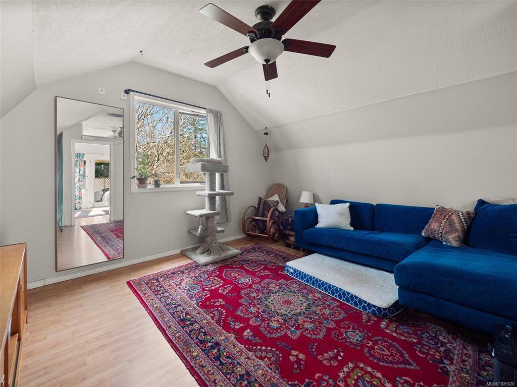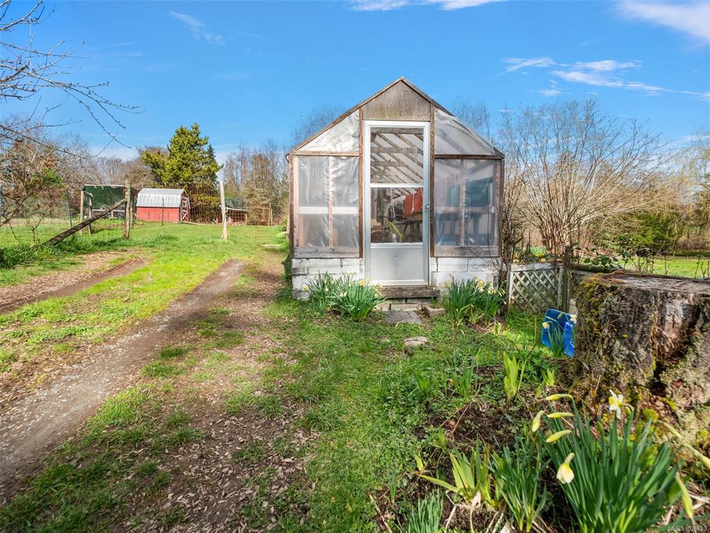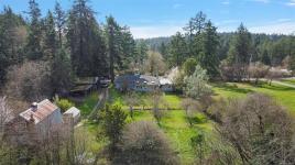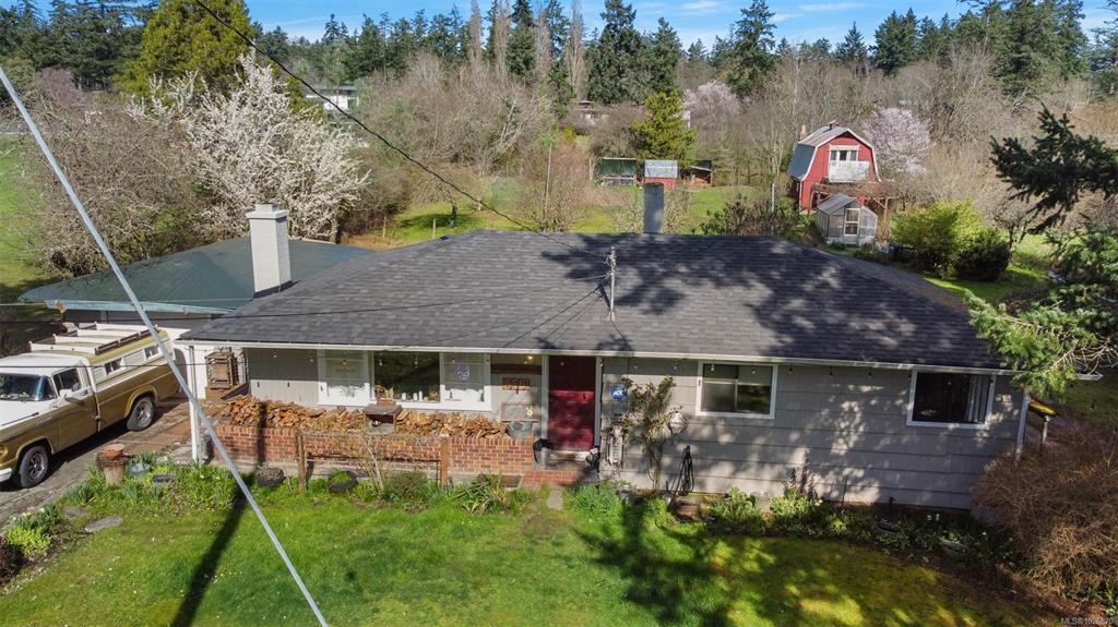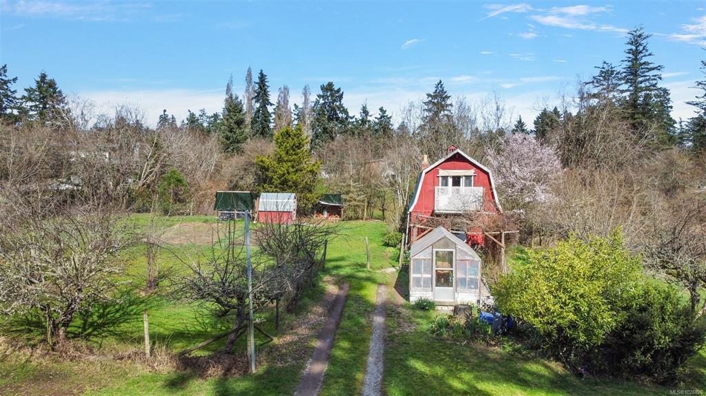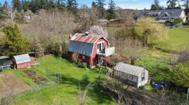 Tucked away in Saanich West, this 1-acre property A-1 zoning offers a rare blend of privacy & possiblities. The main residence is a lovely Rancher with a traditional layout offering 3bdrms, a 4-pce bthrm, a combined living/dining rm with wood fireplace, family rm, laundry, eat-in kitchen w/ access to a generous screened-in porch. A converted barn is a self contained studio with an eat-in kitchen, living rm, 4-pc bthrm on the main level plus a bedrm w/ balcony & den on the 2nd level. The versatile space includes pathways & slate patio ideal for guests/family/potential income. Gently sloping usable acreage is landscaped w/ multiple accessory structures. Improvements include; single garage,new oil tank,carport,storage shed, greenhouse,chicken coop,interior/exterior paint,flooring,lighting,electrical,plumbing,bathroom updates,furnace/duct service,roof/gutter replacement,new HWT & water line upgrades.Septic is older but functioning & maintained. Minutes to Camosun College & shops/amenities.