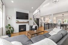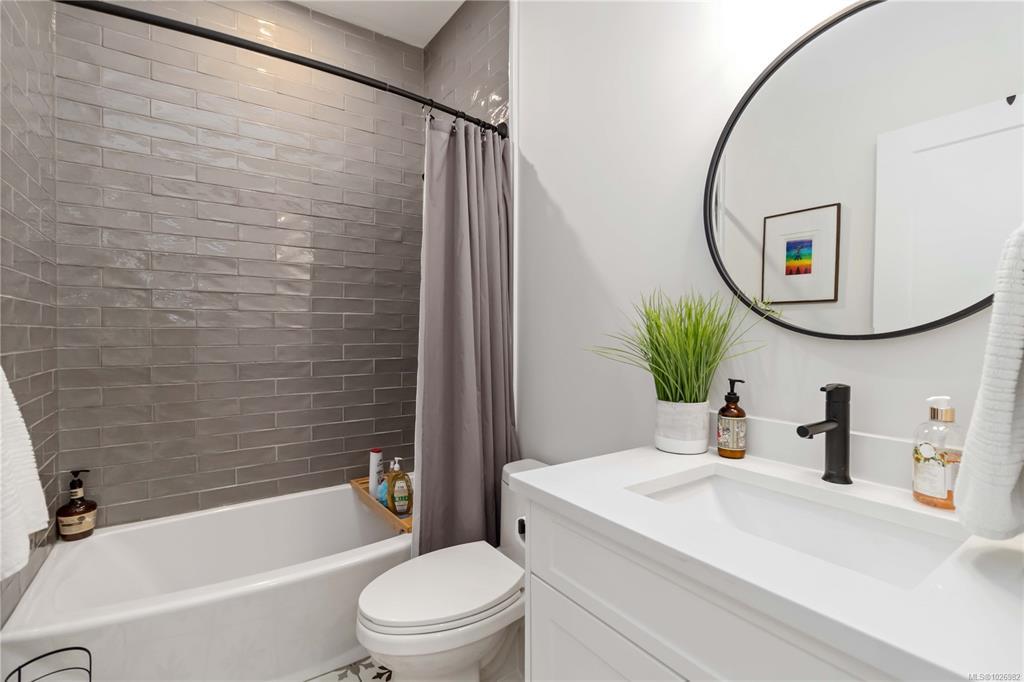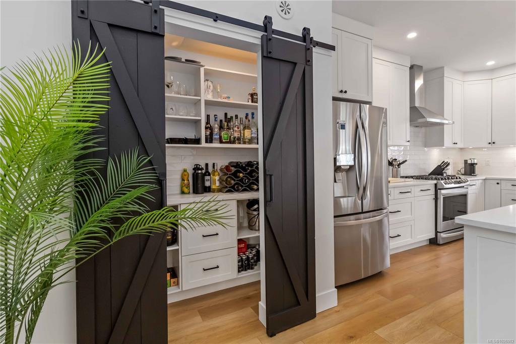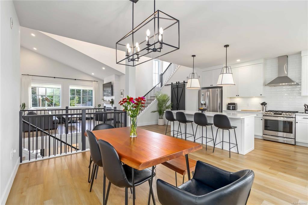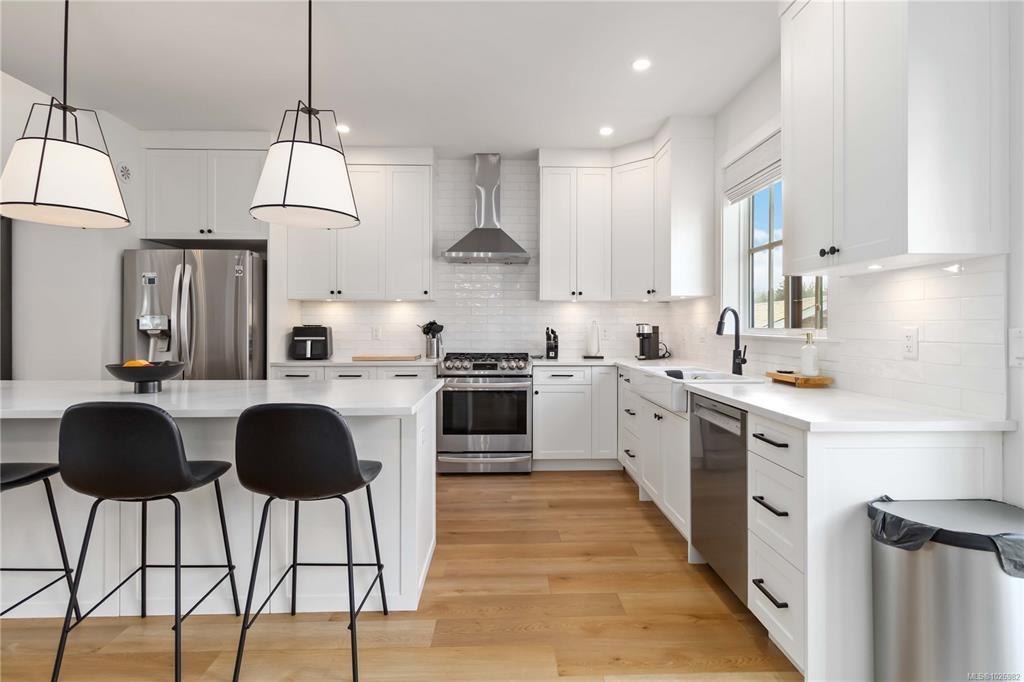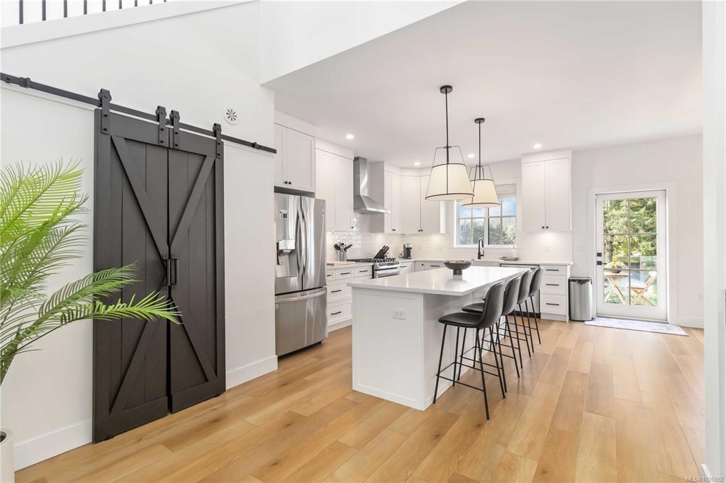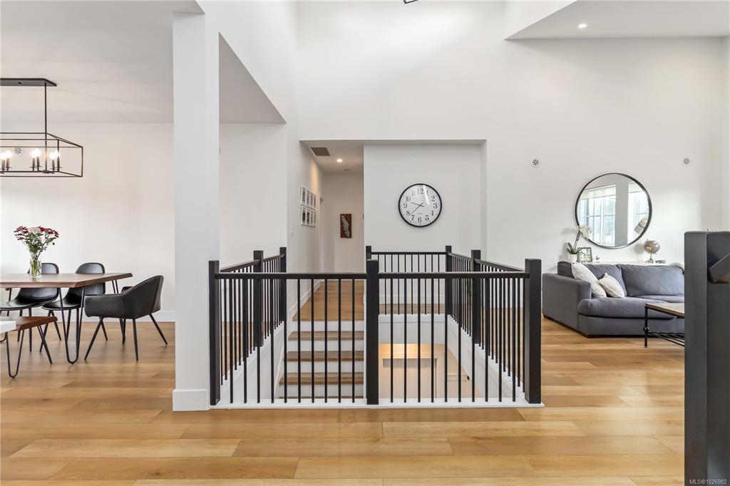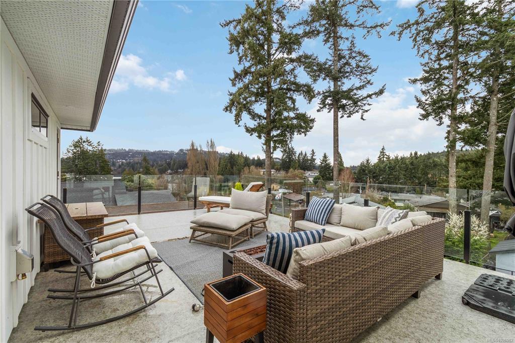 CUSTOM 5 bed 4 bath (Inc 1 BEDROOM LEGAL SUITE) steps from Belmont High School, GLEN LAKE, & Galloping Goose Trail! Enter inside to find an amazing layout with beautiful finishings and your lower bedroom/office area, access to your double garage, massive lower living room with bathroom & access to your SOUTH WEST facing flat fenced backyard! Main level has vaulted ceilings, natural lighting throughout from multiple windows, livingroom with Natural Gas Fireplace, large dining area, huge kitchen with a massive quartz island, N-Gas Stove, farmhouse sink & WALK IN PANTRY! Nice deck to enjoy off your kitchen area as well. FORCED AIR Heating/COOLING System, EV Charger. Main level you have your 3 bedrooms including a massive primary bed with stunning 5 piece ensuite inc SOAKER TUB, walk in shower, his/her sink, and huge WALK IN CLOSET with custom shelving. Full laundry room with cabinet storage on main level & ROOF TOP Balcony offering VIEWS of GLEN LAKE with storage room for patio furniture!