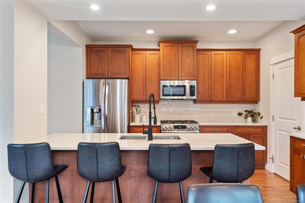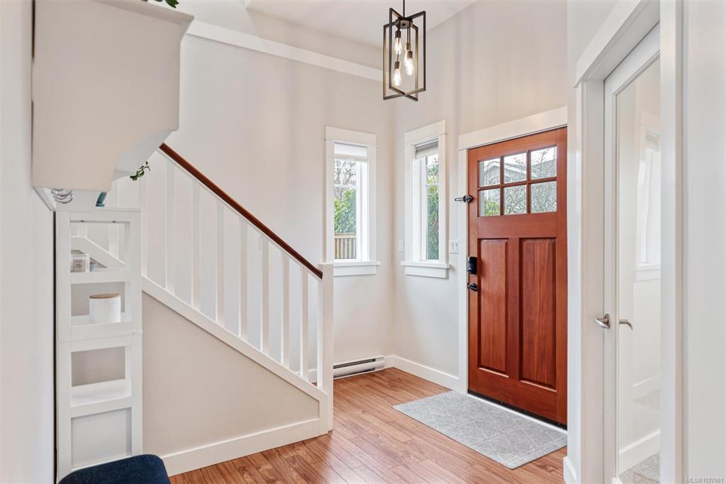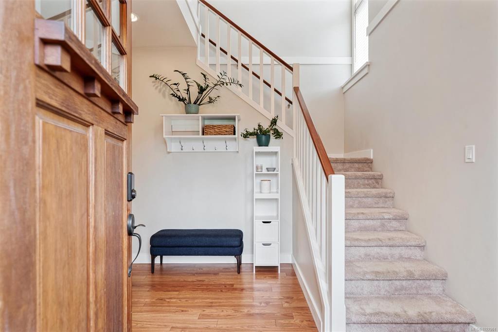 Tucked at the end of a quiet cul-de-sac in Saanich’s popular Copperfield Village, this thoughtfully designed 2007 home offers an ideal layout for family living. A rare highlight is four bedrooms located on the upper level. The main floor features a bright open plan with a generous kitchen & island, plus easy access to the patio for outdoor dining. The adjoining living & dining areas feel warm and inviting with a gas fireplace & 9-foot ceilings, while a separate family room and powder room add everyday functionality. A heat pump provides efficient year-round comfort, & the fully fenced backyard is perfect for children and pets. Upstairs you’ll find a spacious primary suite with walk-in closet & updated ensuite, along with three additional bedrooms & a full bathroom. Additional highlights include tankless hot water, a large crawlspace for storage, single garage, and exterior shed. Located just steps to Pacific Christian School & Glanford Park, and mins from Uptown shopping and amenities.