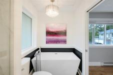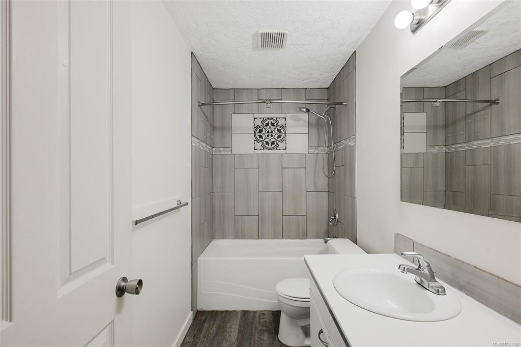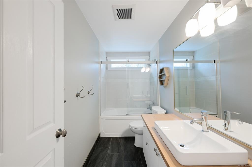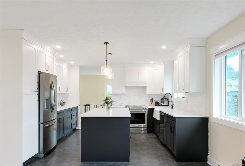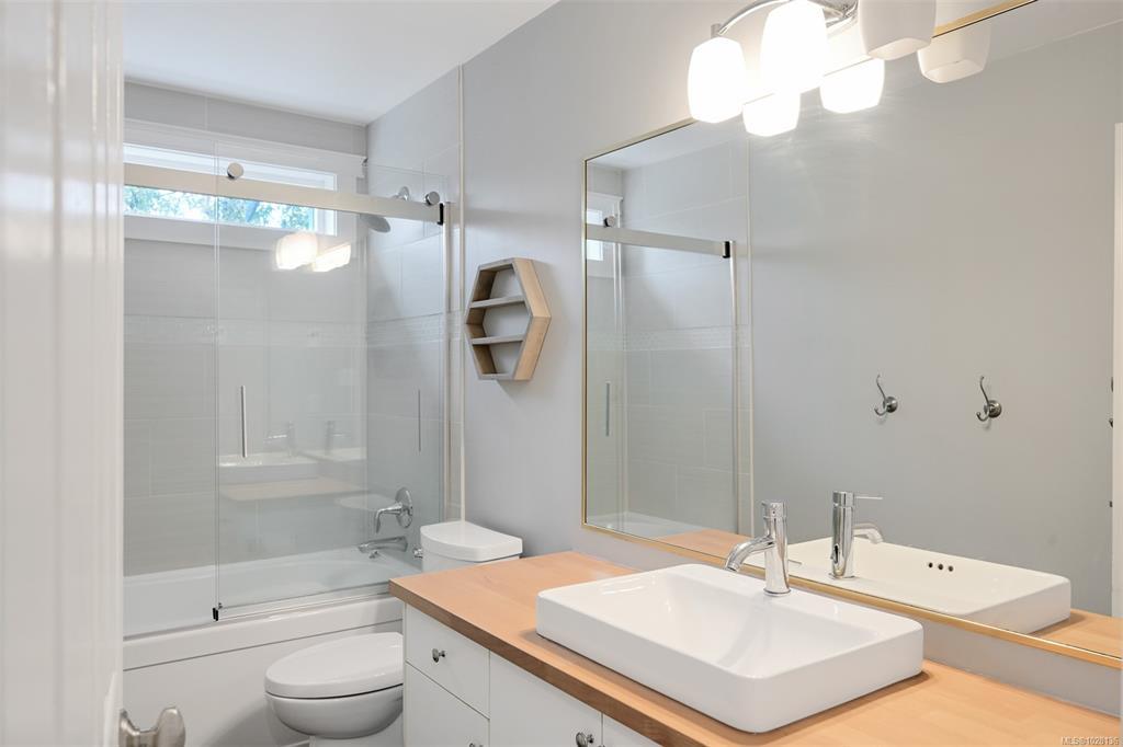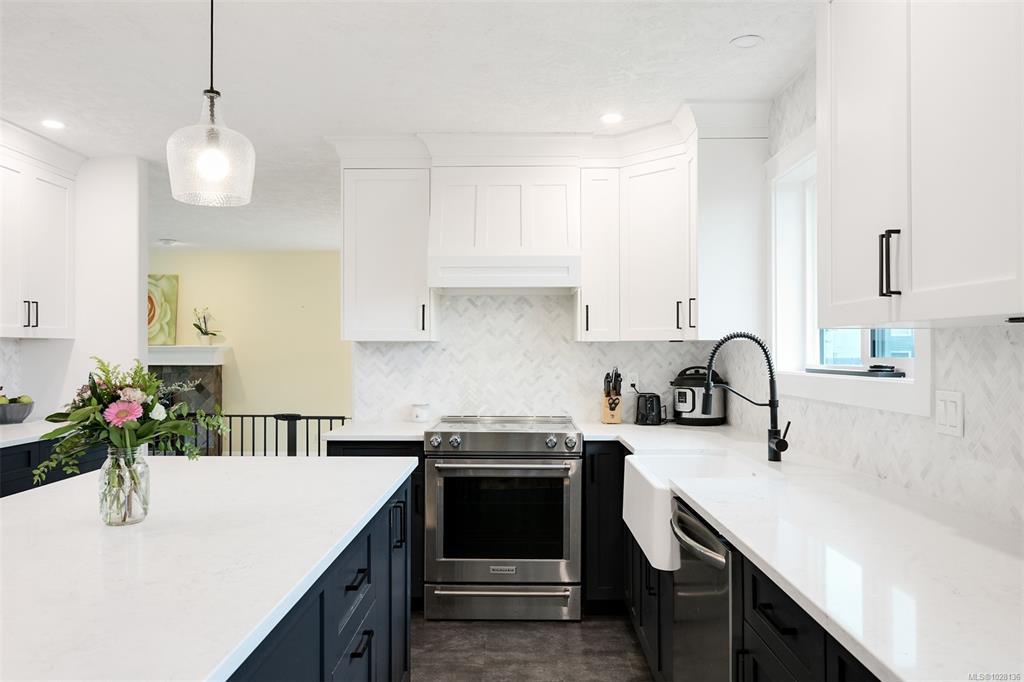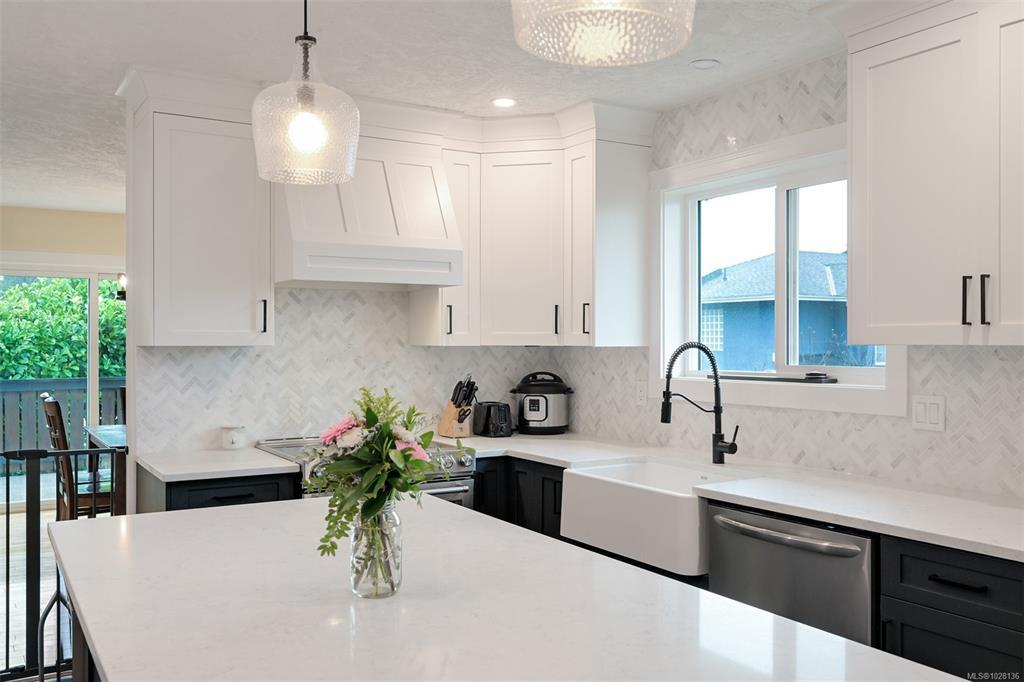 OPEN HOUSE SAT MARCH 14TH 2-4PM Beautifully renovated 5 bedroom, 3 bathroom family home on a quiet cul-de-sac in the popular Strawberry Vale area. The main level offers a great layout with hardwood floors, a spacious living & dining room with access to a large deck, & a gorgeous new kitchen with a huge island, quartz counters, & stainless steel appliances. A family room is off the kitchen, along with an updated main bathroom & 3 bedrooms, including a Primary Bdrm with a new luxury ensuite featuring heated tile floors, a large shower, & separate tub. The lower level has a den off the entrance, plus, there's an in-law suite that can either be 1 or 2 bdrms, & a shared laundry room. Additional features include new windows, new hot water tank, & a double car garage. The fully fenced backyard has lots of privacy; it's perfect for relaxing, gardening, & features mature fig trees. Amazing central location close to parks, schools, shopping, buses, Camosun College, & the Galloping Goose Trail.