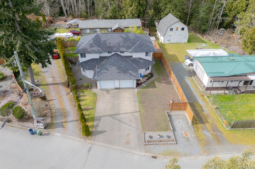 Immaculate and affordable half duplex with no strata fees in a quiet Chemainus neighbourhood, just minutes from schools and shopping. The main floor offers an open kitchen and dining area, living room, office nook, plus a 2-piece bath and laundry. Sliding doors from the dining area lead to a fully fenced, private yard featuring a covered patio, storage shed, wood storage, raised garden beds, and a heated studio—ideal as a guest room, office, or hobby space.