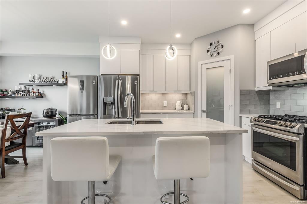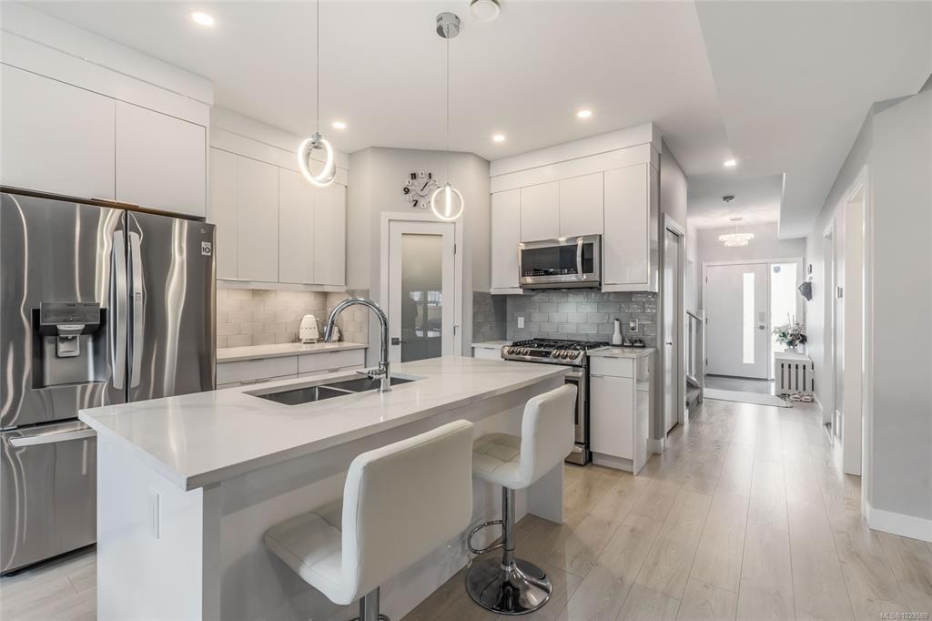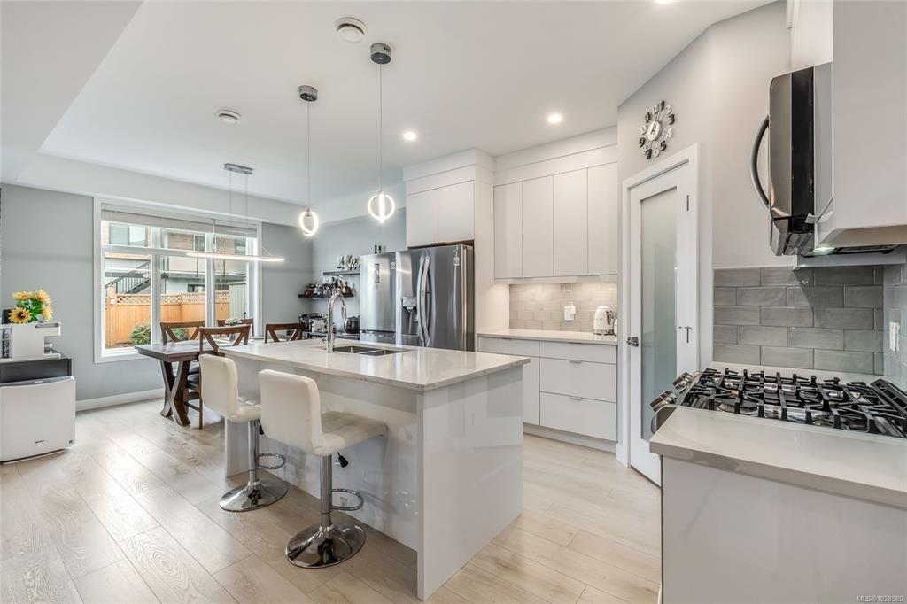 SHARPLY PRICED! OPEN HOUSE SUNDAY 2–4 PM. Beautifully maintained detached duplex offering modern comfort and functional family living. This home features approximately 1,788 sqft with 3 bedrooms plus a den and 3 bathrooms. The bright open-concept main floor includes a contemporary kitchen with quartz countertops, stainless steel appliances, gas range, and a large island. The inviting living area features a fireplace and access to a partially covered patio. Upstairs offers a spacious primary bedroom with walk-in closet and ensuite, plus two additional bedrooms and a full bathroom. Enjoy year-round comfort with gas furnace heating, air conditioning, and hot water on demand. EV charger ready in the garage. Low-maintenance artificial turf and a fully fenced backyard complete this move-in ready home. Just minutes’ walk to the aquatic centre, ice rink, schools, and parks. No strata fee. A must-see! All data and measurements are approximate and should be verified if important.