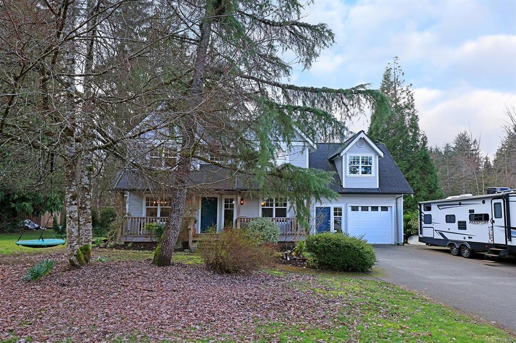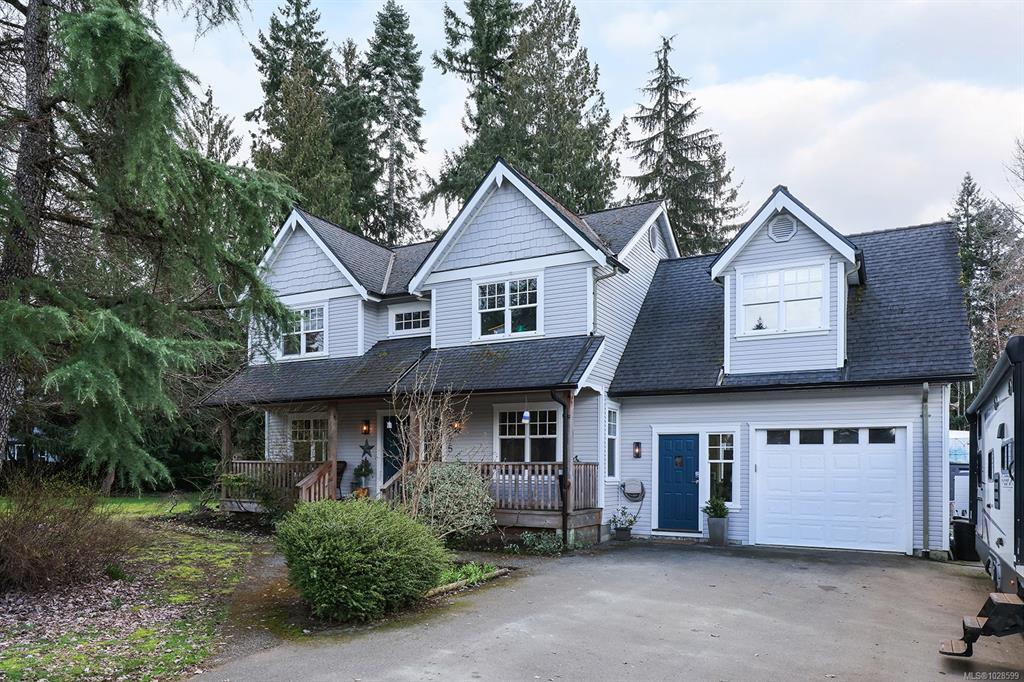 Located in desirable Royston on a quiet cul-de-sac, sitting perfectly on .974 acre. This beautiful Cape Cod home has room for everyone! Open concept kitchen w/gorgeous maple wide plank floors sits in between the dining & family rooms w/cozy woodstove & vaulted ceilings, making entertaining/family time a breeze. A separate living room offers peace to those needing quiet time. Huge mud/laundry rm off the garage. Spacious sundeck, w/large covered portion for year-round BBQ's. Primary suite on the main w/vaulted ceiling, WIC, ensuite & access to the sundeck + 4 more bdrms upstairs, with full bath, lots of storage & den! The 5th bedroom could be a bonus room? Outside, you'll love the privacy offered by mature trees, hedges and the little fish-bearing creek in the back, complete with a bridge. Lots of parking, room for a boat/RV and a cute detached shop. Easy bike or walk to the beach, Royston E is only a block away & Courtenay is a quick 5 min drive!