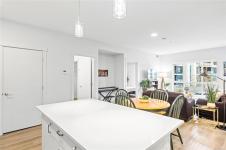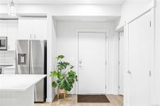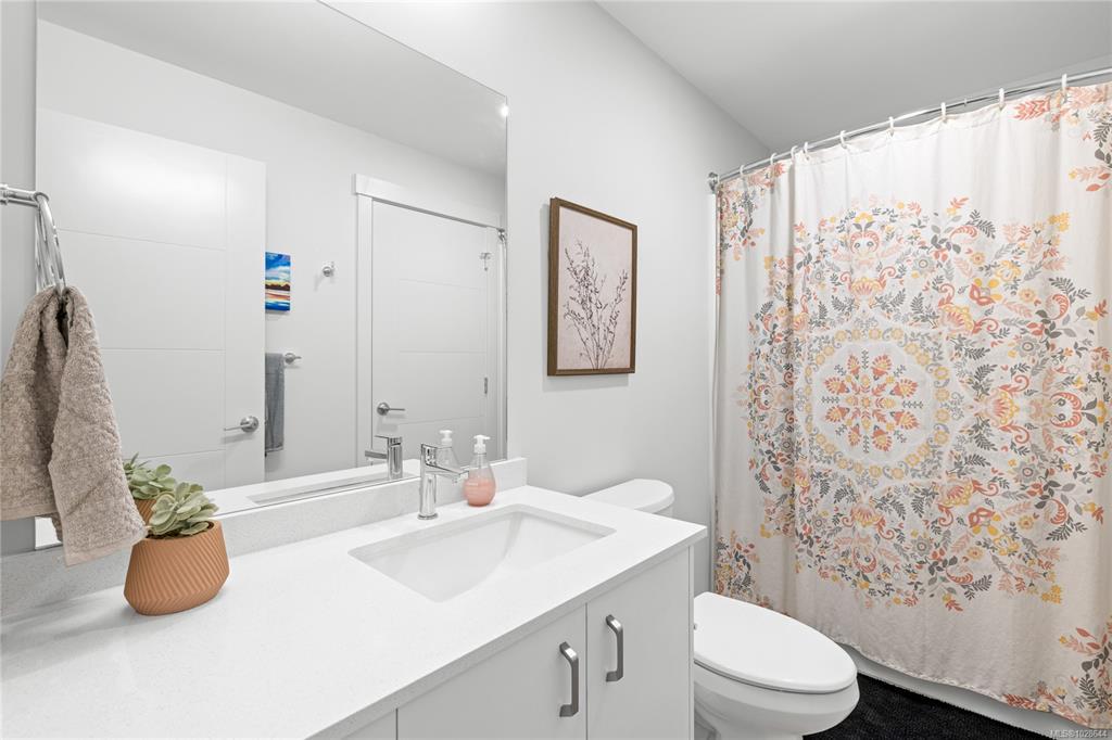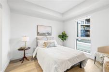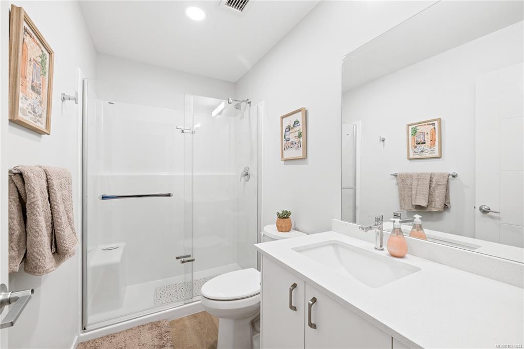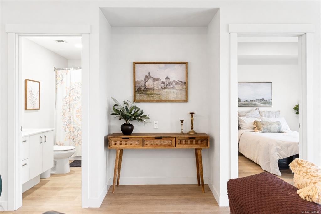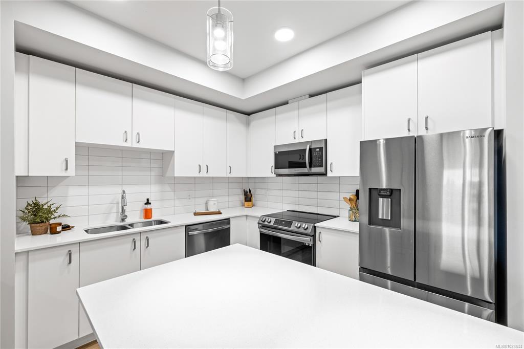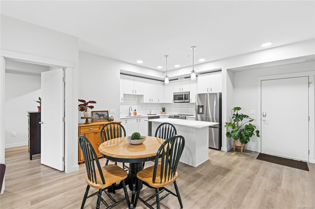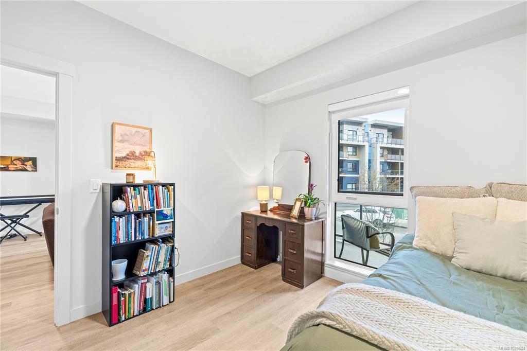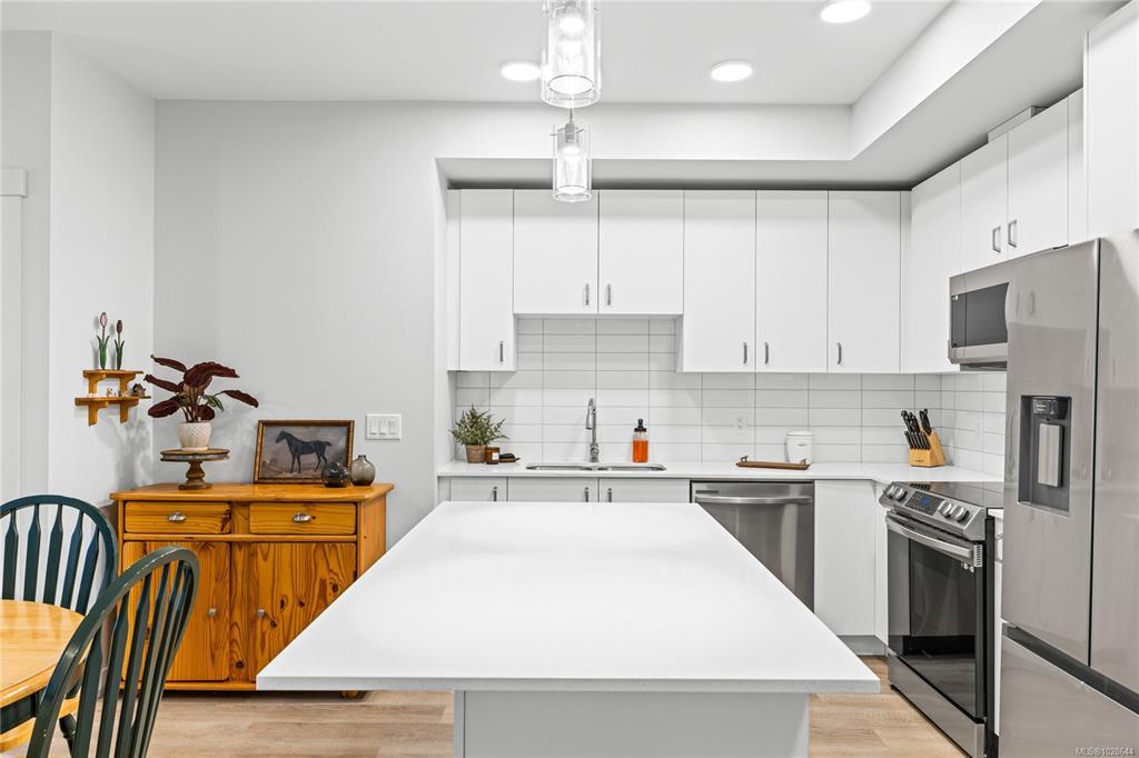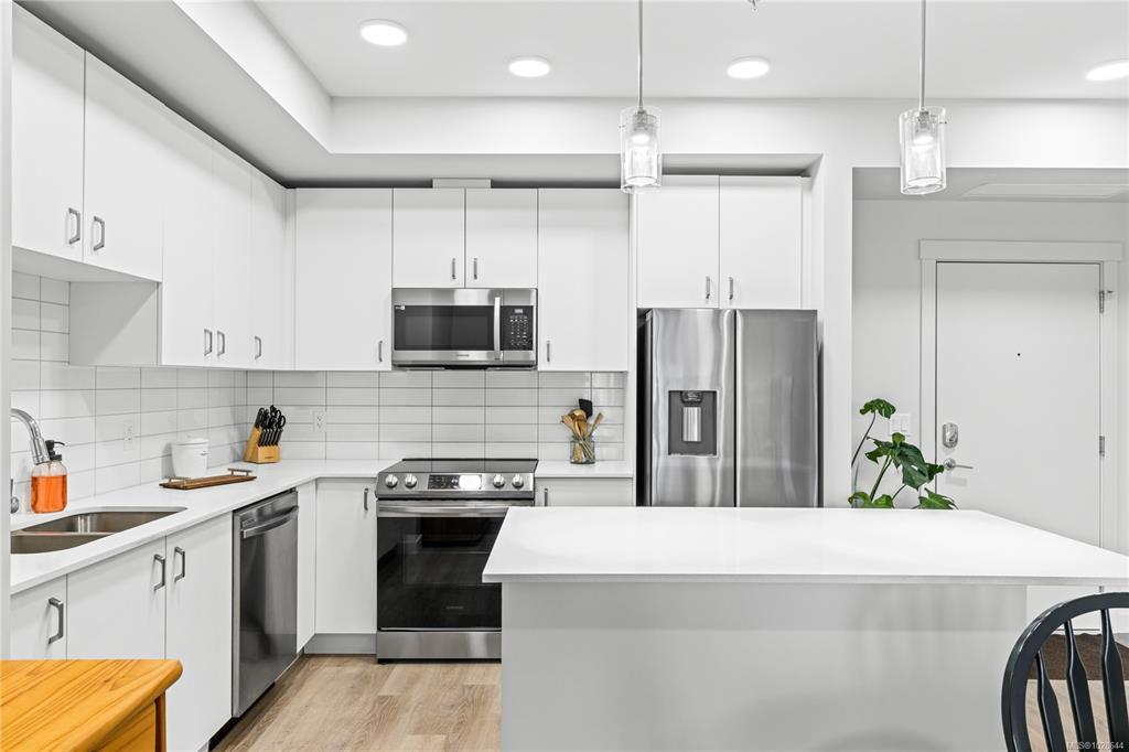 Welcome to Mosaic, a modern 2 bed/2 bath home built in 2023. This light filled first floor unit offers easy access while sitting above street level for added privacy, with open sightlines to the coastal mountains and a peekaboo ocean view. Oversized windows enhance the airy feel, while the stylish kitchen features quartz countertops, soft close cabinetry and a large island. The open floor plan is ideal for entertaining and extends to a covered balcony perfect for morning coffee or summer evenings. Both bedrooms feature walk-in closets, complemented by an in-suite laundry/storage room plus a separate storage locker. Included is a sought after underground parking stall with opt. EV charging upgrade. Designed with efficiency, the home offers a heat pump for heating/cooling, hot water on demand, triple pane windows and smart water shut off. Steps to Parksville’s main beach, groceries, coffee shops, restaurants and trails, this is central living at its best. Pet/rental friendly.