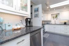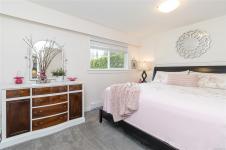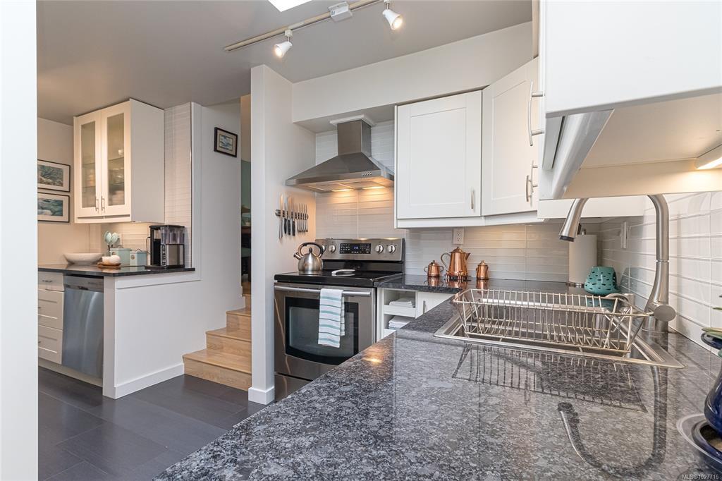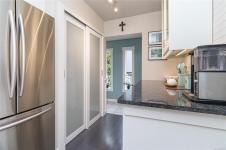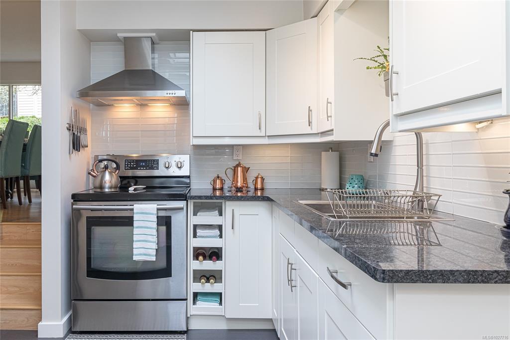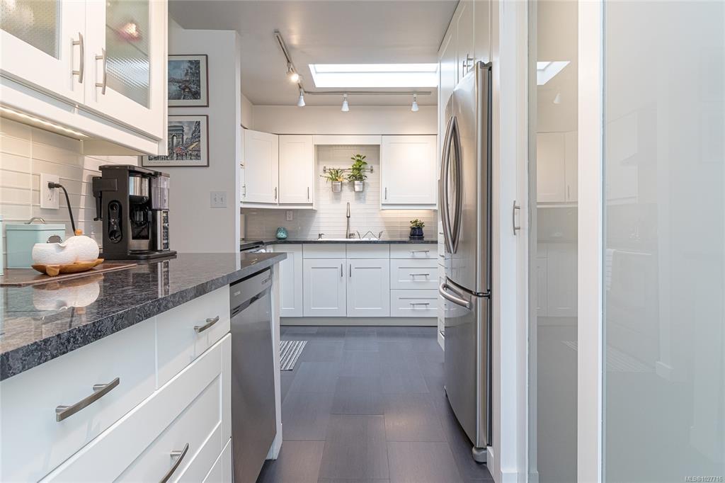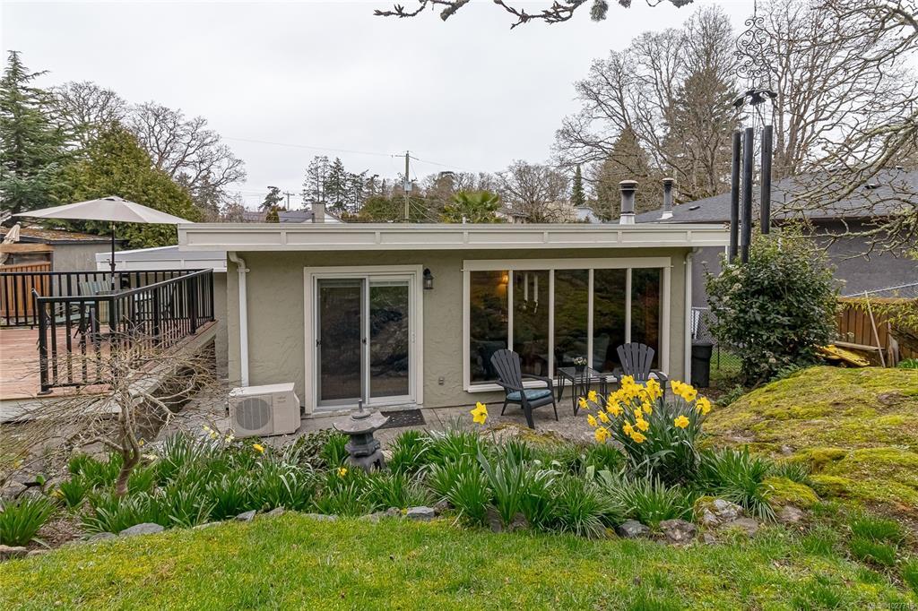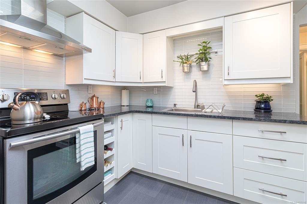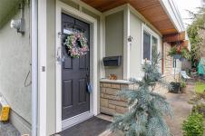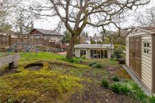 Turnkey mid-century home in the desirable Strawberry Vale area! This beautifully renovated property features a stunning skylit kitchen with granite countertops, stainless steel appliances, soft-close cabinetry, and a spacious pantry. The spa-inspired bathroom offers a walk-in shower and relaxing soaker tub. The primary bedroom includes a feature wall, wall-to-wall closets, and space for a king bed. Enjoy year-round comfort with a ductless mini-split heat pump for heating and cooling plus a cozy wood-burning fireplace in the living room. Step outside to a large south-facing deck overlooking a peaceful backyard with mature landscaping, blooming spring bulbs, and a tree swing. The driveway accommodates multiple vehicles or a small trailer. Thoughtful updates throughout the home include refreshed interior finishes, updated flooring, and a recently replaced hot water tank. Located steps from scenic trails to South Valley Park and close to Panama Flats, Colquitz Creek Trail, and shopping.