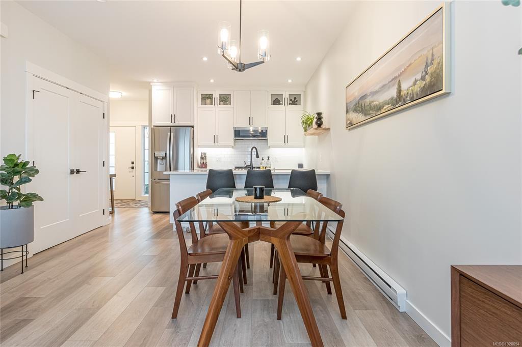 Immaculate mountain-view townhome in one of Duncan’s newest communities. This stylish three-level home features a bright, open-concept main floor with 9-ft ceilings and a modern kitchen with quartz countertops, stainless steel appliances, and a large peninsula bar with seating. The dining area opens to a private rear patio—perfect for BBQs, entertaining, or relaxing outdoors.