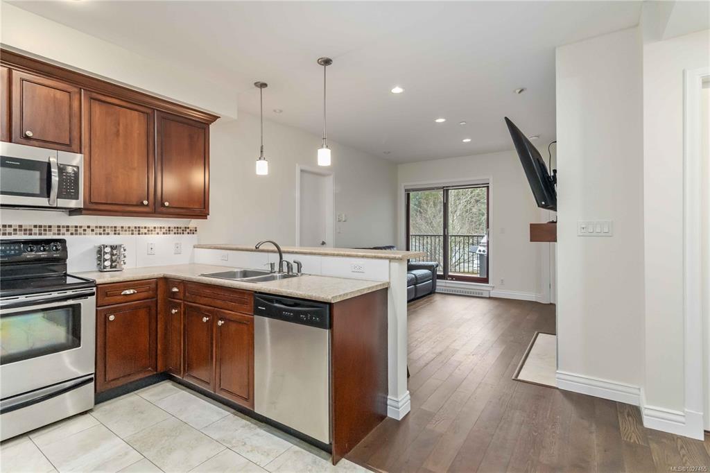 Experience the luxuries of Bear Mountain Village from this beautiful two-bedroom condo. This suite features newer hardwood floors, a cozy fireplace as a secondary heat source for chilly months, and a split bedroom design with well-sized bedrooms and spacious ensuites. Enjoy views of Bear Mountain and the village life from the comfort of the large west-facing balcony. The Ponds Landing building features grand hotel-inspired designs with its rich wood and stone finishings, tall hallways and over-height doors. Within walking distance to The Mountain Market, The Westin Resort and Golf Course, restaurants and many more great amenities!