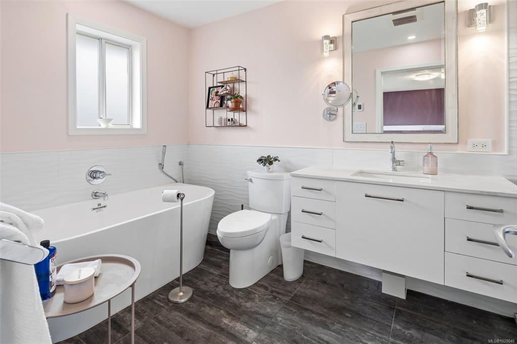Large family home (potentially 3,200+ s.f. plus double attached garage!) with a suite on a quiet cul-de-sac in the desirable Layritz area of Saanich. The perfect blend of city living with a rural feel, surrounded by scenic walking and hiking trails overlooking peaceful fields (birdwatchers dream!), and just minutes from Camosun College Interurban Campus, PISE and Layritz Park. The upper floor feels like a rancher, with only two steps up at the front door. It features 3 bedrooms and two full updated bathrooms including a generous ensuite with heated floors and separate soaker tub. The spacious, and bright full height self-contained 2-bedroom suite is currently vacant and has just been updated with new flooring, trim and paint. Over 500 sq ft unfinished full-height area offers excellent potential for a rec room, storage, a workshop, or even an additional bachelor suite! If you are looking for a great family home with additional revenue or a fantastic space for family - this is the one!