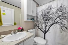 Introducing a stunning 2019 built 2 Bedroom 2 Bathroom Mobile home in Pine Estates Mobile Home Park. Enjoy vaulted ceilings and an open concept layout, offering spaciousness akin to a traditional house. The master bedroom features a walk-in closet and a luxurious oversized soaker tub in the ensuite bathroom. With storm doors and oversized windows, natural light floods the interior, providing captivating views of Mt Arrowsmith. This family-friendly park allows pets upon approval. Don't miss this opportunity. Just 5 minutes to Coombs or Parksville. Accessible via 1050 Bowlby Rd, this residence promises comfort, convenience, and scenic beauty.