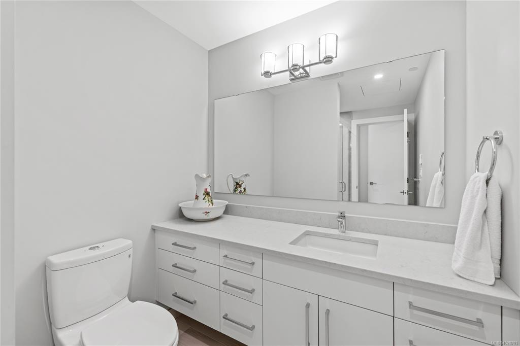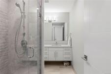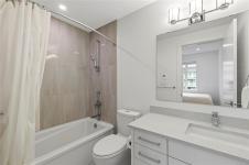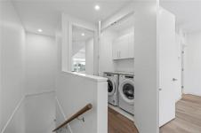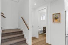 The first floor features an open-concept living and dining area highlighted by a sleek peninsula kitchen with premium cabinetry as well as a bathroom. Step outside to the private deck for effortless indoor-outdoor relaxation. Upstairs, discover the laundry station and two spacious primary suites, each featuring dedicated spa like ensuites.