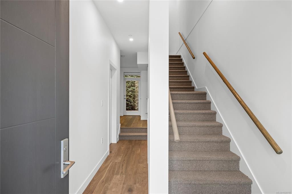 The entry level provides a versatile family room with access to a partially covered patio and garden space. Garage access and a roughed in potential future bathroom completes the ground level.