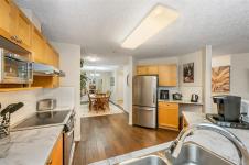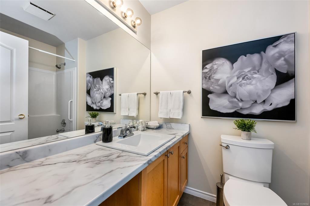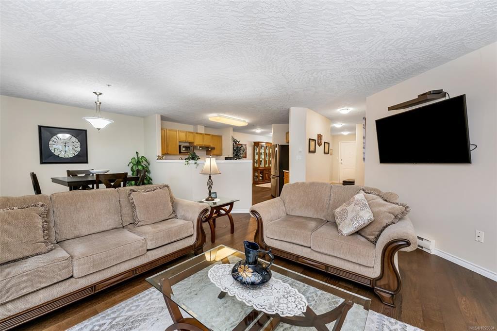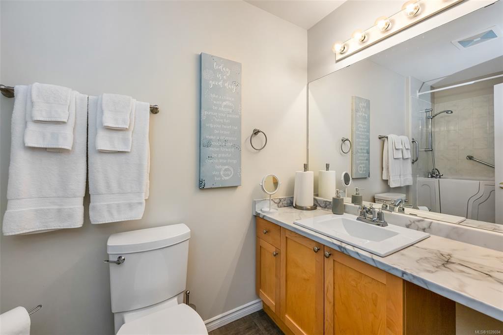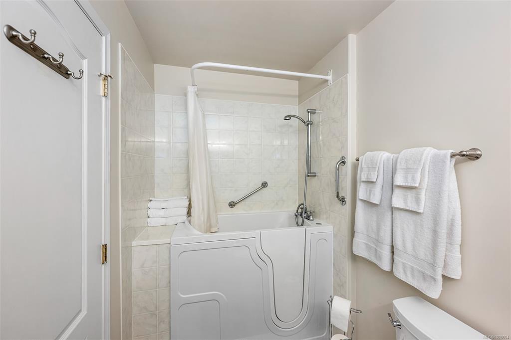 Spacious & stylish, this move-in unit in One Shady Lane offers quick occupancy! This 1453 sq ft condo is the second largest unit in the building, offering 2 bedrooms, 2 bathrooms, a separate living room with gas FP & a family room adjoining the kitchen that offers additional possibilities for formal dining/hobbies & features a skylight. Modern colour palette with engineered wood flooring throughout most of the home, refreshed kitchen & bathroom counters, new hot water tank, & reflective film on all windows. Both bathrooms feature updated sinks, taps & skirted toilets. Enjoy your morning coffee on the covered east-facing deck overlooking a beautiful century-old oak tree. The large primary bedroom includes a comfortable sitting area, & there is an in-unit laundry room. The ensuite features a walk-in tub while the main bathroom offers a regular tub/shower. Ideally located within easy walking distance to downtown Duncan & shopping & offers secure underground parking. 55+ & no pets allowed.