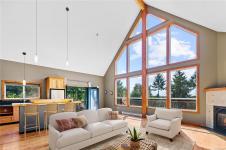 You have found peaceful country retreat just 20 minutes from town. Not in Spec Tax zone! Set on nearly 5 acres with forested land bordering protected marsh, this custom Westcoast home sits high with stunning views of trees, valley, mountains, and southern skies. Featuring 2 beds, 2 baths, and an open-concept living area with a country-style kitchen, gas fireplace, and floor-to-ceiling 23’ windows. Beautiful wood floors crafted from bridge timbers add timeless charm. Enjoy panoramic views from the master soaker tub or host BBQs on the wraparound deck. The lower level with a separate entrance awaits your ideas. Outside, find a seasonal pond, hot tub, fenced garden with raised beds and fruit trees, plus a private road with no through traffic. Explore further down the stairs to your nature sanctuary. Zoning may allow for a garage or second home (buyer to verify). Experience the beauty, privacy, and potential of this exceptional property.