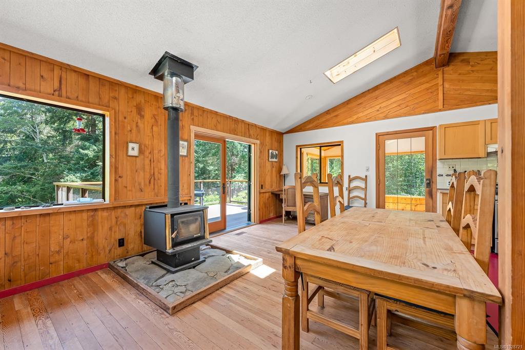 On nearly 5 acres overlooking peaceful Morrison Marsh, this spacious and eclectic family home offers an opportunity to connect with nature: beavers, herons, eagles, and migratory birds are just steps away at the water’s edge, where you can launch your canoe or kayak. The home features warm wood floors and open-concept living, with high ceilings and picture windows taking in views of the forest all around. Recent updates include renovated bathrooms and a new yoga/sun room. Downstairs a separate suite is ready for extended family or visiting guests. The yard has open grassy areas with mature rhododendrons and ornamentals, blending into the wildness of the surrounding forest. A detached studio/workshop would benefit from some refurbishment, but is full of character and would be well worth the effort. This home is close to beaches, trails, and downtown Denman with all amenities.