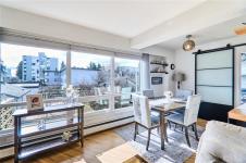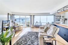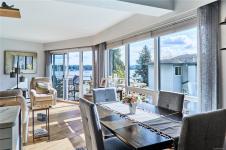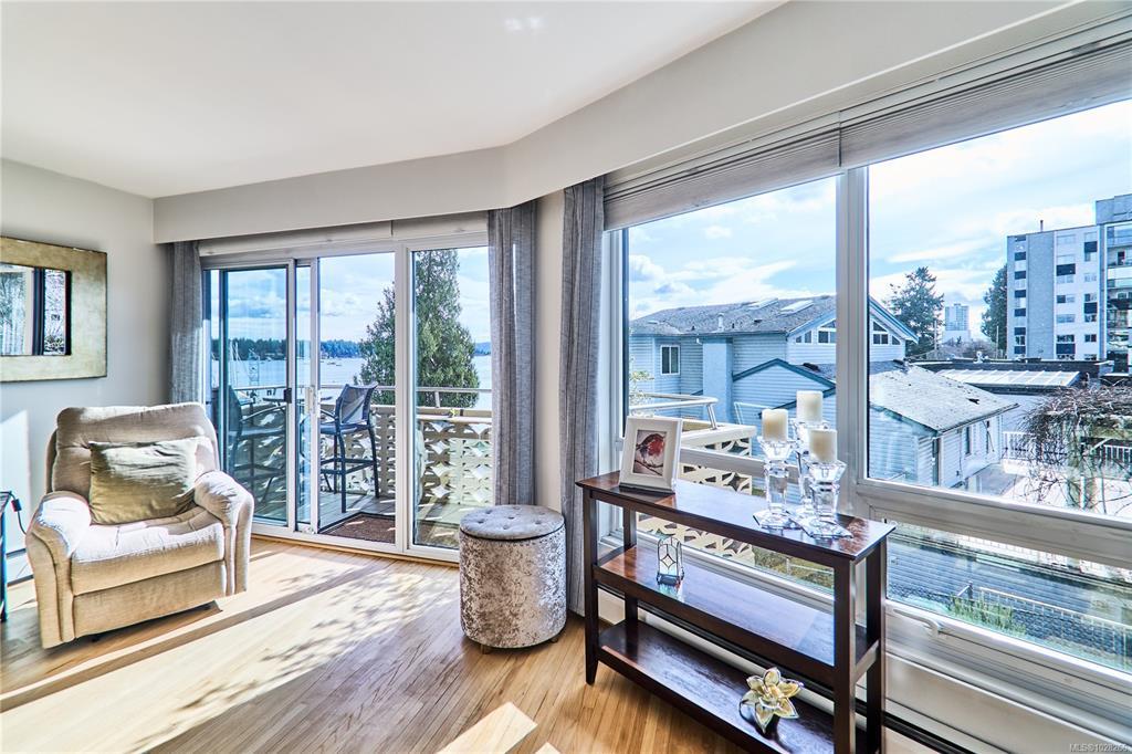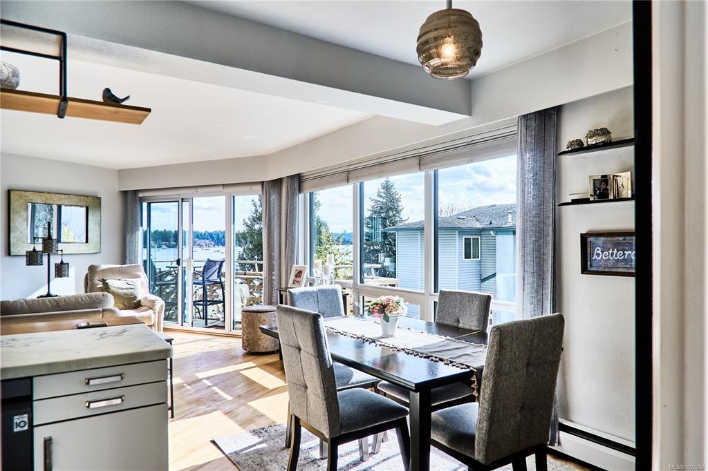 Welcome to your dream coastal retreat! This stunning three-bedroom condo boasts sweeping ocean views of the marina, yacht club, and charming Protection Island. Inside, you’ll love the open-concept layout, gleaming hardwood floors, and stylish modern touches throughout. The beautifully updated kitchen features a sleek wall oven, smooth cooktop, and a casual eating bar—perfect for morning coffee or evening entertaining. Step out onto the covered deck from the living room and soak in the vibrant waterfront atmosphere year-round. The spacious primary suite offers room for a king-size bed. A well-appointed four-piece bathroom and a versatile storage room—with potential for future in-unit laundry—complete the package. Located in a prime spot with the waterfront walkway just outside your door, this 55+ community offers a carefree lifestyle where heat and hot water are included in the strata fee. (Please note: no pets.)