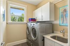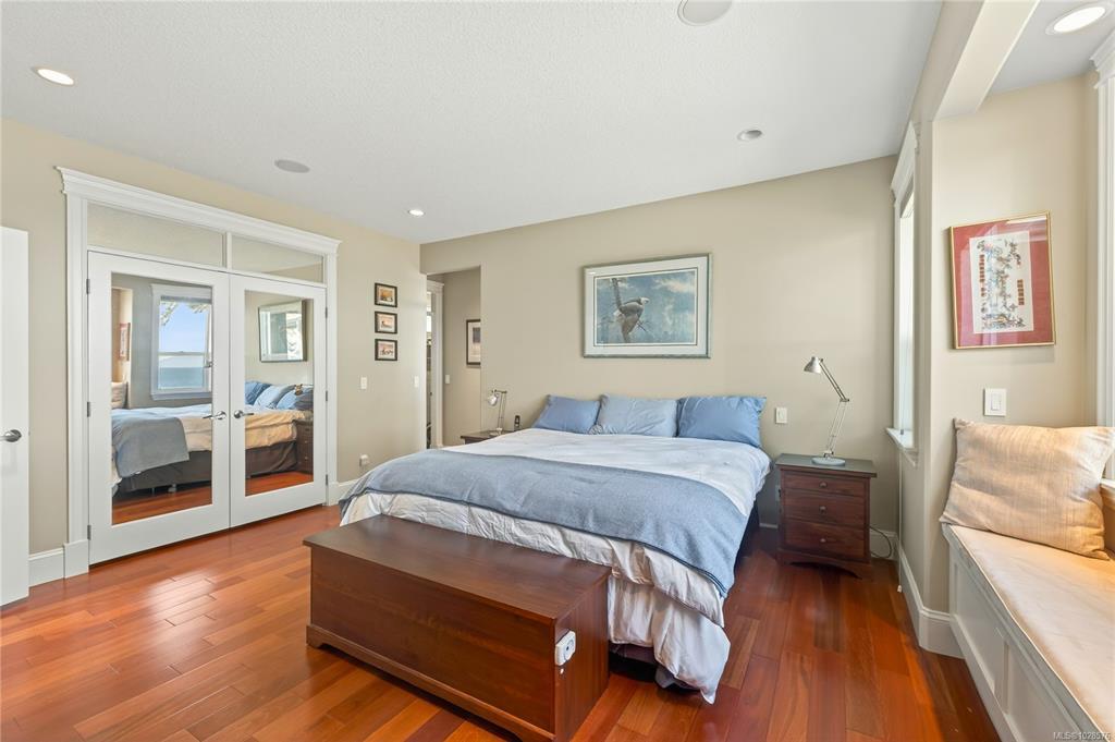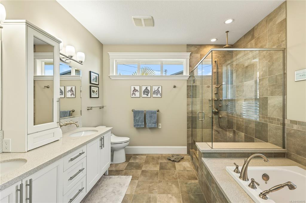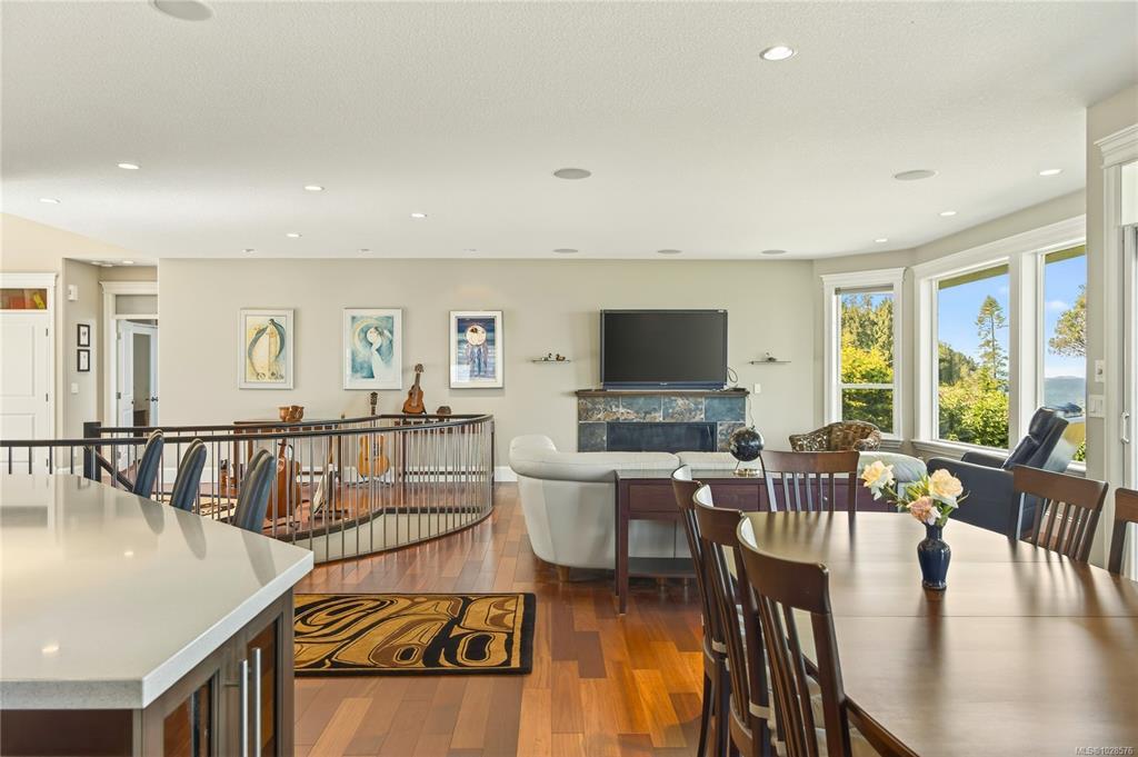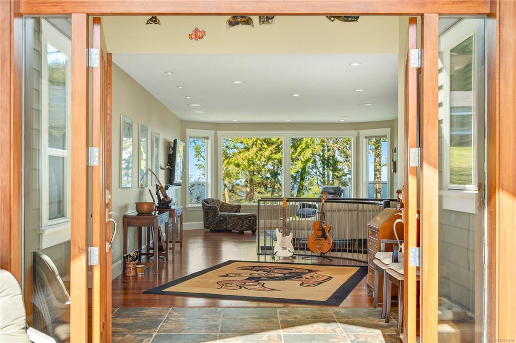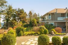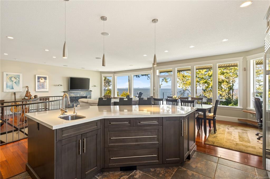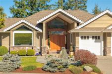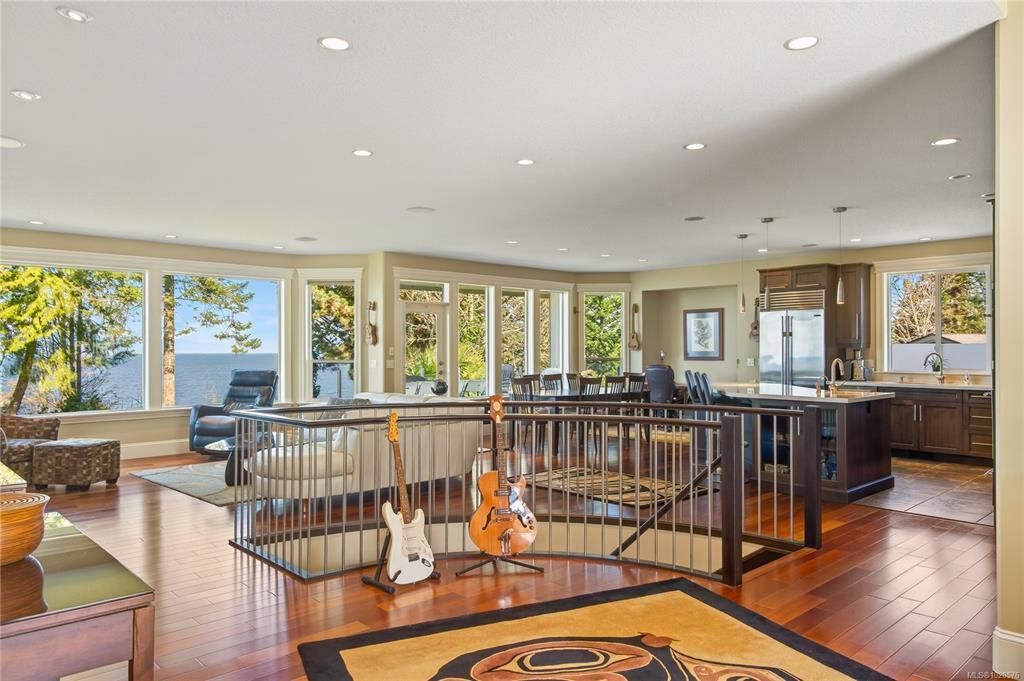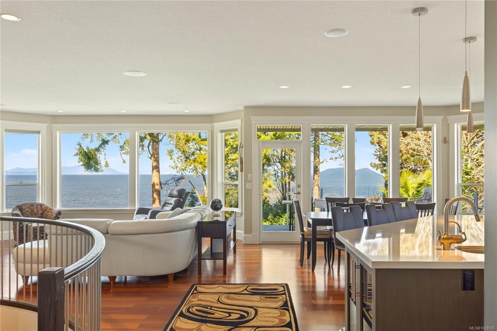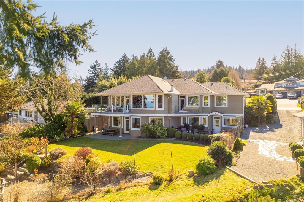 If you know Nanaimo, you know the best views come from elevation. This 2008 custom masterpiece by Brad Richardson sits on nearly 30,000 sq ft of waterfront, carved into the landscape so the ocean is the focal point of every room. Experience the "gold standard" of Island living: a main-level entry floor plan w/ open-concept layout, primary suite w/ heated ensuite & 3 gas FPs. The walk-out lower level offers unmatched versatility w/ 2 separate suites (a legal 1-bdrm w/ sep. furnace + a self-contained 2-bdrm space), both w/ private laundry, perfect for multi-gen living or luxury Airbnb. Totaling 5 beds & 3656 sq ft, the pride of ownership is evident in every detail. Outside, a private loop trail winds past signature palm trees to the beachfront, featuring custom benches & a treehouse w/ rooftop deck. Mins from Woodgrove, Neck Point & Pipers Lagoon, this rare coastal sanctuary combines elite quality w/ direct beach access. This isn’t just a home; it’s a grounding legacy property.