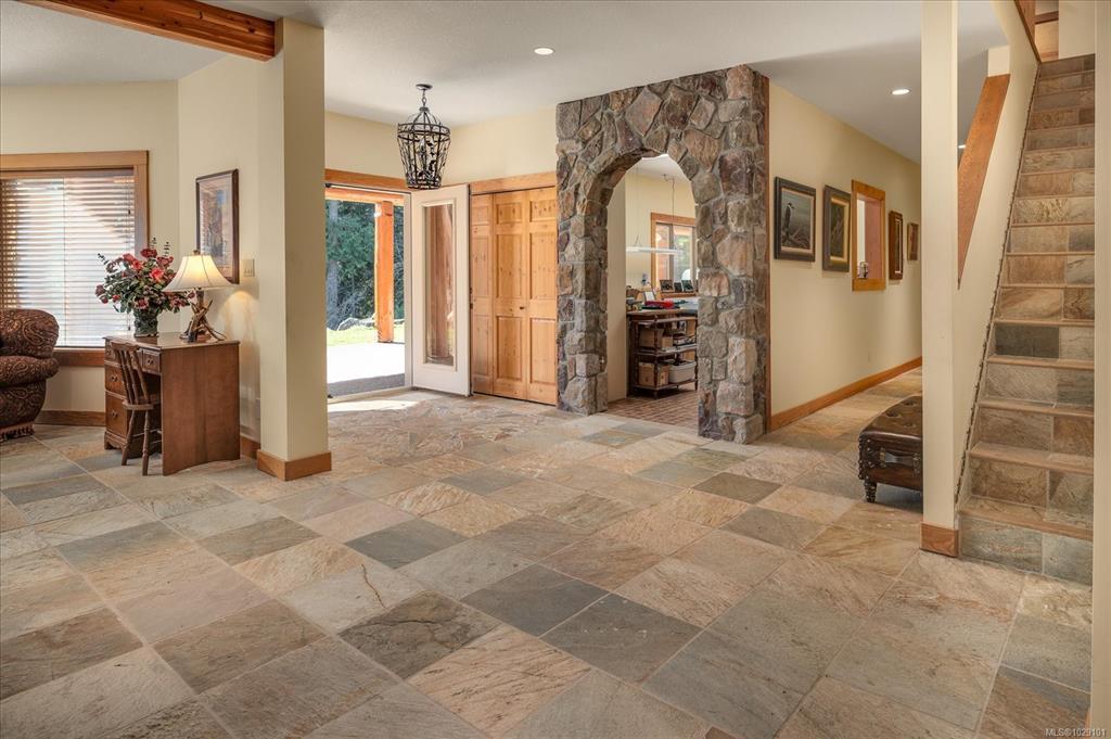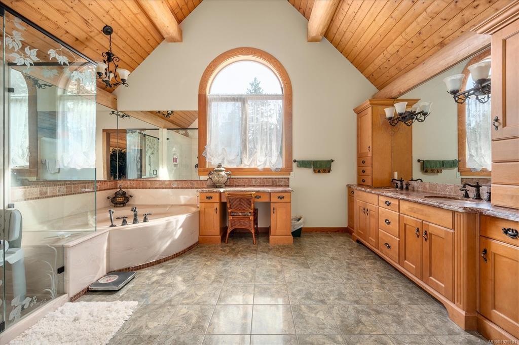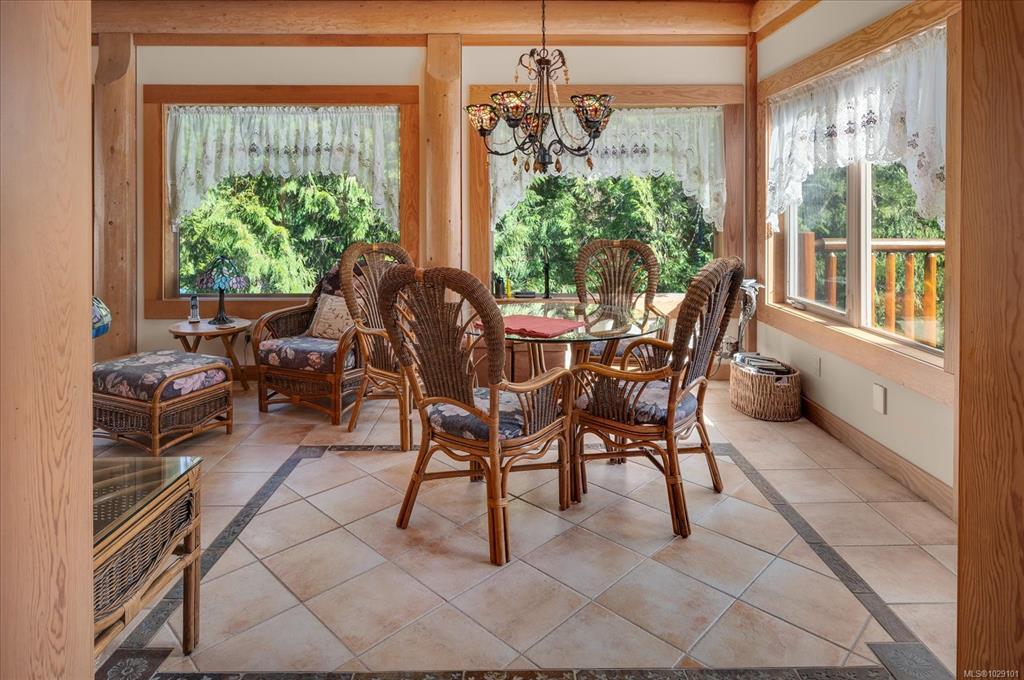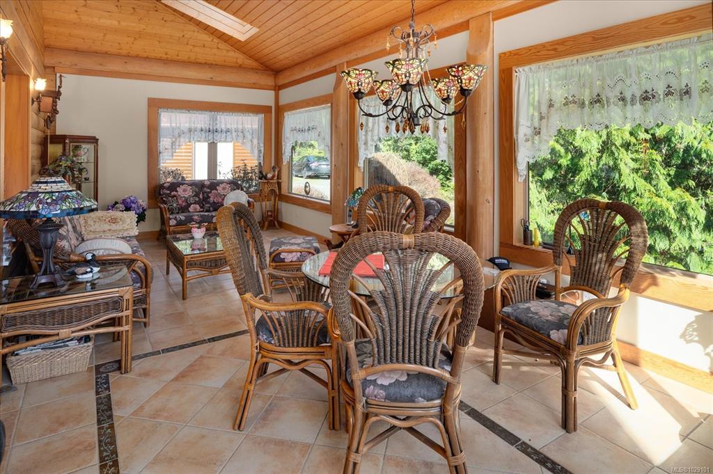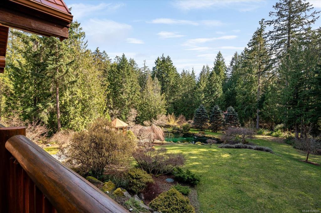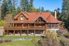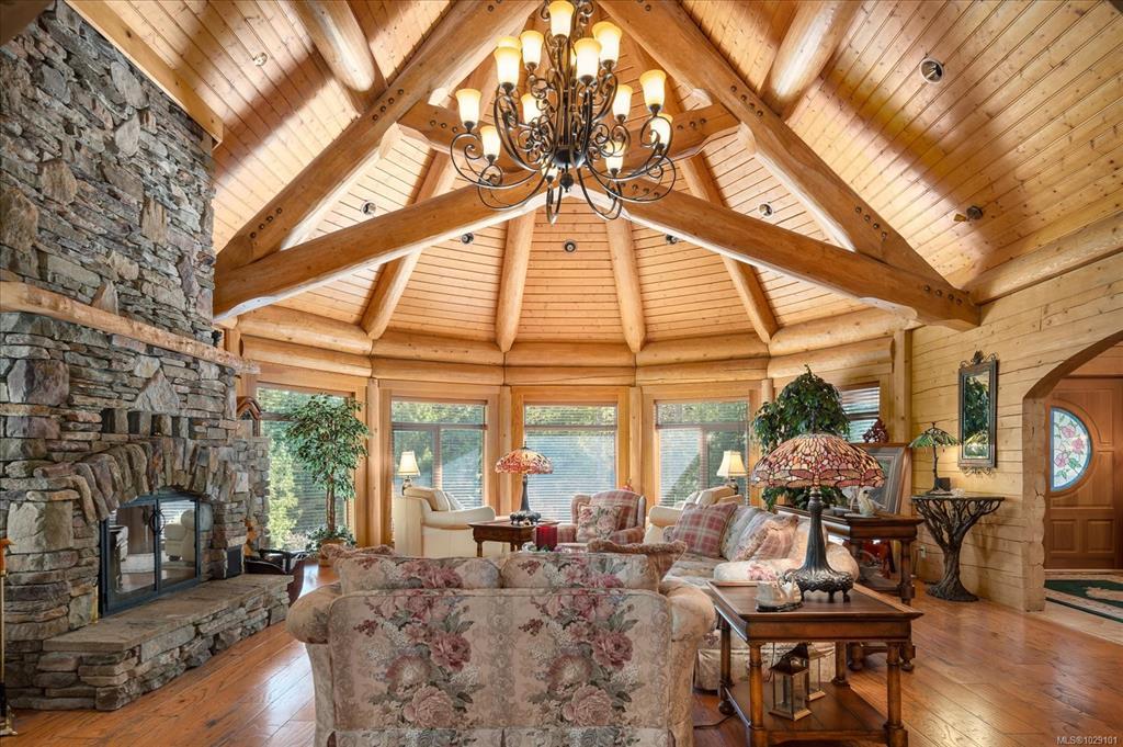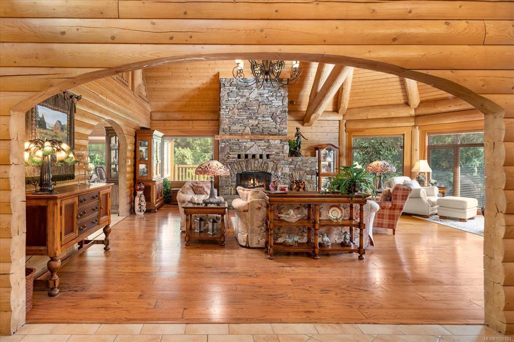 Quiet country living awaits with this impressive 8,200 Sq. Ft. custom Engelmann Spruce Log Home! Sited on 15 private acres in coveted Yellow Point, just 15 minutes to Nanaimo or Ladysmith. Exceptionally finished throughout, the residence features a breathtaking great room with grand kitchen and dining area plus a sunroom and a grand living room with a dramatic 22’ vaulted ceiling anchored by a grand stone fireplace. Perfectly designed for entertaining spaces! Bright, south-facing large decks and patio areas frame a picturesque pond and outdoor areas. The generous footprint includes 3 bedrooms (Could be more) all with their own ensuite including an incredible primary bedroom. Approx. 3 acres are cleared for gardens and recreation with a gazebo plus an RV site. With quiet country elegance, meticulous finishes, abundant storage and versatile rooms, this property blends stunning log home design with with contemporary style for year-round entertaining, quiet retreats, and future expansion.