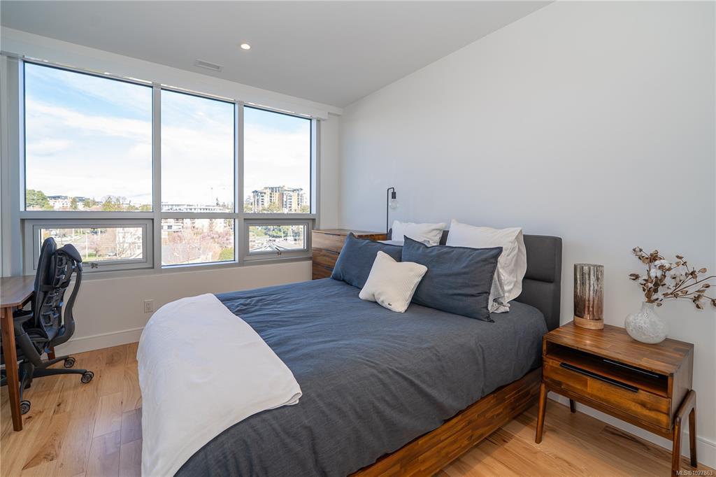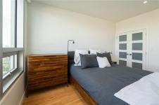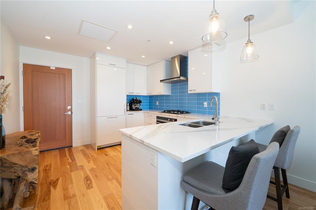 Perched above Westbay Harbour, this beautifully finished 1 bed, 1 bath condo offers a refined take on waterfront living, with serene water views and sparkling city lights from your private balcony. Thoughtfully designed with clean lines, high-end finishes, and a modern layout, the space feels both elevated and easy to live in. The meticulously planned kitchen caters to both aspiring chefs and seasoned hosts, appointed with premium Blomberg and Fisher & Paykel appliances. Steel and concrete construction speaks to lasting quality, while features like heating and cooling, heated bathroom floors, roller shade blinds, dimmable LED lighting, and access to EV charging stations add everyday comfort and convenience. With Marina Bay Café just downstairs, the Westbay Walkway minutes from your door, and dedicated kayak and bicycle storage with easy access to the water, this is a home that fully embraces its waterfront setting.