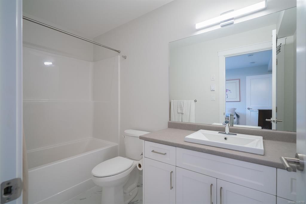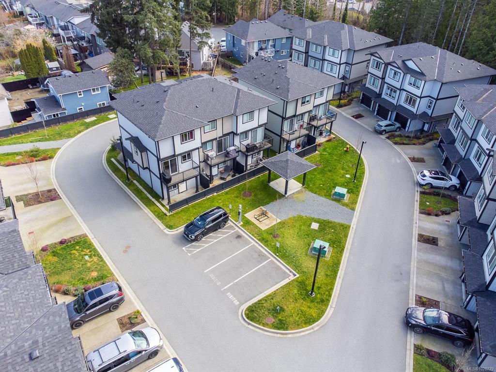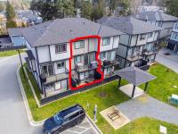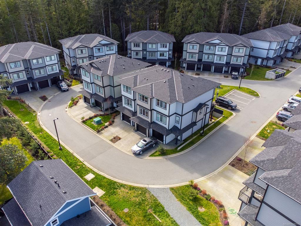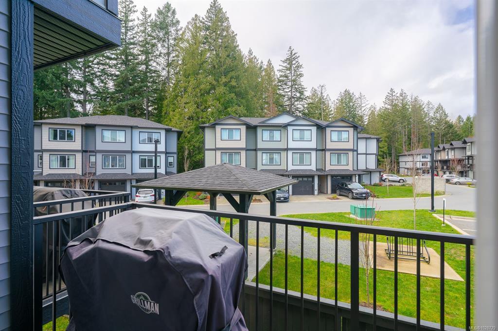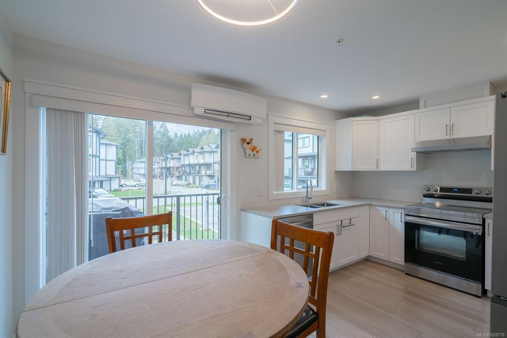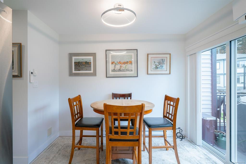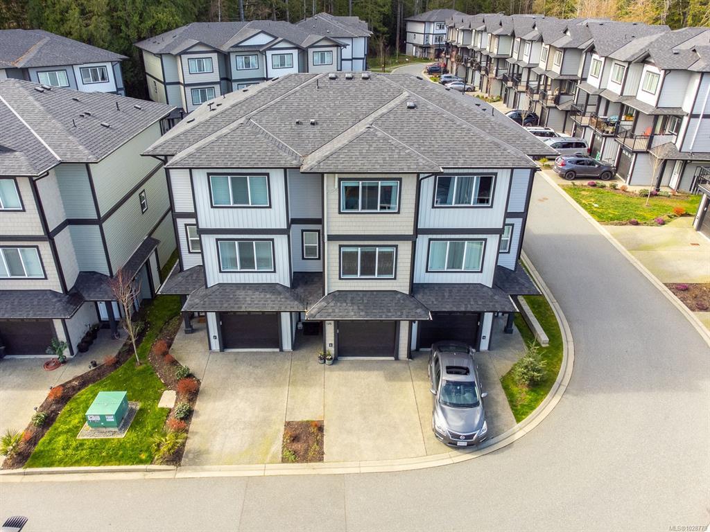 Designed with modern living in mind and located in a convenient Nanaimo neighbourhood, this well-appointed 3-bed, 4-bath townhome offers 1,596 sqft of functional living across three levels. Its versatile layout offers flexibility for families, guests, or a dedicated work-from-home setup, while a recently added heat pump and blinds ensure year-round comfort. The main floor features a bright kitchen with matte white shaker cabinetry, honed quartz counters, stainless steel appliances, and access to a balcony for easy indoor-outdoor living. Upstairs are two bedrooms with 9’ ceilings, including a primary with an ensuite, along with a full main bath and laundry. The lower level adds flexibility with a third bedroom, 4-piece bath, and direct outdoor access to a patio. An attached garage provides secure parking and storage, while nearby trails, recreation, transit, and amenities add to the appeal. Measurements are approximate and should be verified if important.