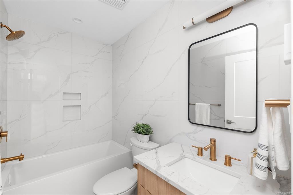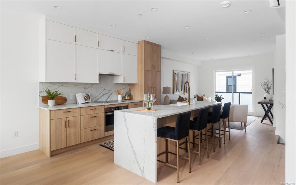 **LAST UNIT REMAINING** Coastal luxury, steps from the Songhees Walkway, this is “West Bay Crest”; a new, 7-unit high-end townhouse community in Esquimalt, bordering Vic West, built by Long-Term Developments. A MOVE-IN READY 2 bed+den home with the highest level of detail in mind, West Bay Crest weaves quality finishes and meticulous craftsmanship - premium, integrated Fulgor Milano and Fisher & Paykel appliance package, Kohler farmhouse sink, quartz counters/waterfall/backsplash, full-tiled bathrooms, wide-plank engineered oak hardwood floors - with modern, practical convenience - heat pump, A/C, epoxy floor garage w/ EV outlet, and private patios. One of the most walkable and convenient locations in Greater Victoria, minutes to dining, local artisan shops, Saxe Point Park w/ off-leash dog area, and the renowned Songhees Walkway, walkable to downtown. **BY APPOINTMENT ONLY** 25k MOVE-IN CREDIT FOR LAST BUYER.