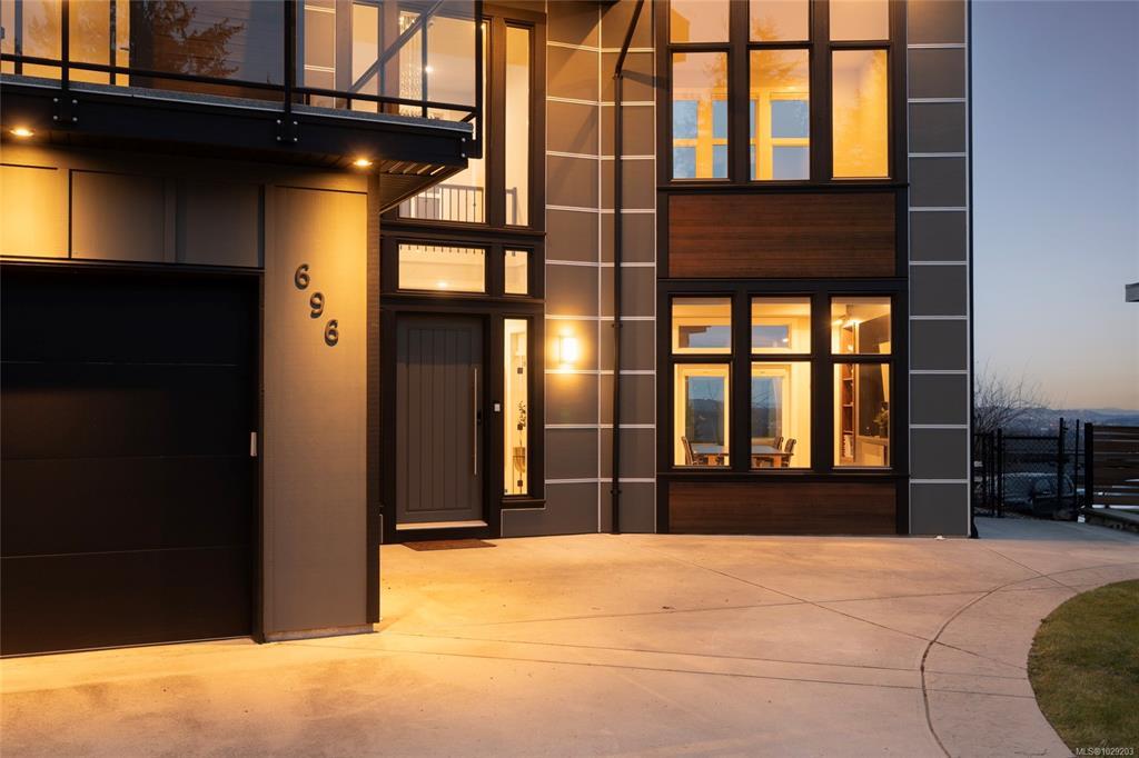 Perched on desirable Triangle Mountain, 696 Demel Place is a stunning 2018 single family home offering more than 3,500 sq ft of thoughtfully designed living space. Built for entertaining and well suited to big families, the main floor has an airy, expansive feel with a huge kitchen, generous gathering areas, and oversized windows throughout that beautifully frame the views from nearly every angle. A large office on the main level adds flexibility for working from home or study space. Upstairs features 4 bedrooms and 3 bathrooms, including 3 bedrooms with their own ensuites. The primary suite is a true standout, offering the best views in the house, its own balcony, vaulted ceilings, a large ensuite, and a walk-in closet. The fourth bedroom also works perfectly as a media room or games room. Complete with a double garage, this is an impressive home in a sought-after location