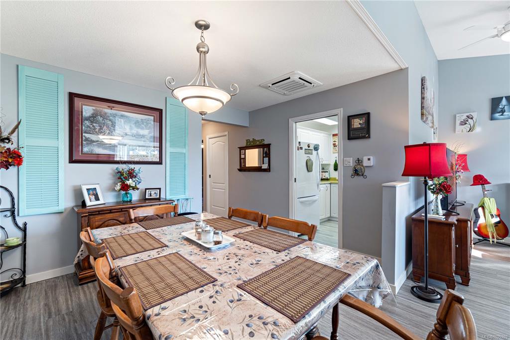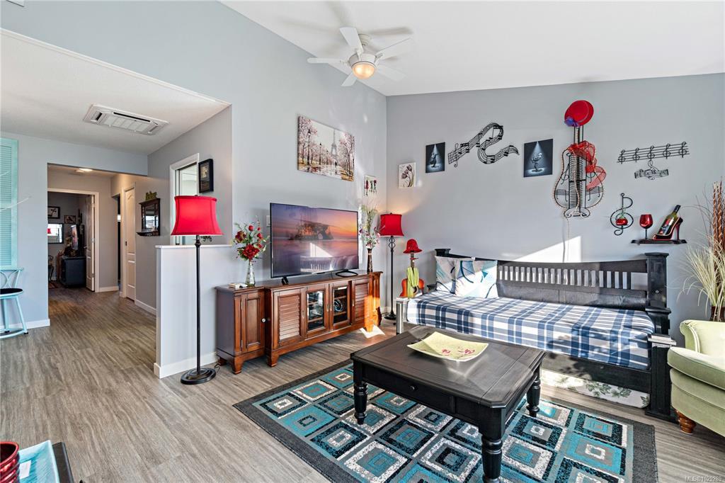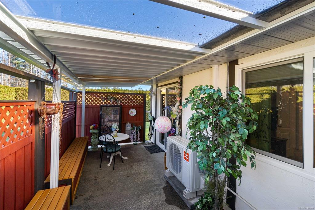 Welcome to this bright end-unit patio home in The Meadows, a quiet and well-maintained 55+ community. Ideally located within walking distance to Parksville’s beach, shopping, dining, and everyday amenities, it offers the perfect blend of convenience and tranquility. Positioned in one of the best locations in the complex, this home enjoys only one neighbour and peaceful green outlooks from every window, including a sun-filled double kitchen window. Vaulted ceilings enhance the open, airy feel, while a new heat pump and numerous updates include fresh paint, windows, flooring, lighting, ceiling fans, cabinetry, and a beautifully renovated bathroom. Step outside to your private, fully fenced and covered patio - perfect for relaxing year-round. The community also features a clubhouse, optional RV parking for a fee, and professionally maintained grounds. Dogs are welcome up to 44 lbs. Effortless living just minutes from everything Parksville has to offer.