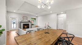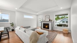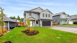 Immaculate, like-new 4 bed, 3 bath home located in The Ridge. Offering over 2,600 sqft of thoughtfully designed living, this home, with nearly 10' ceilings, features a bright open-concept living room with a statement gas fireplace and a beautifully appointed kitchen with quartz counters, an oversized island, stainless steel appliances, and walk-in pantry. The primary suite is a true retreat with a walk-in closet flowing into your ensuite and attached balcony space, while two generously sized bedrooms complete the main level. Downstairs provides a media room / flex space, fourth bedroom, and full bath - perfect for guests or flexible living. There is no shortage of storage here with a unique 55’ drive-through garage for multiple vehicles, toys, or workout space. Fully fenced, landscaped yard with irrigation, covered patio and gravel space for your RV or boat, close to parks, schools, and trails - this home has it all!