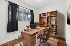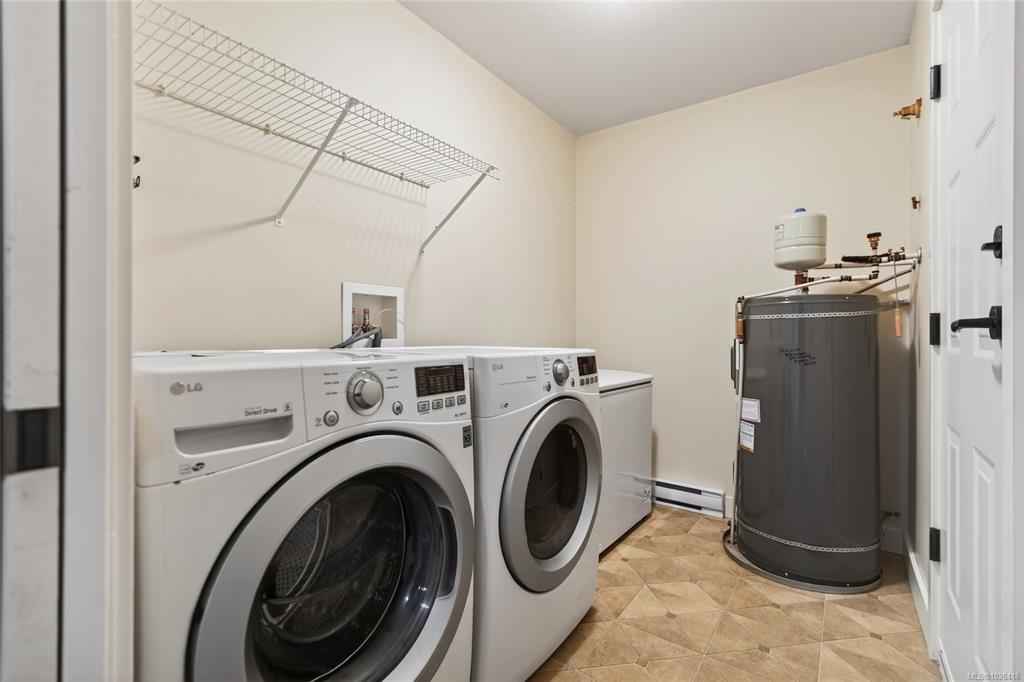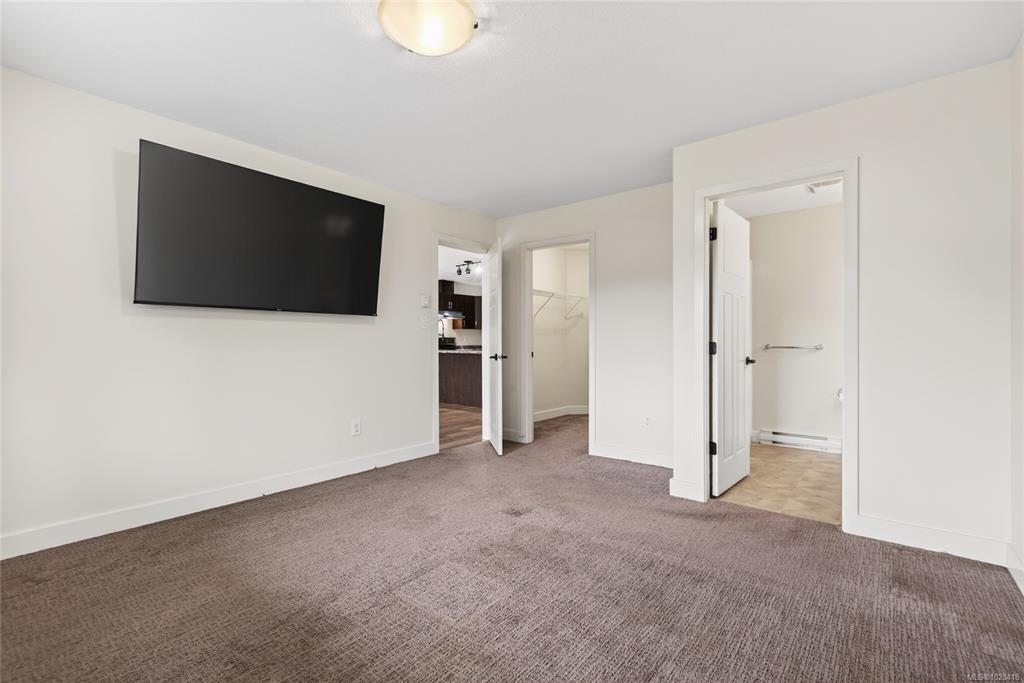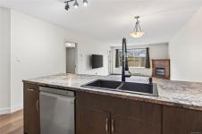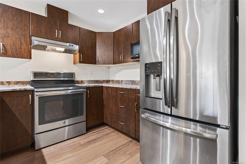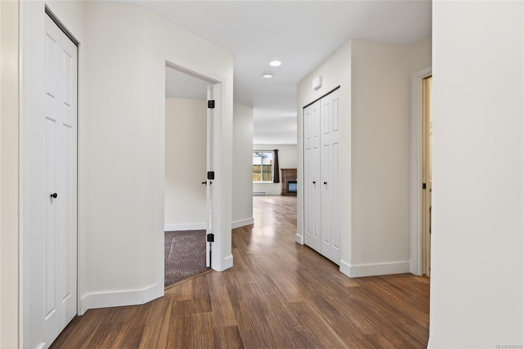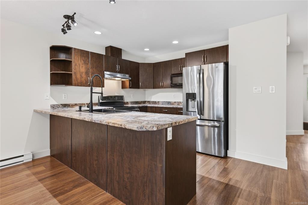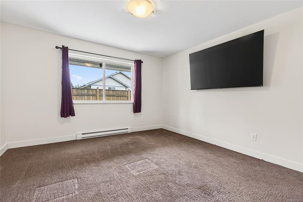 Steam Engine Estates in Cumberland sells when units come up and demand does not slow. This 1,286 sq ft patio home offers 2 bedrooms, a flex room, and 2 bathrooms in an open-concept layout for downsizers, first-time buyers, or outdoor enthusiasts wanting a base in one of Vancouver Island's most storied historic villages, where coal mining heritage meets a vibrant arts and adventure community nestled at the foot of the Beaufort Range and the shores of Comox Lake. Living, dining, and kitchen flow together anchored by a corner electric fireplace. Dark cabinetry, stainless appliances, walk-in closet, 3-piece ensuite, and fresh paint throughout. Flex room, finished garage with rubber flooring and shelving, plus a portable folding dog fence for patio and back lawn. Strata well managed with low fees and a healthy contingency fund. Two pets welcome, no age restrictions. Village shops, pubs, and cafes are a short walk. Trails start at the complex, Mt. Washington is 15 minutes, the airport is 30.