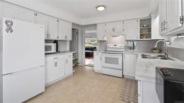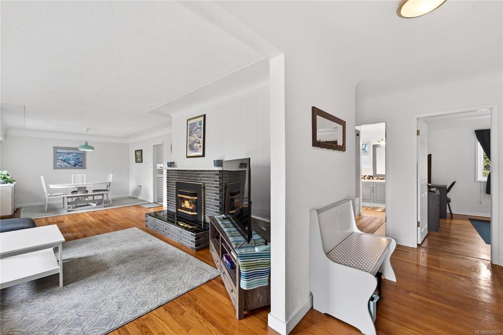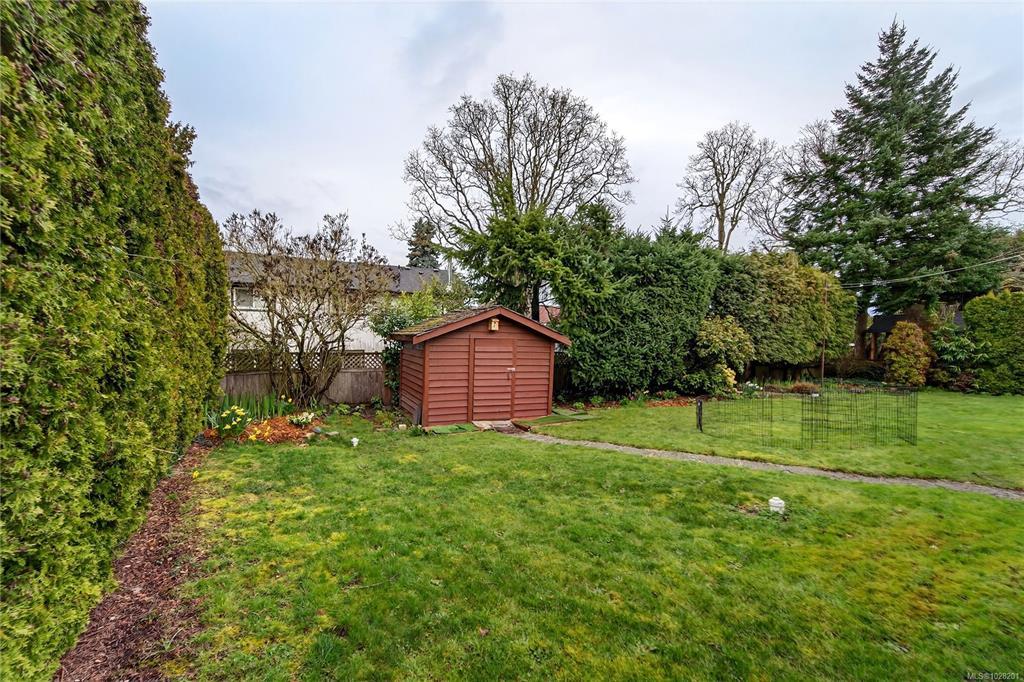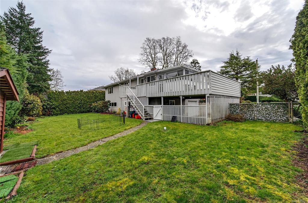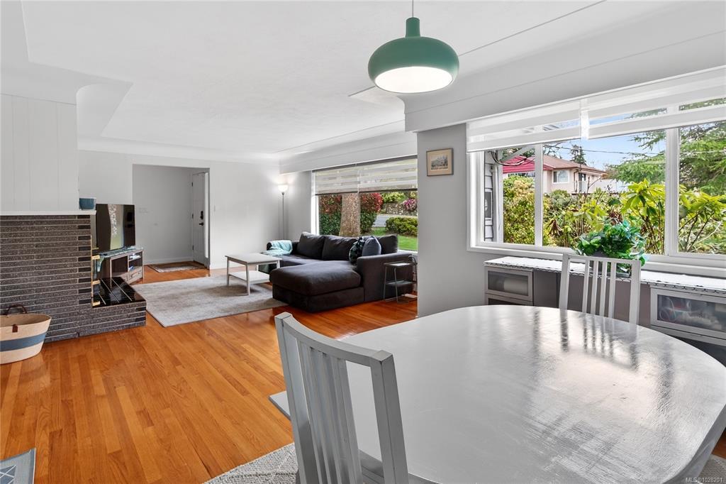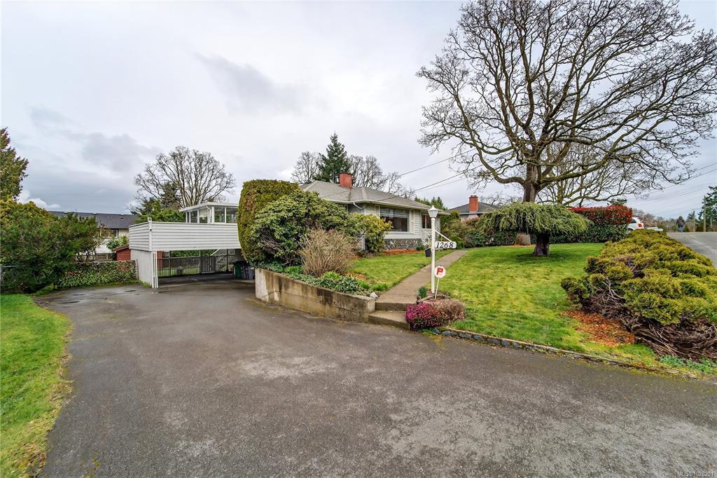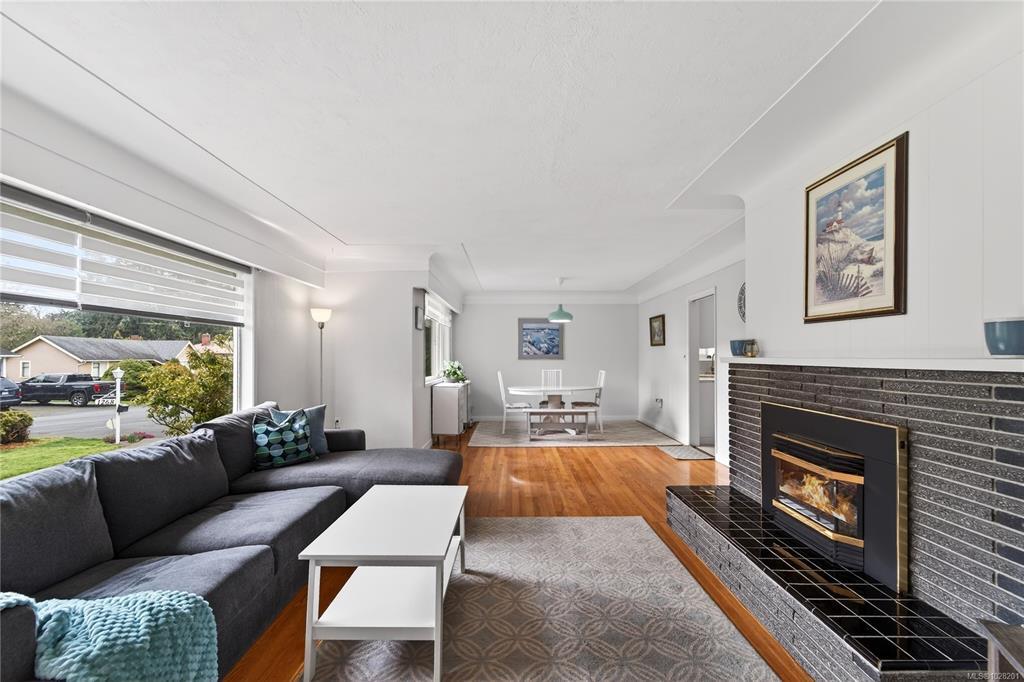 **OPEN SATURDAY 1-3pm** TURN-KEY SAANICH BUNGALOW ON LARGE LOT WITH SUITE POTENTIAL. Experience timeless elegance in this bright, meticulously maintained 60’s home where SUN-DRENCHED ROOMS, COVED CEILINGS, and REFINISHED OAK HARDWOODS greet you. The RANCHER style main level features an UPDATED KITCHEN with pantry, 3 bedrooms, UPDATED 4PC BATH with soaker tub, living room with propane FIREPLACE, and an inviting dining area. The kitchen opens to a LARGE DECK with ENCLOSED SUNROOM off back. The WALKOUT LOWER LEVEL includes a 4th bedroom, 3PC BATH, laundry room, mechanical room and recreation room, ready for an in-law suite. Vinyl windows throughout. Large yard with mature plantings and full fencing at back. Parking includes a SINGLE GARAGE, DOUBLE CARPORT and gate for RV/boat parking. Near THE ROOT CELLAR, BRAEFOOT ELEMENTARY, and transit for easy UVIC or downtown access. Move in and enjoy flexible single-level living with incredible income potential! Natural gas at the lot line.