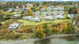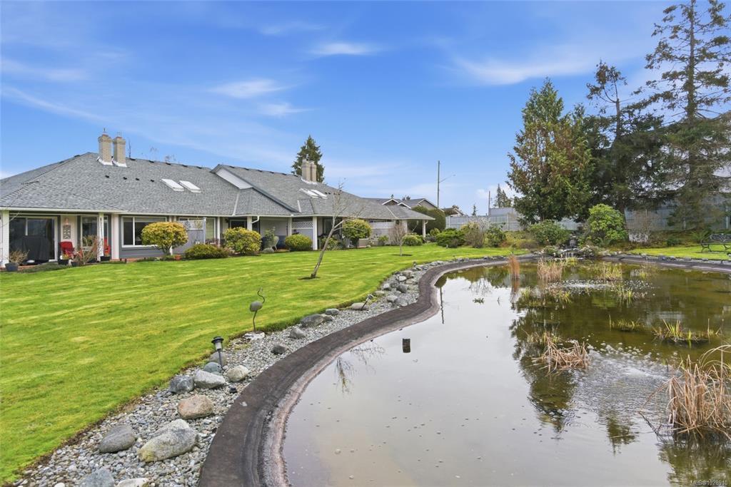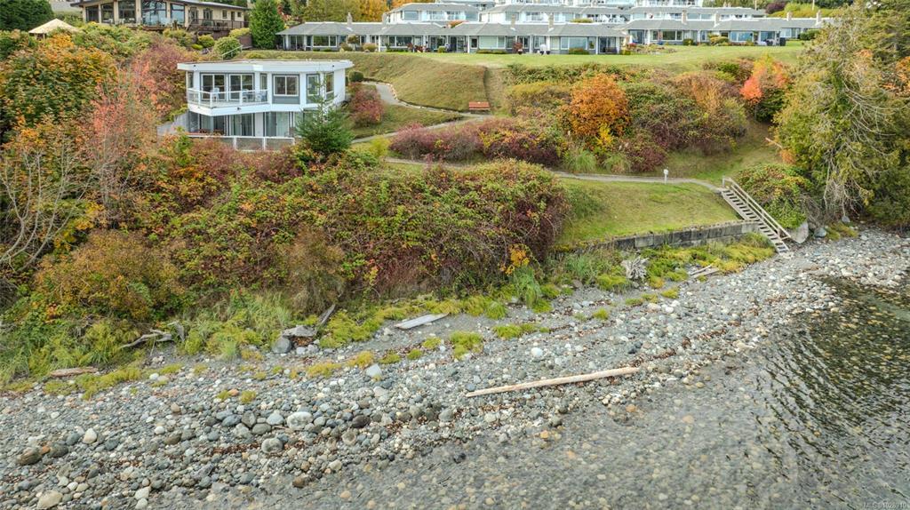 Rarely available End Unit with some Updates and views over the Pond! Welcome to Shoreline, Parksville's premier Waterfront Community, a wonderfully managed strata that is located just minutes from the city's Downtown Core. This 2 bed, 2 bath, 1,397 sqft rancher with Double Garage is incredibly Bright with a Southern Exposure and walk-on access to beautifully landscaped gardens from a covered patio. The fresh interior has Cork and Tile flooring, radiant in-floor heating and a natural gas fireplace to provide some added comfort. An Open Plan Kitchen is great for hosting friends and family, with centre island, stainless steel appliances and a fantastic layout. Enjoy direct access to the ocean and epic views via the Clubhouse, which regularly hosts community gatherings and events. Live Your Dream Today in one of Central Vancouver Island's best neighbourhoods, walking distance to many restaurants, pubs, beachs, shops, and more! Tenanted month-to-month with showings 10am-5pm daily.