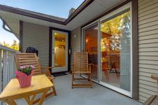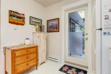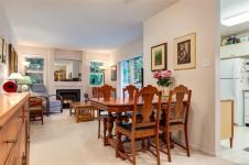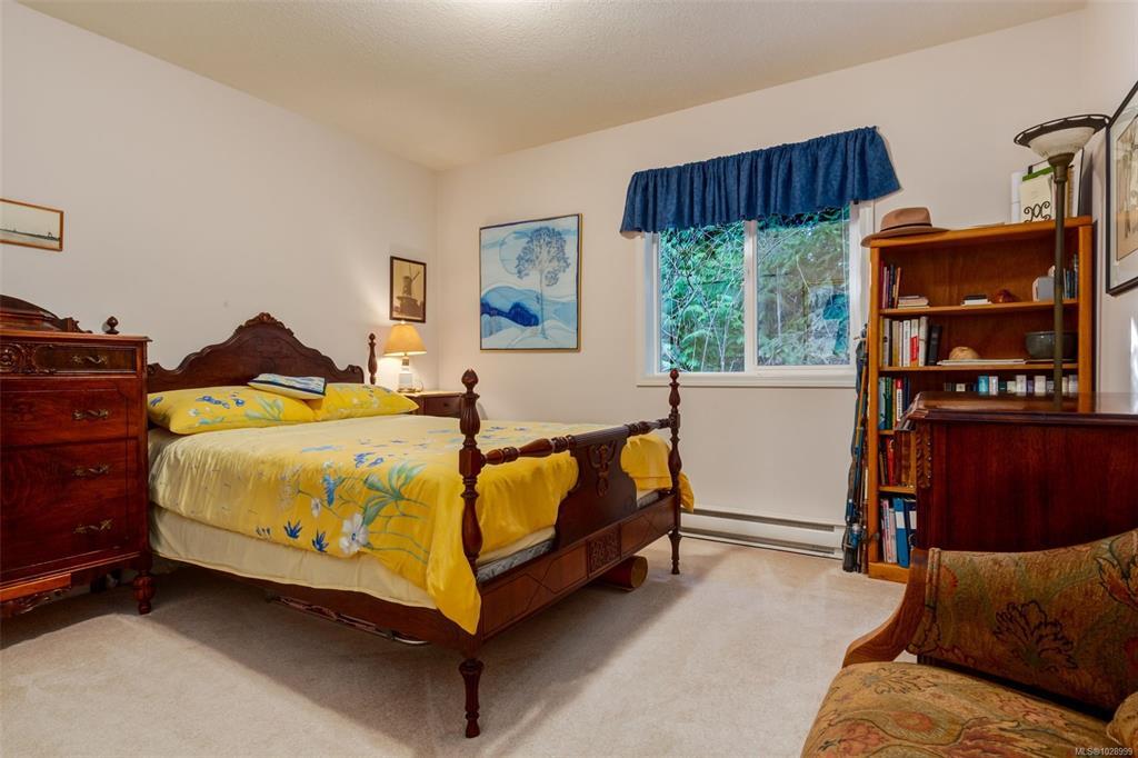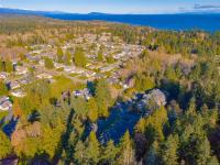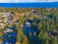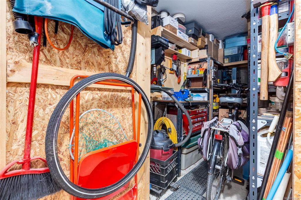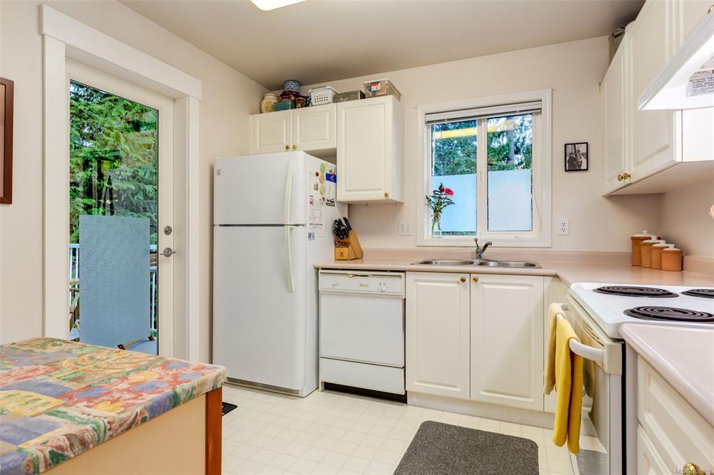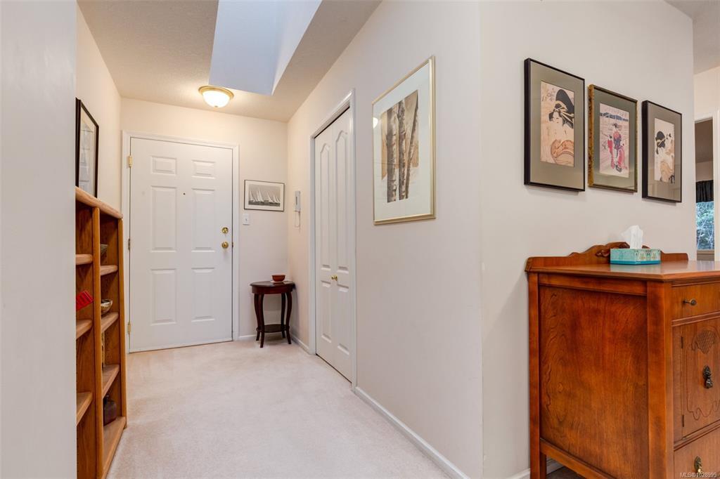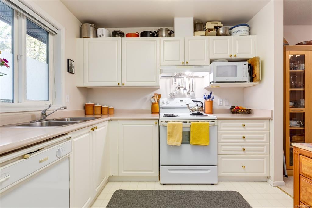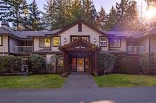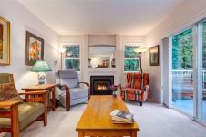 Welcome to Parkwood! This well-maintained, top-floor corner unit offers unmatched privacy and a bright, airy interior bathed in natural light from skylights. The spacious 2-bedroom, 2-bathroom layout features a cozy living area with a natural gas fireplace and a primary suite complete with a walk-through closet and ensuite. Enjoy ultimate peace of mind with a brand-new hot water tank, alongside the convenience of in-suite laundry, a large storage locker, and a private balcony overlooking lush gardens and mature trees. Perfectly situated in a highly desirable, well-managed building that provides secure entry and elevator access near bus routes, you are just steps from the Ravensong Wood trails leading directly to the village for shopping, dining, and the aquatic centre, or a short, easy stroll to the ocean. Ample resident and visitor parking is available; please verify all data and measurements if important to the purchase.