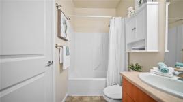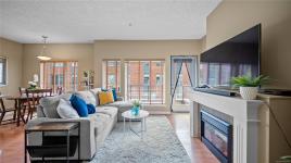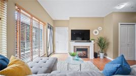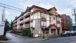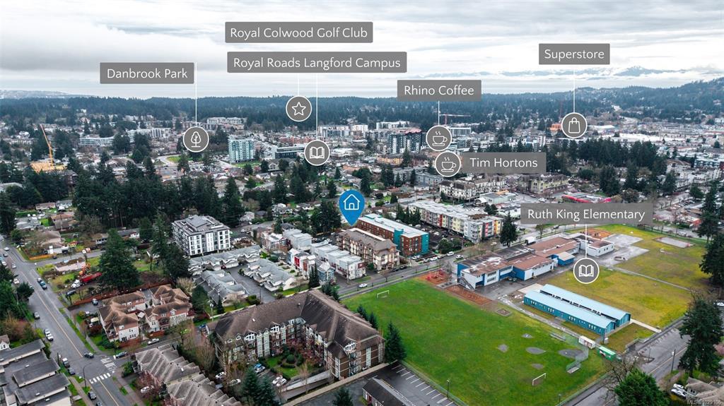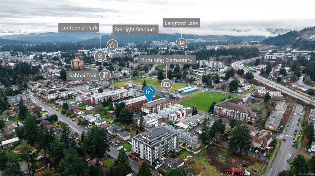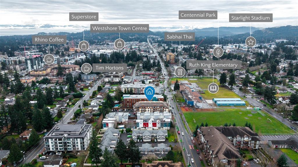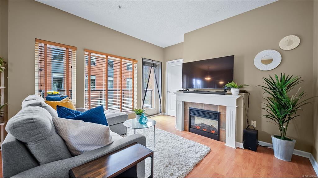 Open House Saturday, March 21, 2:00-4:00PM. Welcome to Jasmine Place in the heart of Langford—a truly walkable neighbourhood that is worth viewing. This third-floor corner unit features a bright open-concept layout with 9-foot ceilings and large windows that fill the space with natural light. The kitchen flows seamlessly into the dining room and and living room areas, perfect for relaxing or entertaining, while a cozy fireplace adds warmth and charm. Enjoy the convenience of in-suite laundry in a laundry room. A spacious primary bedroom with generous closet space and a cheater ensuite. Just steps to groceries, restaurants, cafes, parks, and transit, everything you need is at your doorstep. Ideal for first-time buyers, investors, or those seeking low-maintenance living in a vibrant community. Check out the property feature sheet link to see the property website showcasing TWO videos with more details on the area and property.