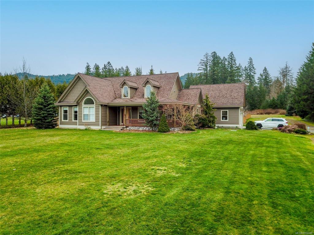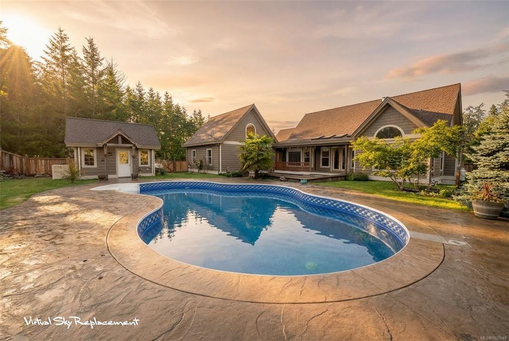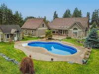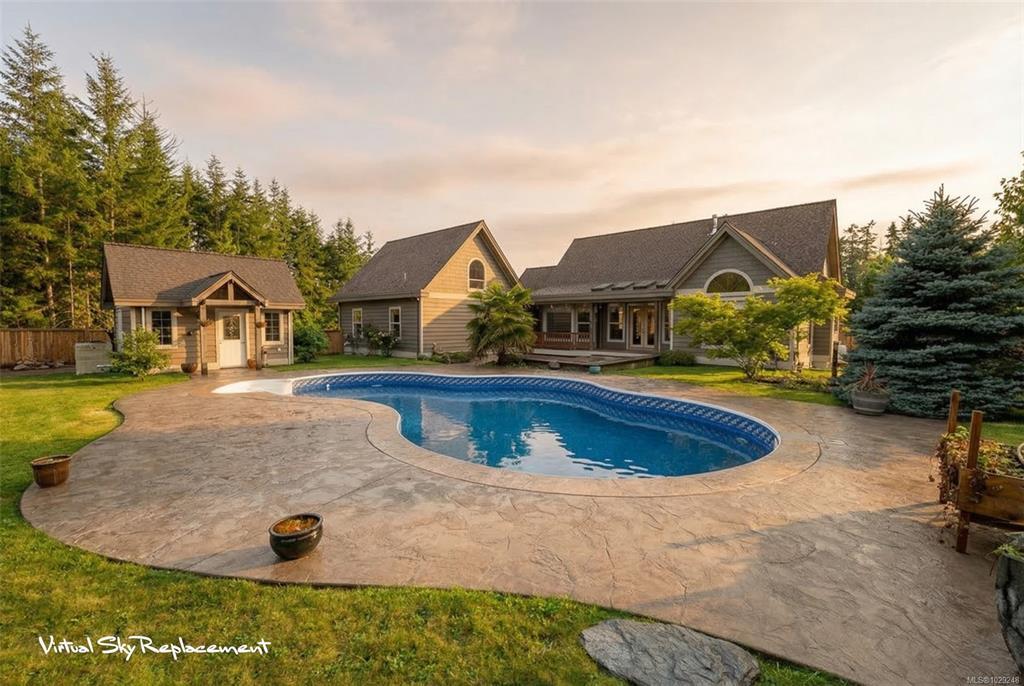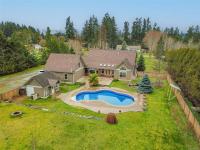 Introducing 5495 Maebelle Road- Entering the front door, you will notice the private formal dining area for family dinners and the open concept living/area featuring vaulted ceilings, a gas fireplace, custom kitchen and an eating nook. Walk through the French doors to access the patio just steps away, an amazing area to entertain friends and family while you sit by the heated saltwater pool. The primary bedroom boasts a walk-in closet and a 5-piece ensuite, while the remaining main floor offers two more bedrooms, a 4-piece main bathroom, a 2-piece powder room and a laundry room. Outside on this gorgeous 2.93-acre parcel, you will find a garage with a 300 sq ft bonus room perfect for a man cave or kids' playroom, the aforementioned heated saltwater pool with its own pool shed. The detached shop offers a 30x26 two bay, enclosed, heated, wired and insulated space with over-height doors, and also two more covered spaces perfect for storing your toys. Cal to view this amazing home today!!