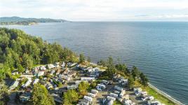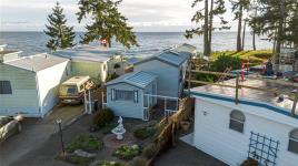 Right on the Pacific… you can’t get any closer to the ocean than this cozy manufactured home in the most desirable park on the coast. This is a strata mobile home park, so there’s no outrageous pad rent—just a regular strata fee of a mere $117 per month. You own the strata-titled lot on what is undeniably as West Coast oceanfront as it gets. An amazing lifestyle awaits, with a front-row seat to the Strait of Juan de Fuca, frequented by resident killer whales in search of salmon, along with seal-hunting transient orcas. It’s also right on the grey whale migratory route. With world-class salmon and halibut fishing out front and Dungeness crab moments from shore, it’s a veritable West Coast wildlife wonderland. Representing a rare opportunity to purchase true oceanfront at an affordable price, with 270-degree panoramic ocean views offering stunning sunrises and blazing West Coast sunsets. Featuring 2 bedrooms, a sunroom, a separate outbuilding, and perfect positioning on the coastline.
