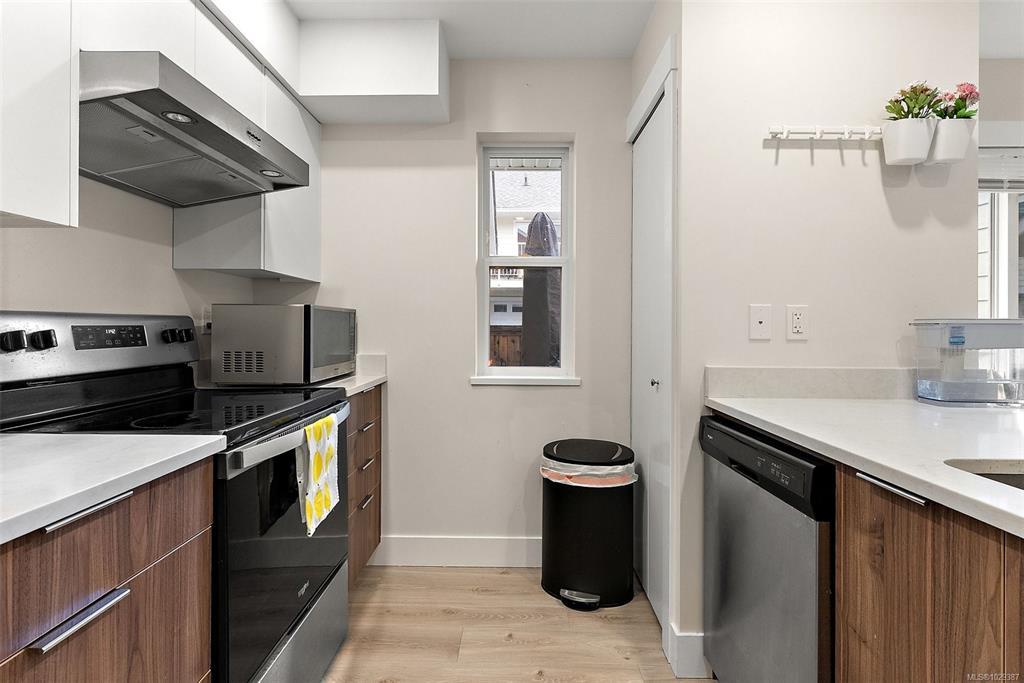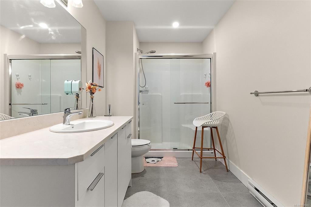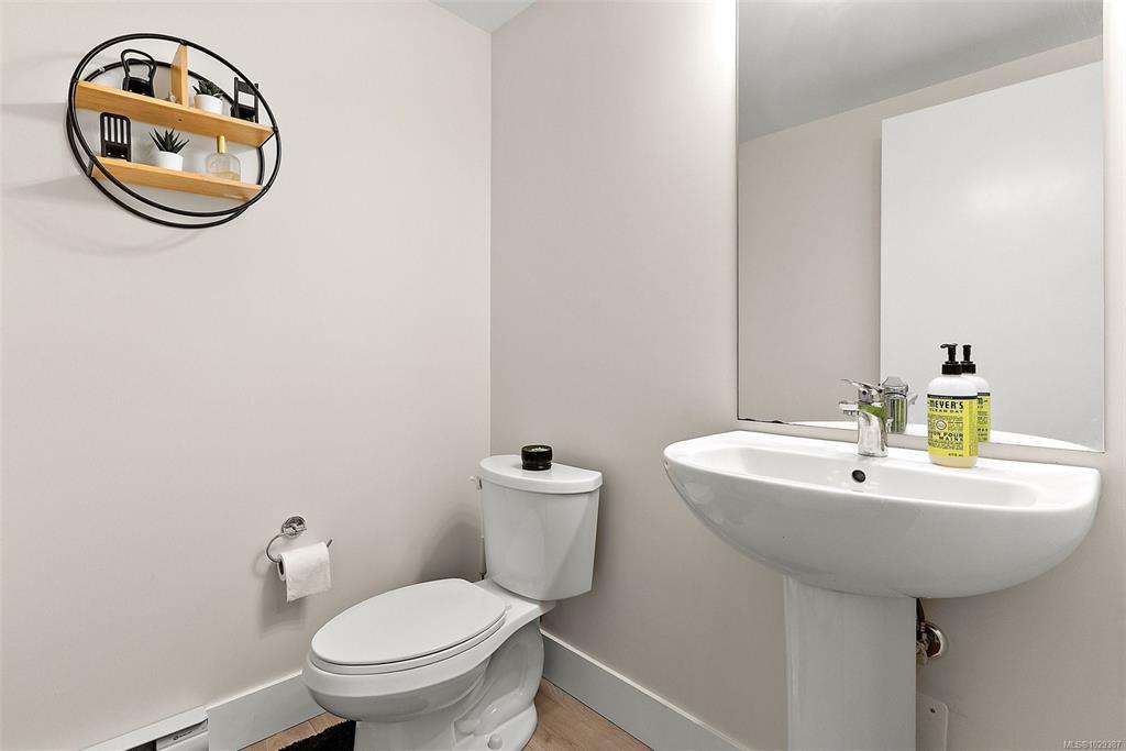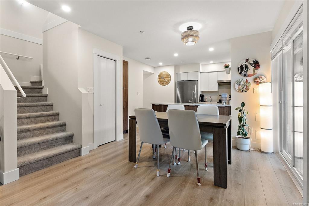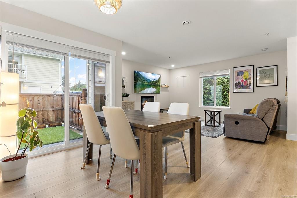 Discover stylish, comfortable living in this well-designed 2-bedroom, 2.5-bath corner townhouse in the heart of Sooke. Spacious rooms & a functional layout are complemented by modern finishes, including solid surface countertops throughout. The main level features an open-concept kitchen, dining, & living area with a cozy fireplace and large windows for abundant natural light. Step out to your private patio—perfect for relaxing or entertaining. Upstairs offers a bright primary bedroom with oversized ensuite, a second spacious bedroom, & a full 4-piece bath. Ample storage including double closets in both bedrooms. Enjoy the convenience of direct garage access with even more space for storage. Conveniently situated in-suite laundry. Located in a quiet & welcoming neighborhood near the Sooke Village core, this home offers easy access to local trails, shops, dining, and everyday amenities. an excellent opportunity to enjoy West Coast living at its best.